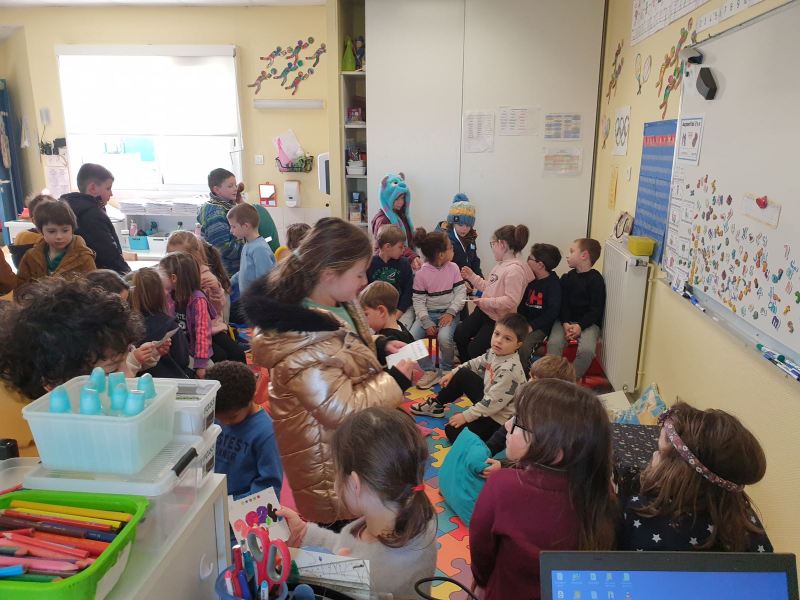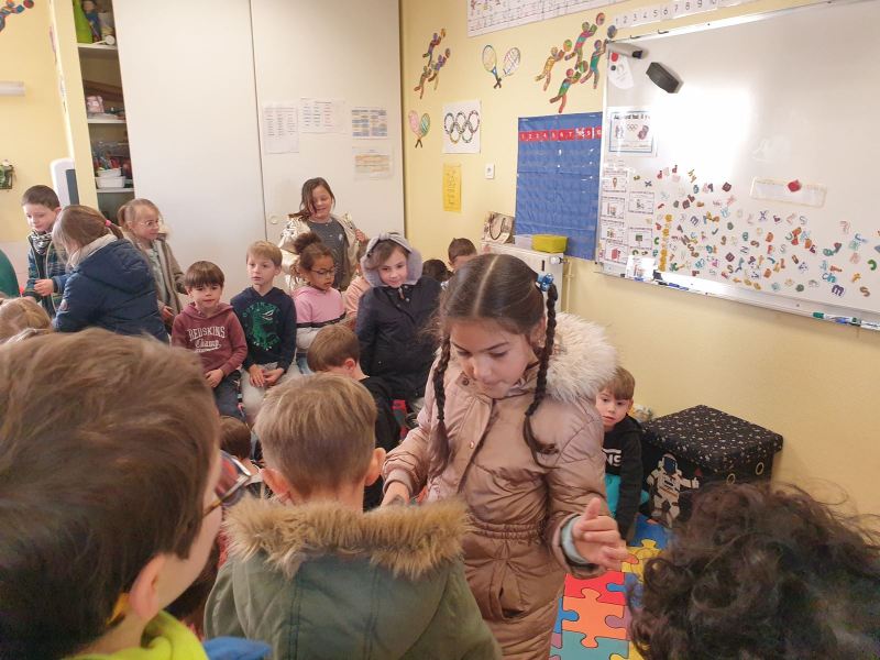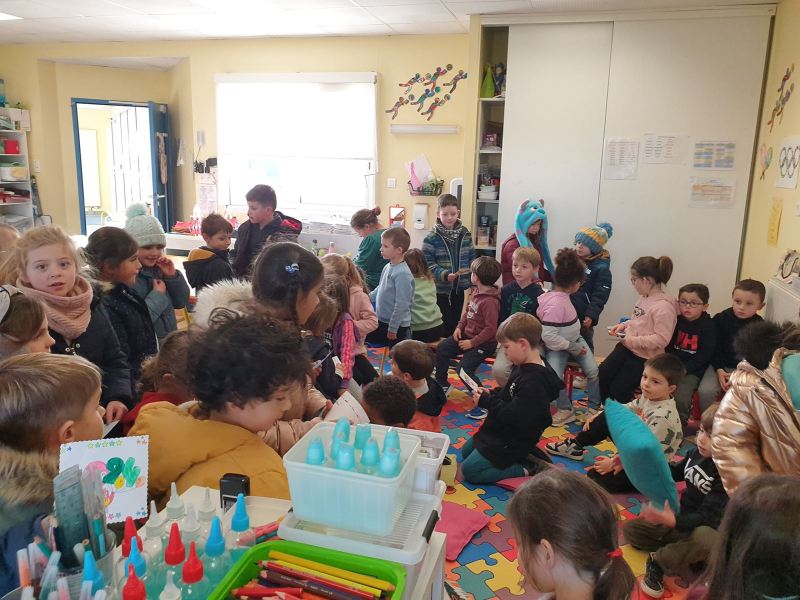 Ce vendredi 19 janvier, nous nous sommes à nouveau retrouvés dans la classe des GS pour s’échanger nos cartes de vœux, toujours accompagnées de nos mascottes des J.O. préférées. .