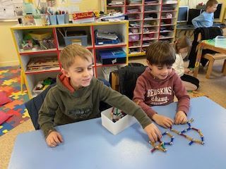 Pour cette nouvelle année, les CP et CE1 sont devenus des parrains et des marraines pour les enfants de GS.