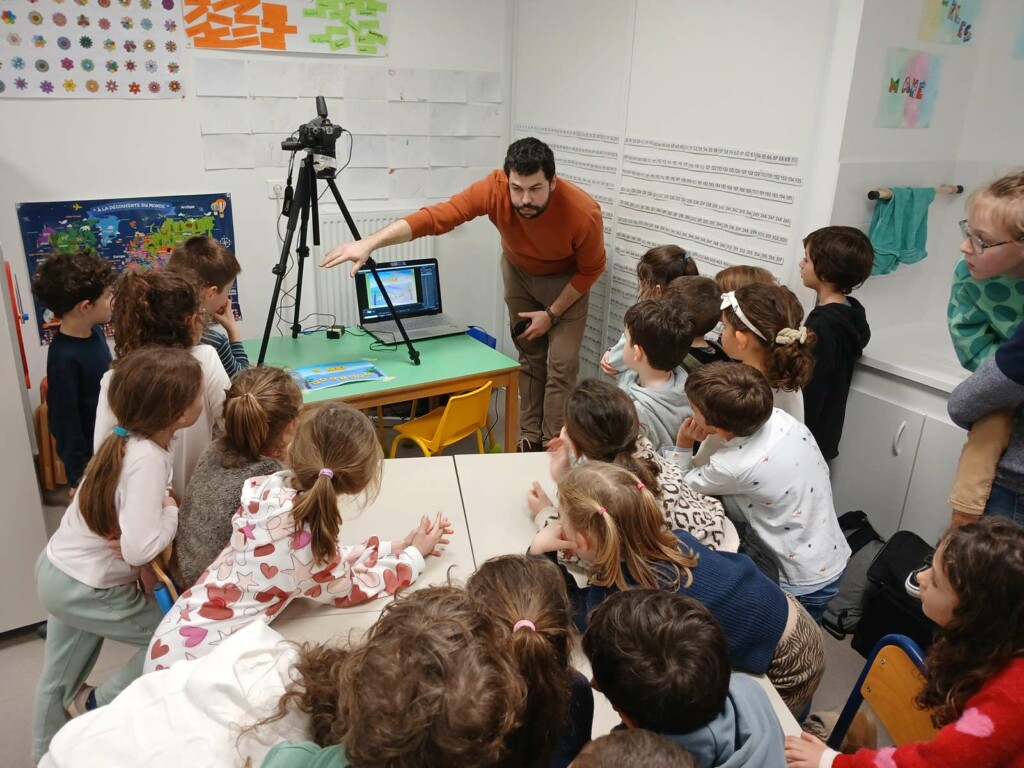 Ce matin, munis de bottes et d’épuisettes, les élèves de la classe de MS/GS sont allés explorer la petite mare située près de l’école. Avec l’aide d’Annaëlle, animatrice de Vendée eau et de quelques parents (ou mamies), ils ont réussi à pêcher des larves de libellule, de dytiques et un triton. Après avoir observé cette […]