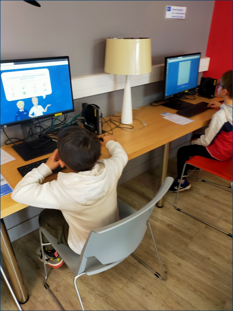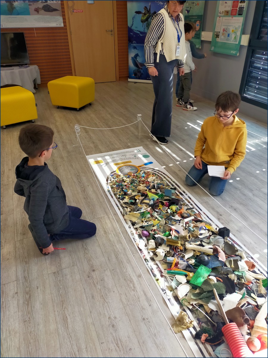 • Le deuxième groupe a lu quelques livres sur les déchets et la pollution et a joué sur les ordinateurs. Il fallait, par exemple, reconstituer le trajet d’un déchet plastique jusqu’à l’océan ou encore trier des déchets en les mettant dans les bonnes poubelles.