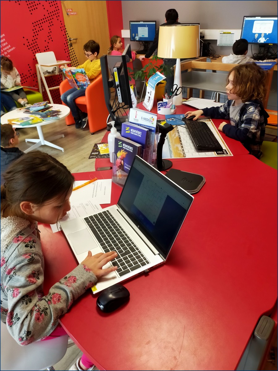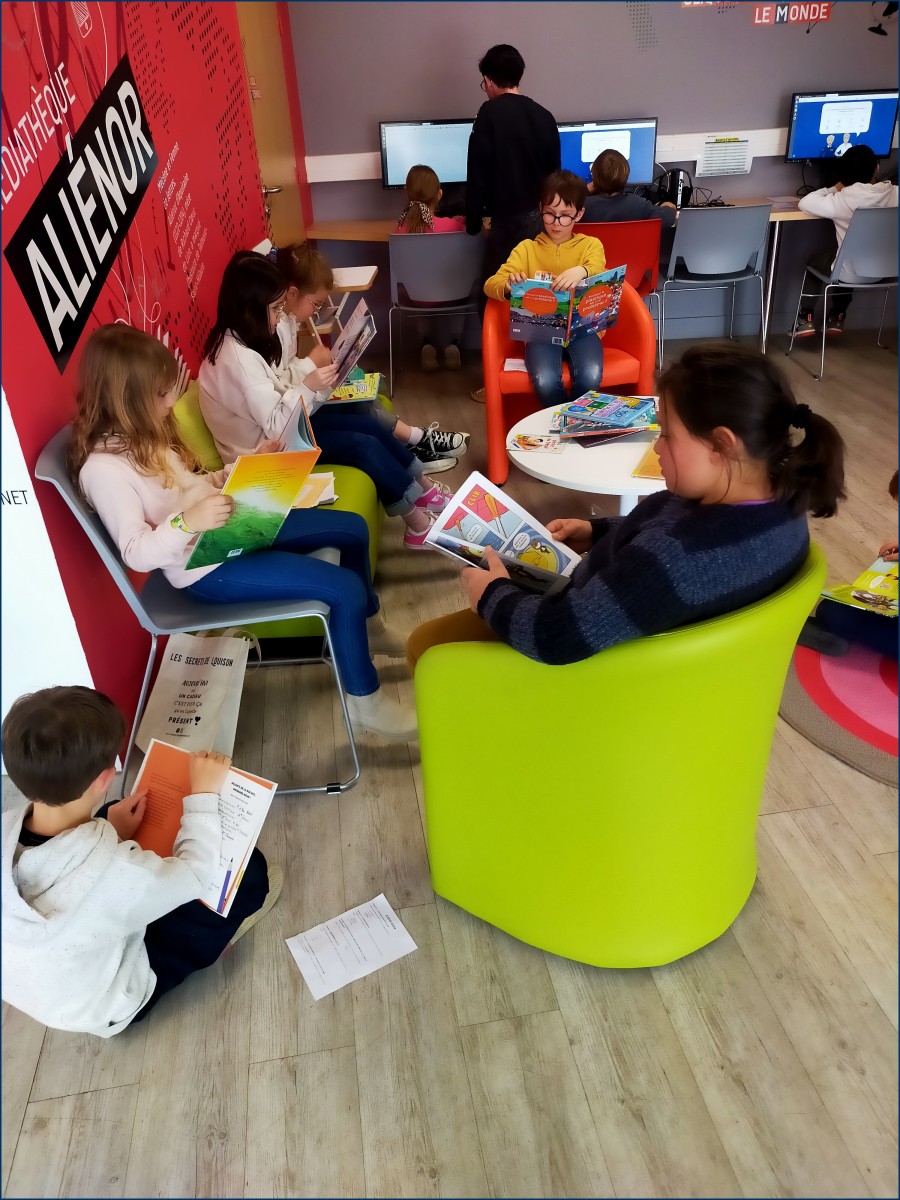 Jeudi 6 Mars, nous avions rendez-vous avec Sophie, animatrice à la médiathèque Aliénor de Talmont. En arrivant, nous nous sommes divisés en deux groupes :