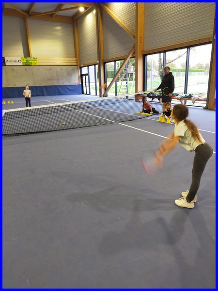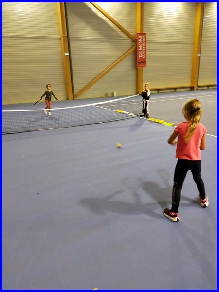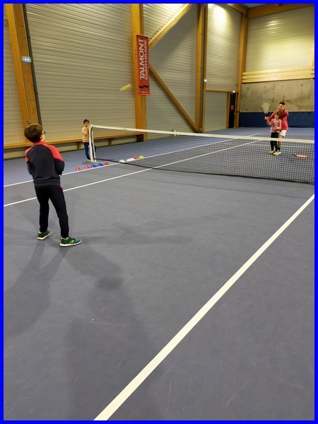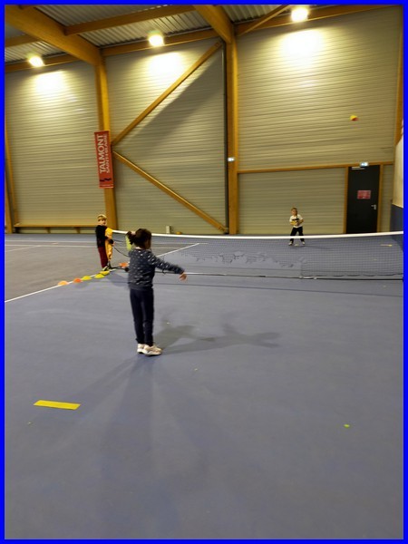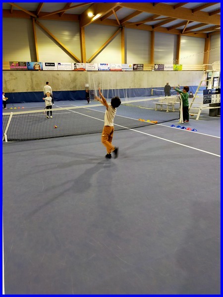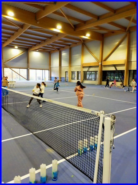 Le cycle tennis de huit séances se termine pour notre classe. Maintenant, nous savons faire des services, des coups droits et des revers. Nous avons appris à compter les points en faisant des petits matchs et à remercier son adversaire en se serrant la main et en disant « bien joué ! »