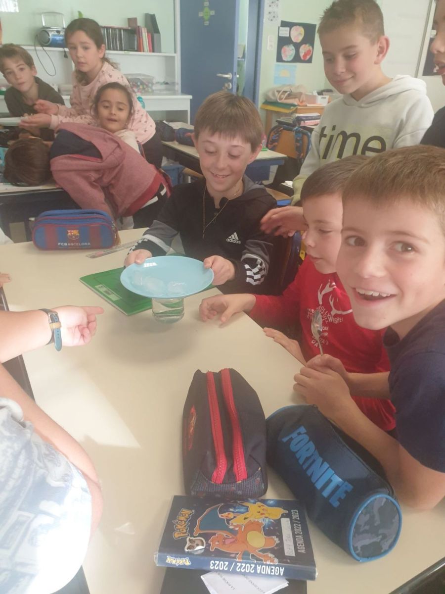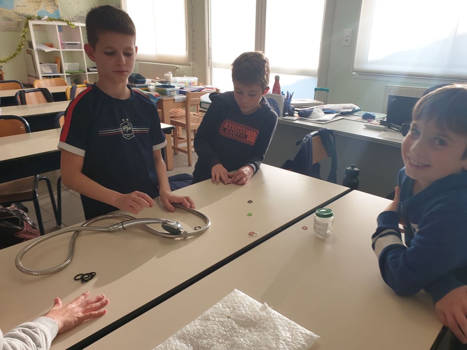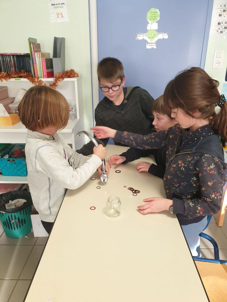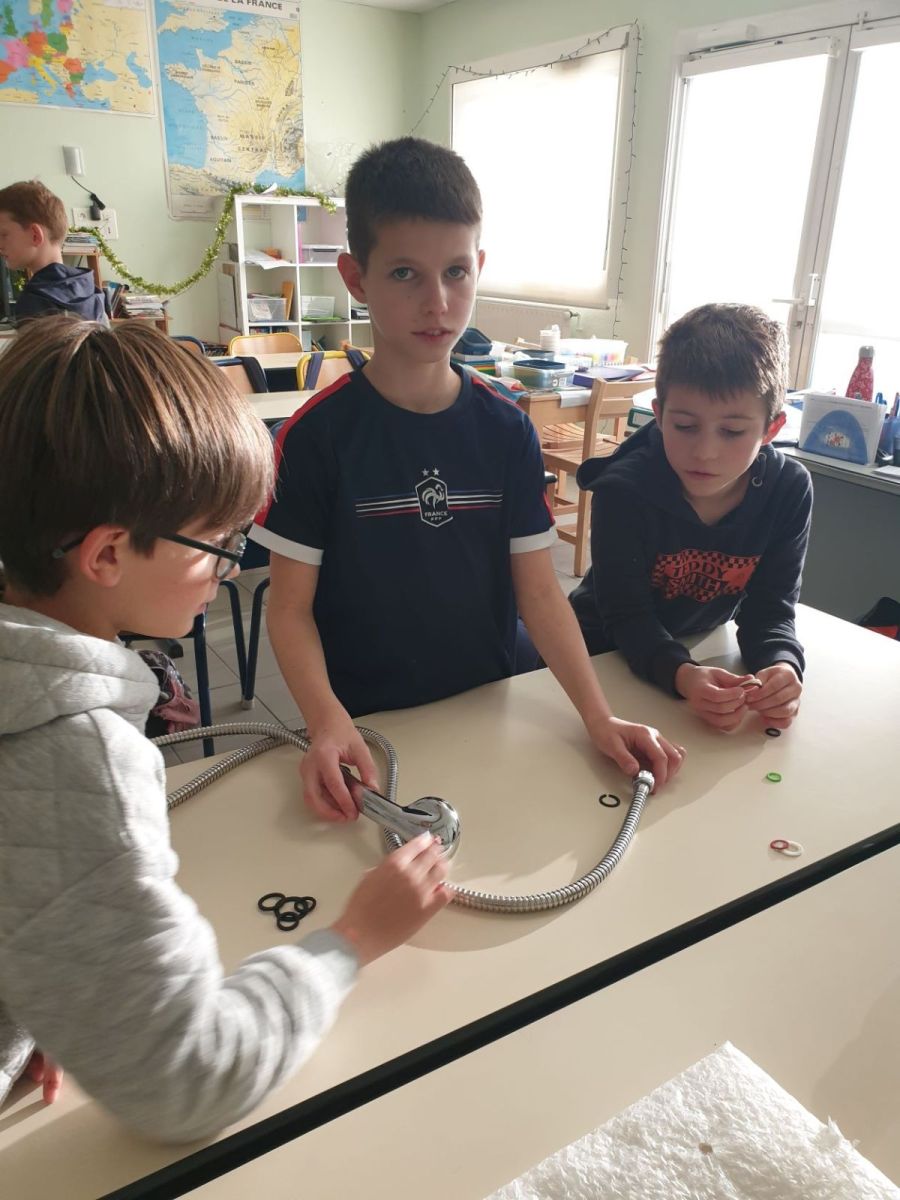 En sciences, les élèves ont appris le cycle naturel de l’eau. Le premier décembre 2022, nous avons eu l’intervention de Coralie de Vendée Eau sur le bon usage de l’eau et le cycle domestique de l’eau. Le 9 décembre, nous avons participé à un grand jeu de 5 équipes sur les gestes simples pour économiser l’eau : nous avons fait des ateliers techniques (réparer un robinet) ; des défis (la quantité d’eau dans une baignoire 150L) des connaissances (différentes eaux : potable ; usée ; naturelle ) l ’environnement (pollution, gestes simples)…