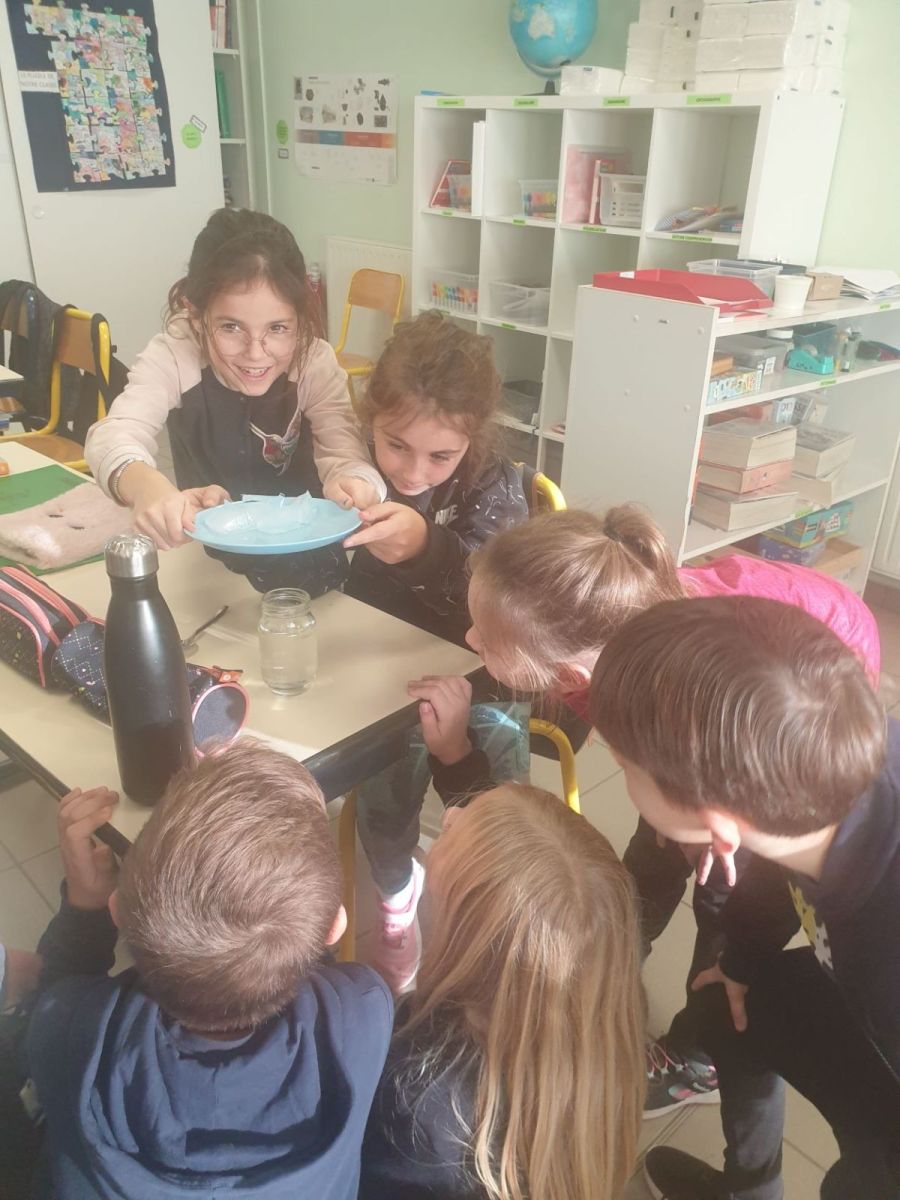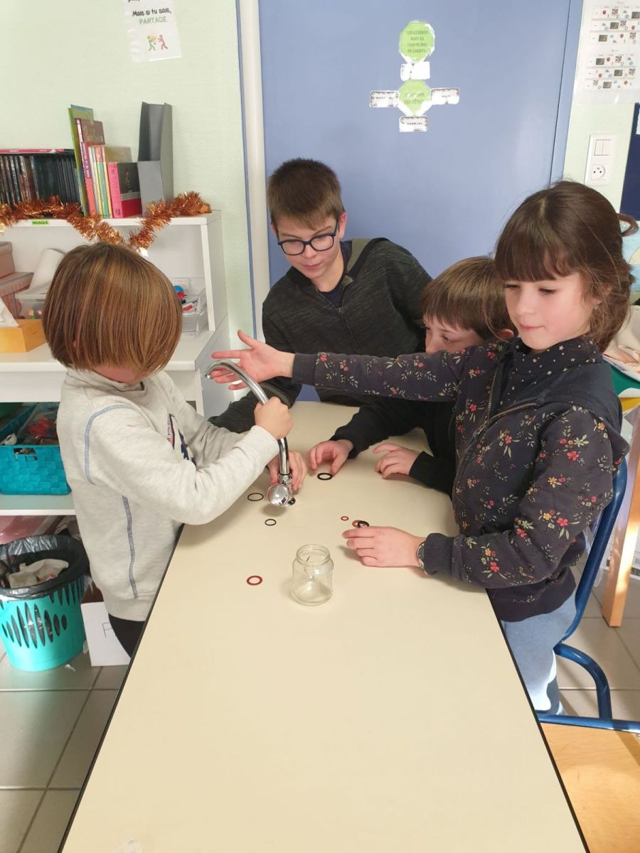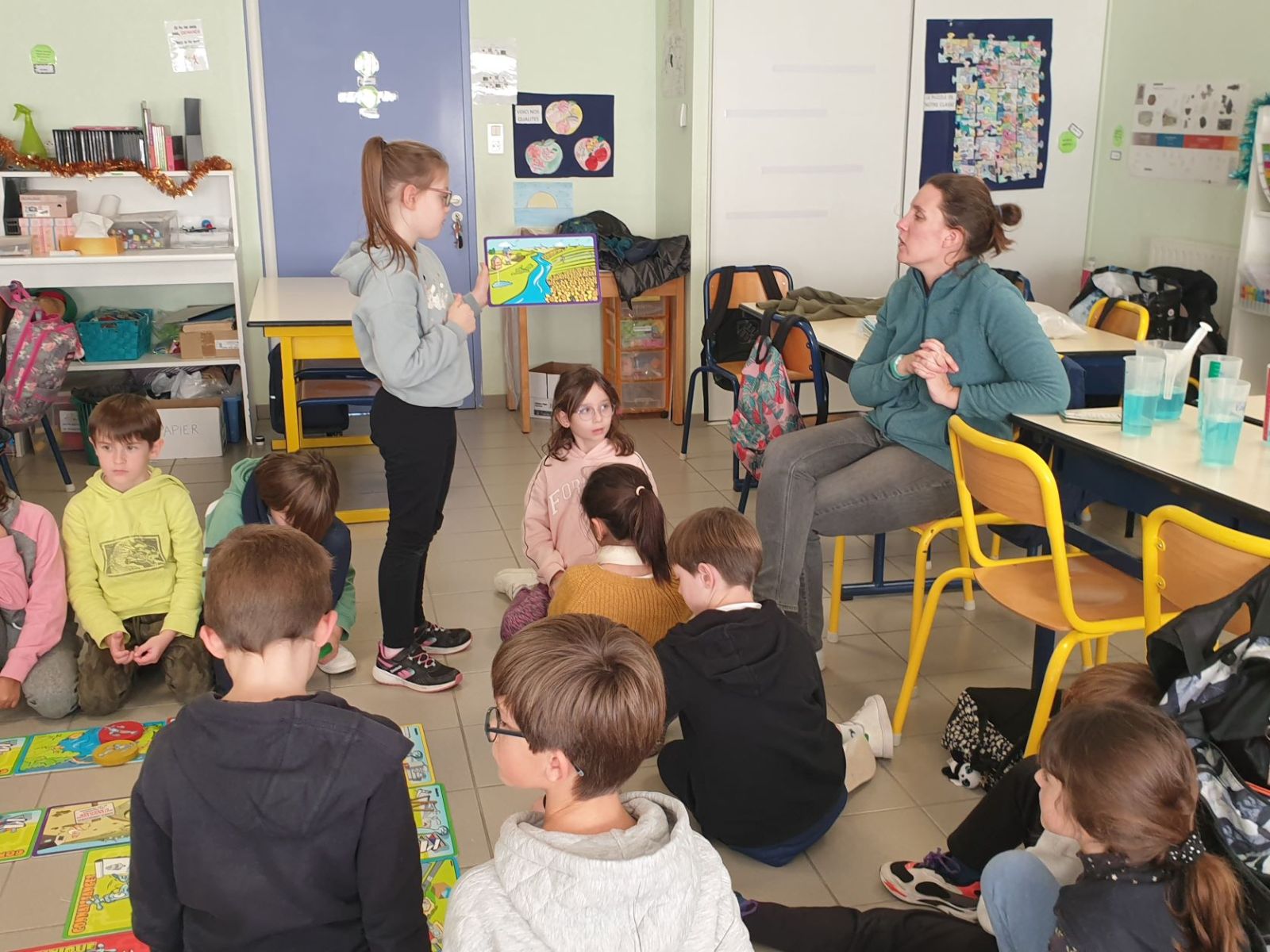 En sciences, les élèves ont appris le cycle naturel de l’eau. Le premier décembre 2022, nous avons eu l’intervention de Coralie de Vendée Eau sur le bon usage de l’eau et le cycle domestique de l’eau. Le 9 décembre, nous avons participé à un grand jeu de 5 équipes sur les gestes simples pour économiser l’eau : nous avons fait des ateliers techniques (réparer un robinet) ; des défis (la quantité d’eau dans une baignoire 150L) des connaissances (différentes eaux : potable ; usée ; naturelle ) l ’environnement (pollution, gestes simples)…