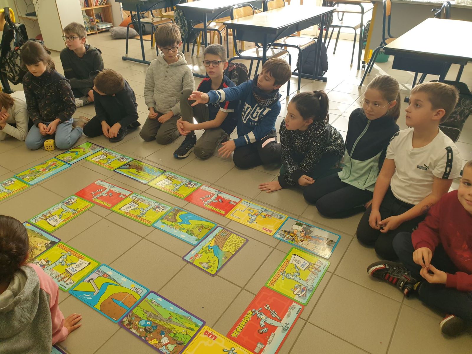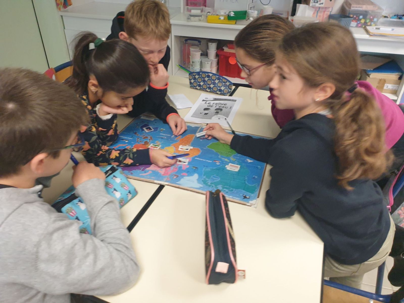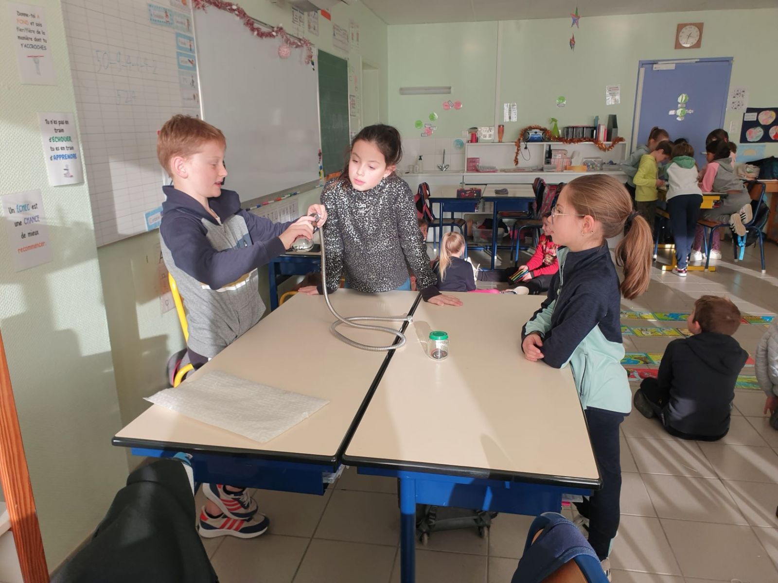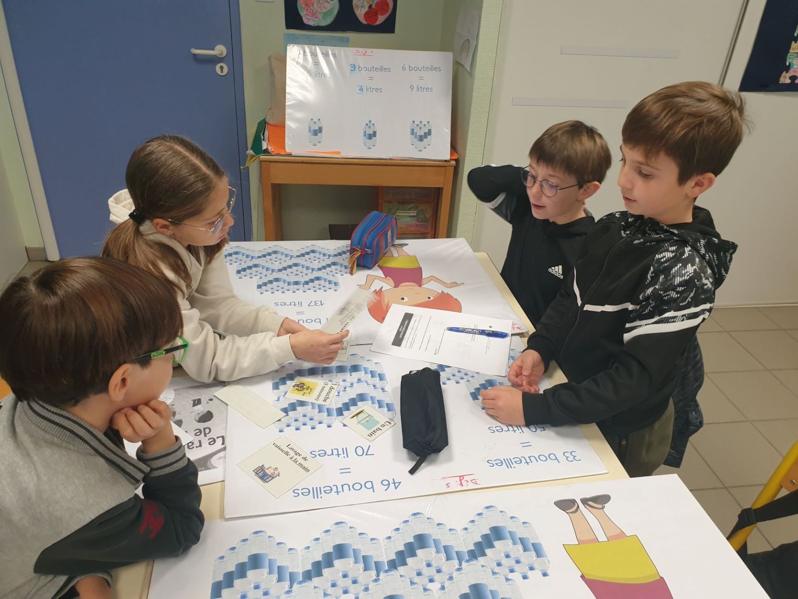 En sciences, les élèves ont appris le cycle naturel de l’eau. Le premier décembre 2022, nous avons eu l’intervention de Coralie de Vendée Eau sur le bon usage de l’eau et le cycle domestique de l’eau. Le 9 décembre, nous avons participé à un grand jeu de 5 équipes sur les gestes simples pour économiser l’eau : nous avons fait des ateliers techniques (réparer un robinet) ; des défis (la quantité d’eau dans une baignoire 150L) des connaissances (différentes eaux : potable ; usée ; naturelle ) l ’environnement (pollution, gestes simples)…