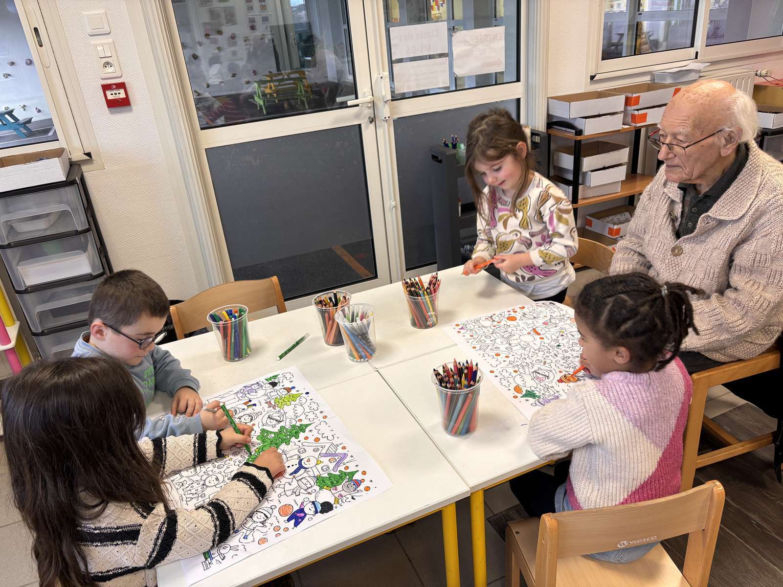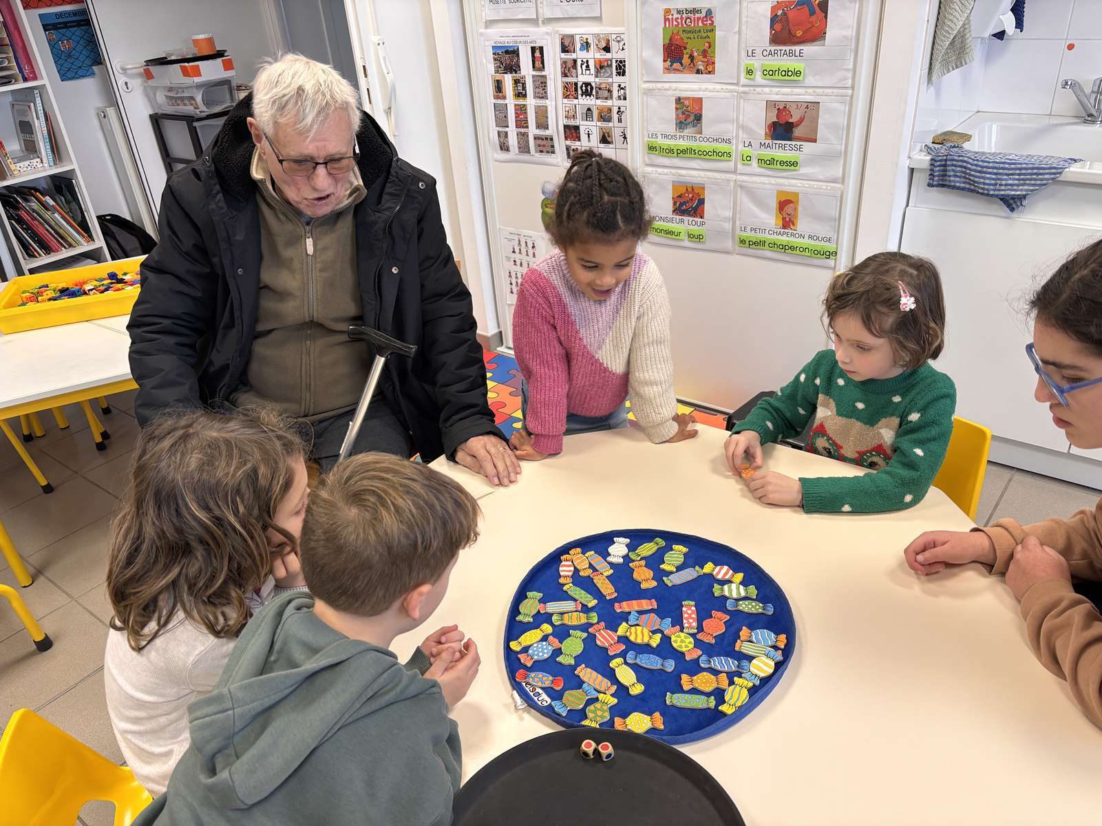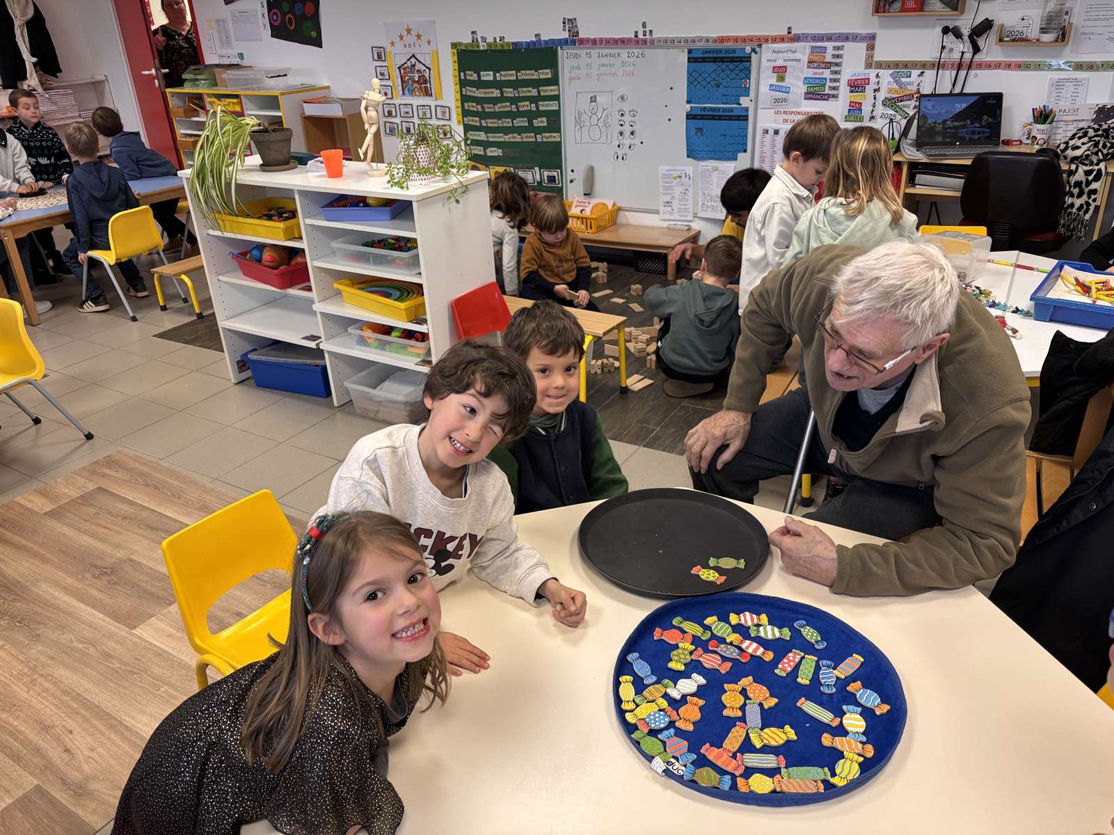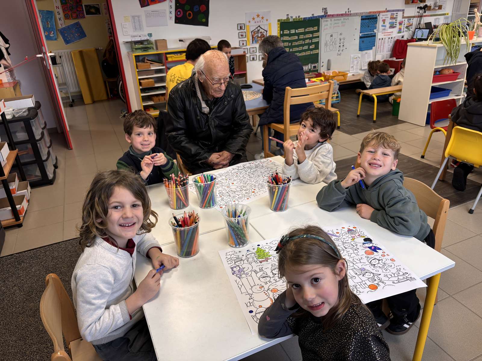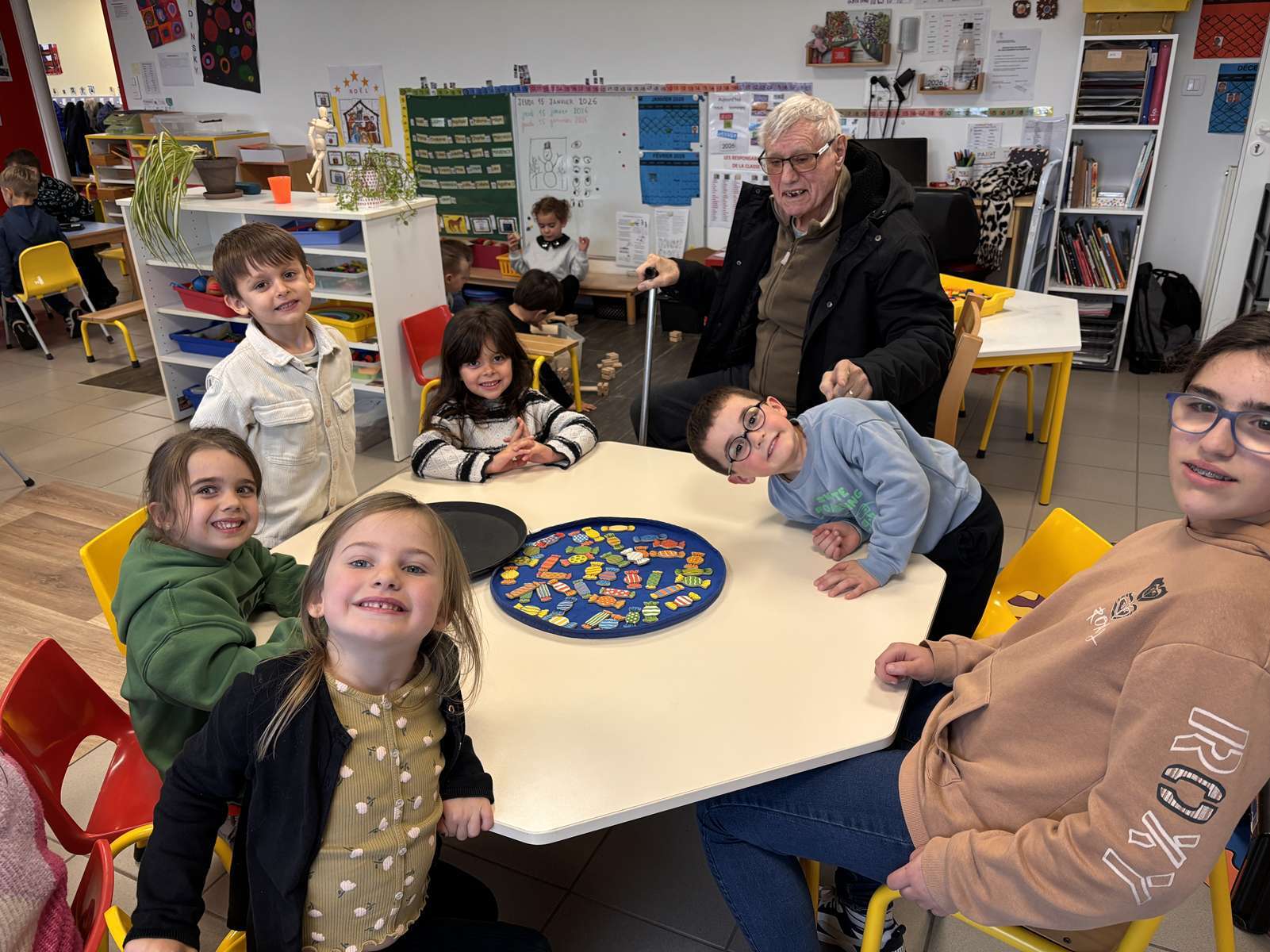 Jeudi après-midi, les personnes âgées de la maison de retraite sont venues à l’école pour des ateliers jeux, dessins et bricolages. Nous avons passé un très bon moment en leur compagnie. A notre tour, nous leur rendrons visite le lundi 9 Février.