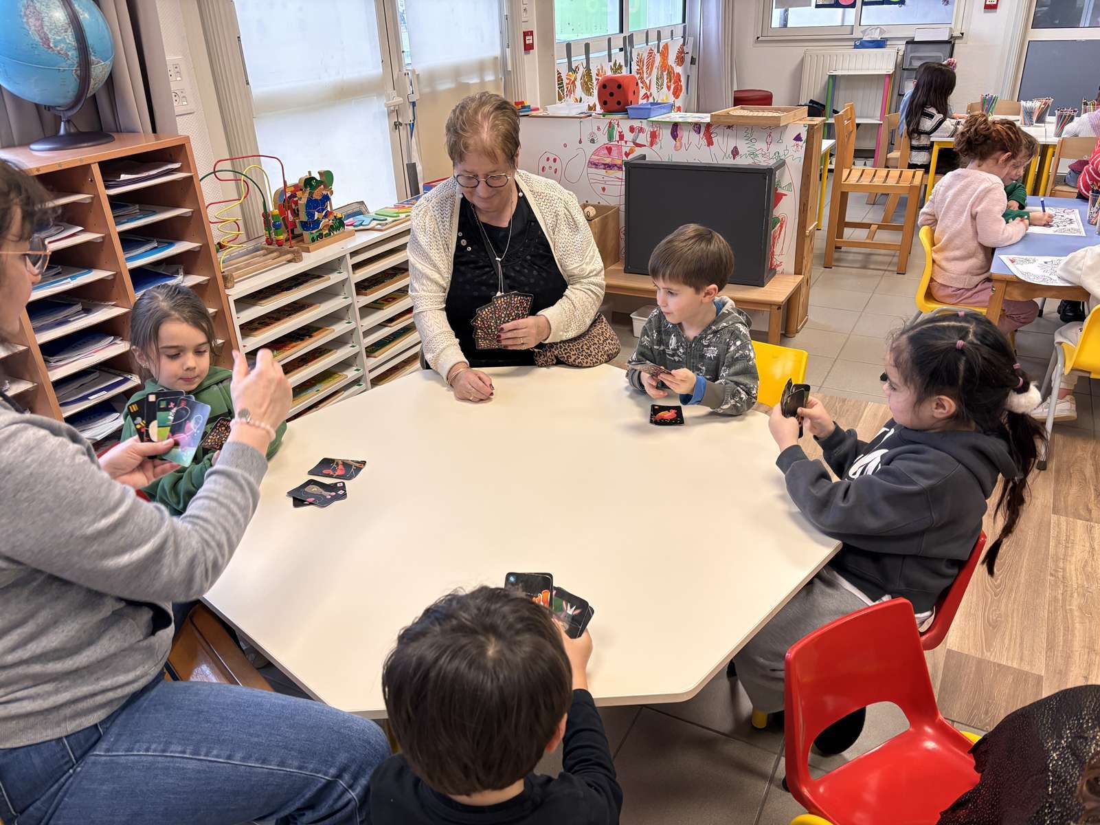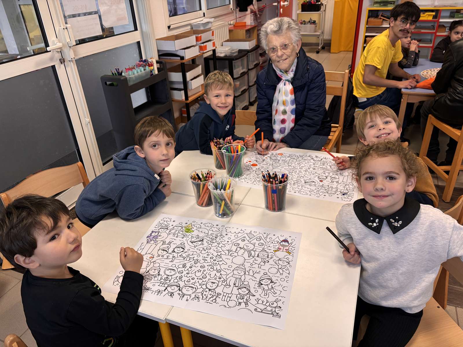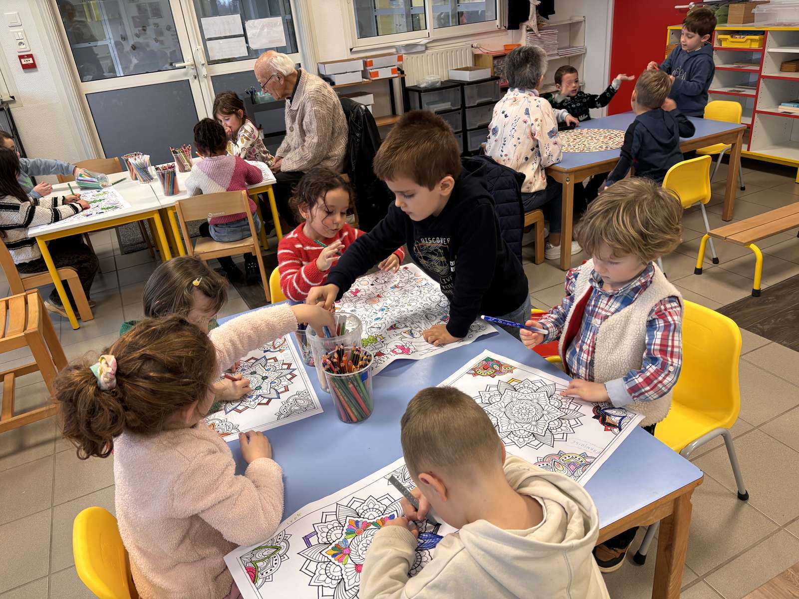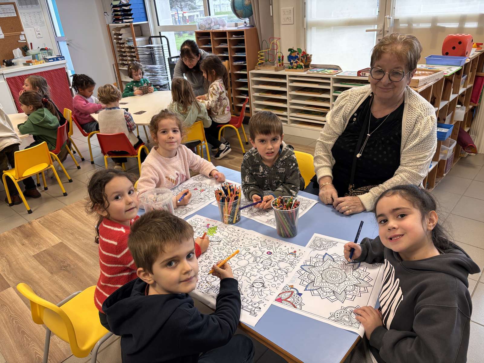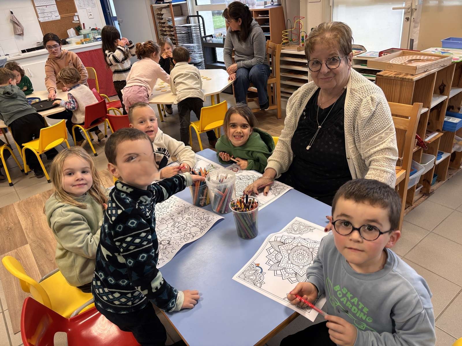Jeudi après-midi, les personnes âgées de la maison de retraite sont venues à l’école pour des ateliers jeux, dessins et bricolages. Nous avons passé un très bon moment en leur compagnie. A notre tour, nous leur rendrons visite le lundi 9 Février.