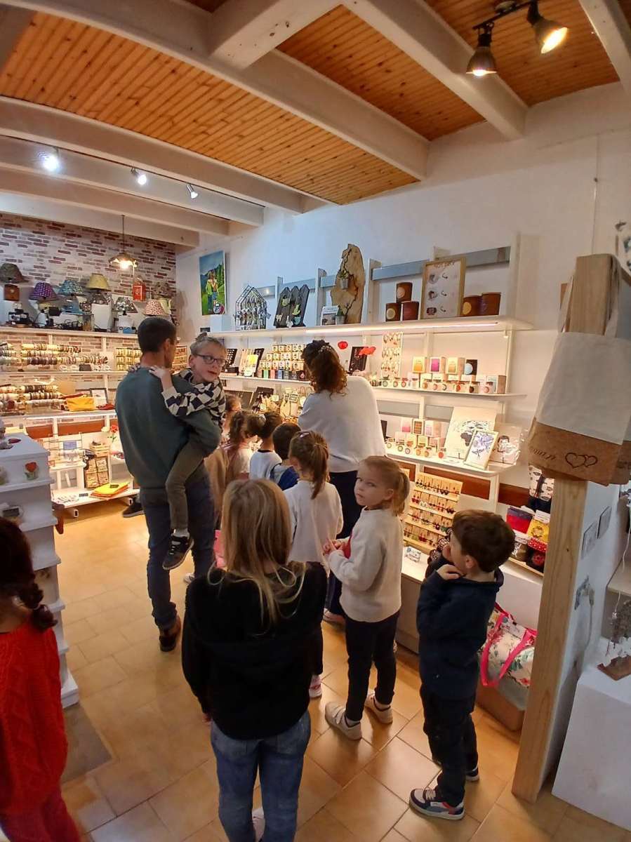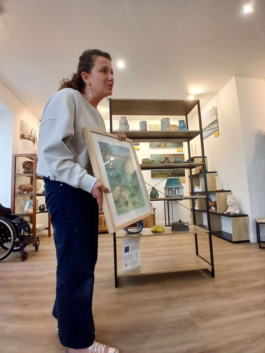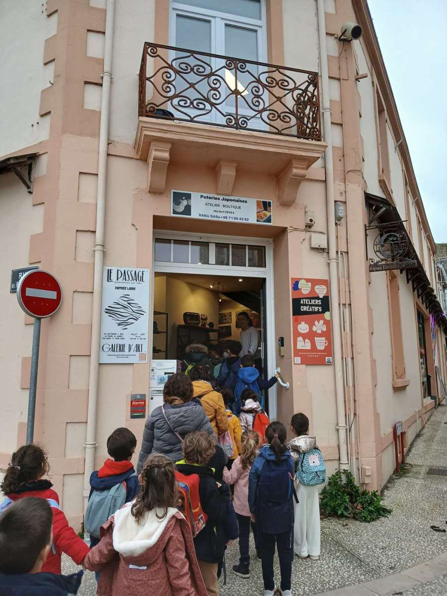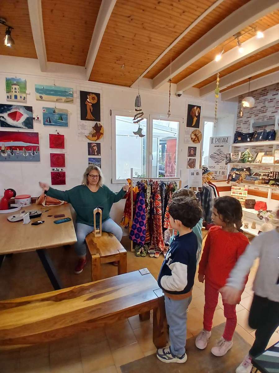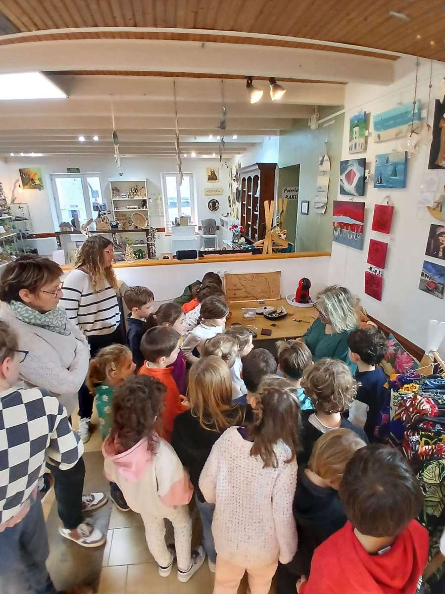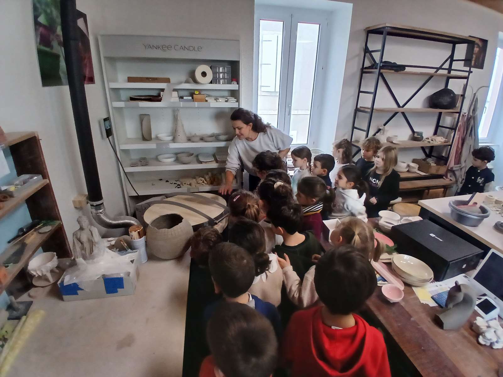 - une galerie où nous avons observé des œuvres : sculptures, photographie, joaillerie, pastels, objets détournés, céramique… Winifred nous a expliqué les différences avec un musée.
