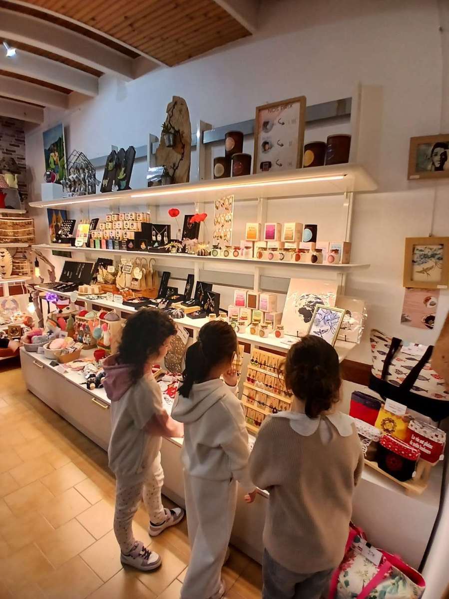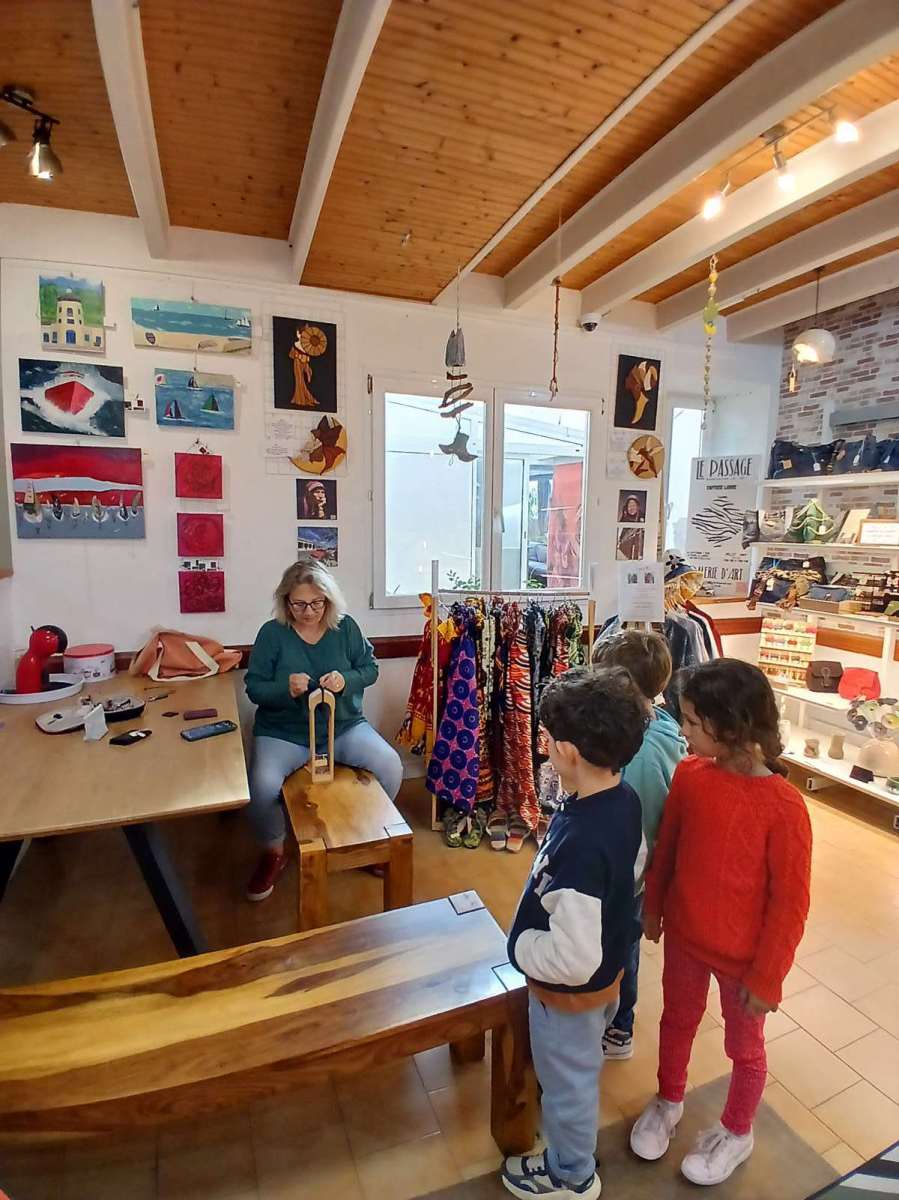 - une boutique dans laquelle nous avons observé le travail de la maroquinerie avec Valérie. Cette artiste cousait un porte carte en cuir. Que d’objets dans ce petit magasin!