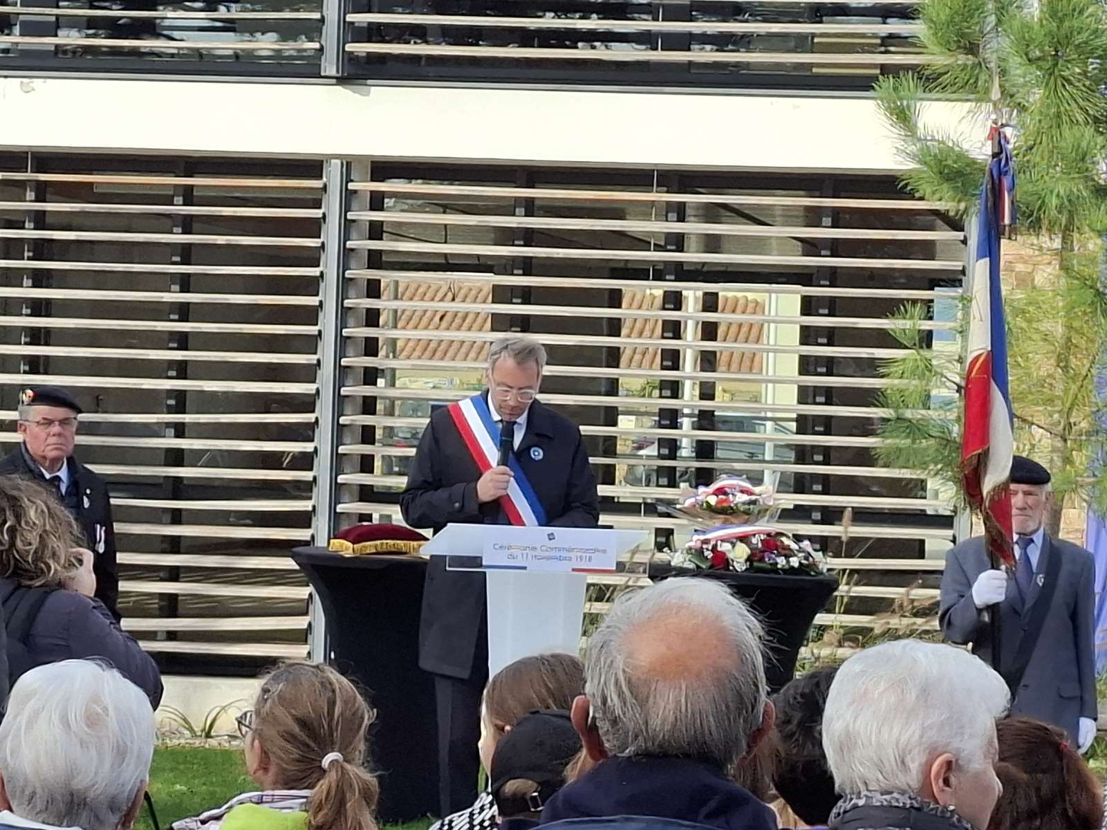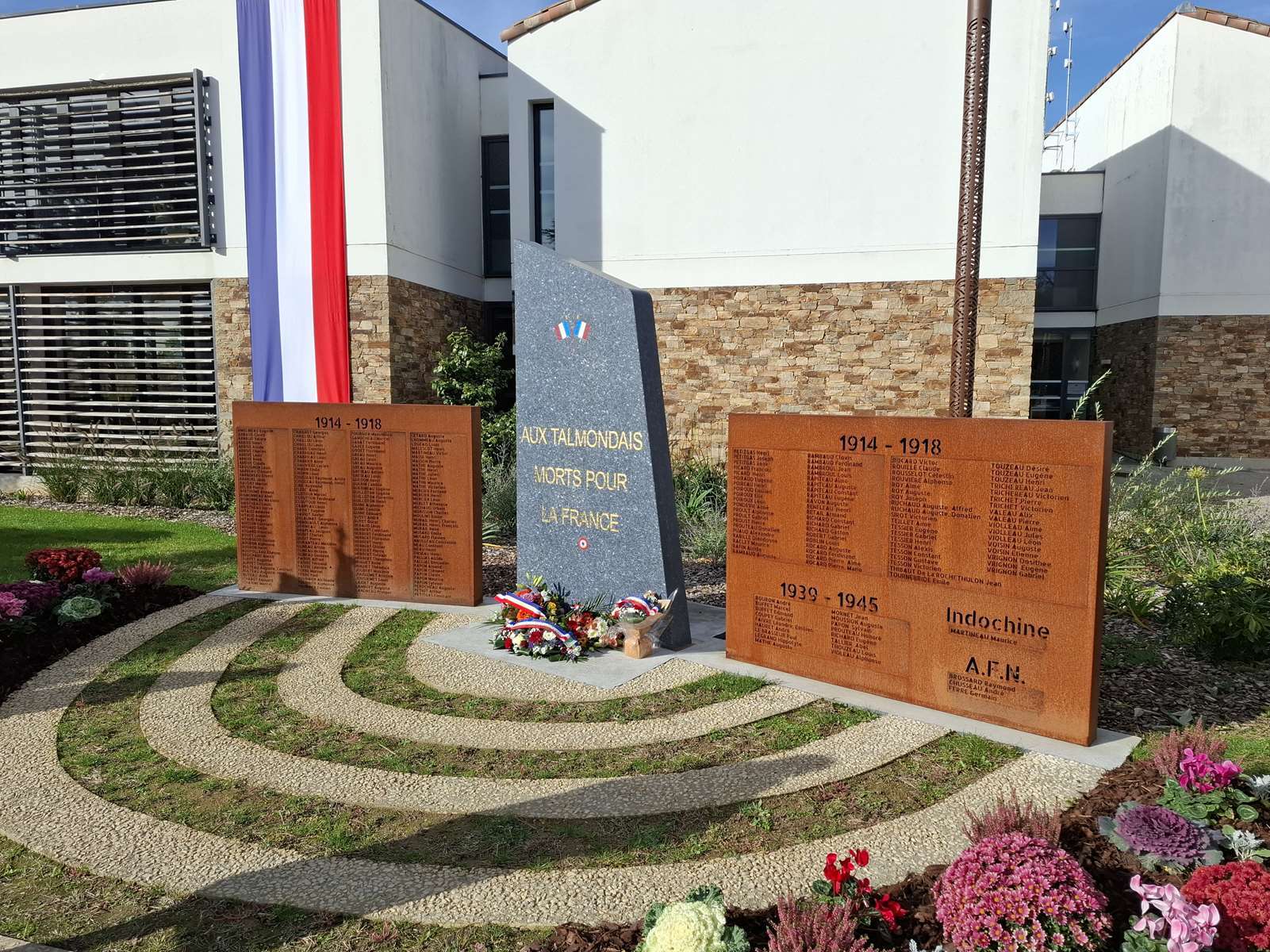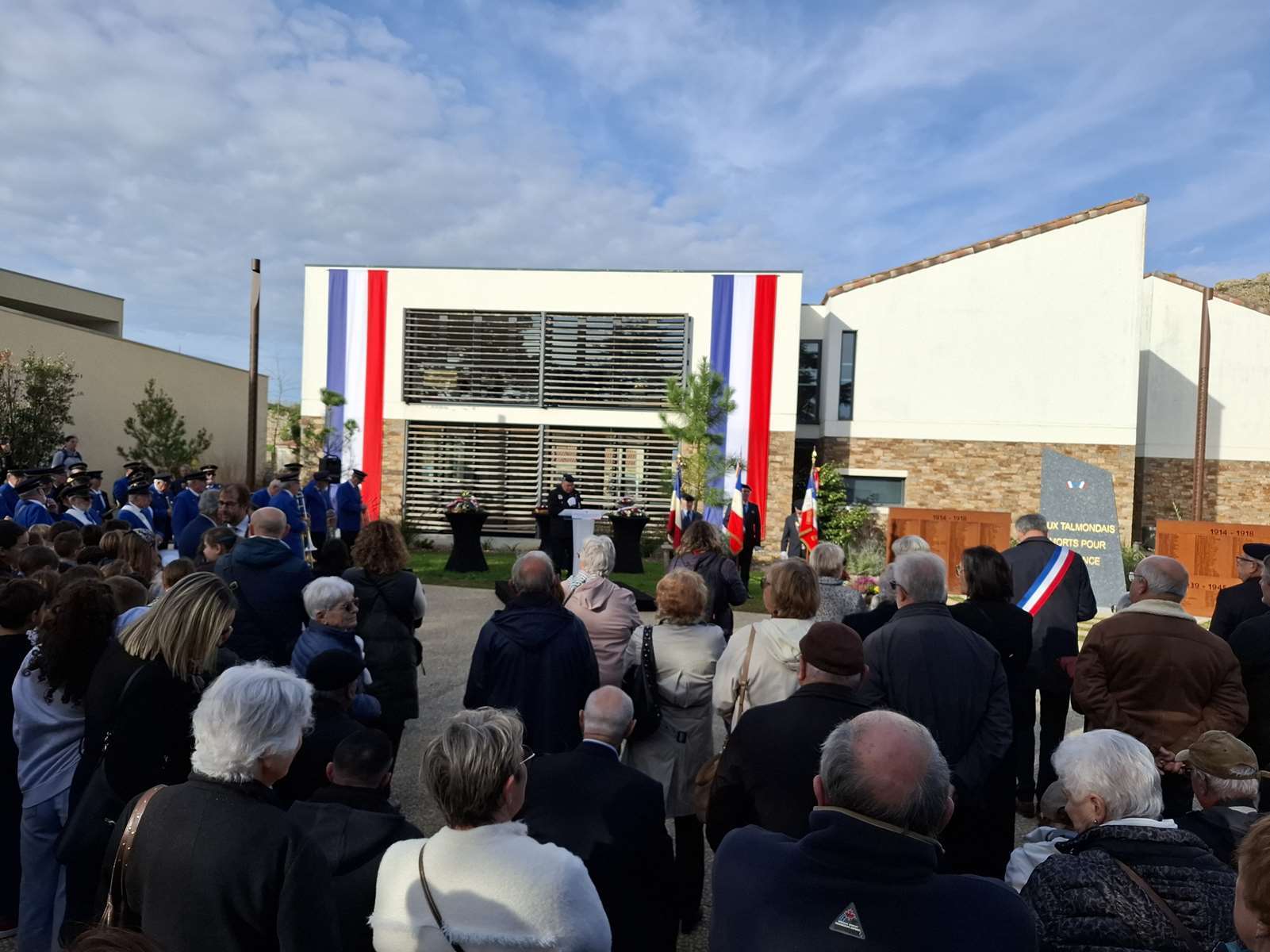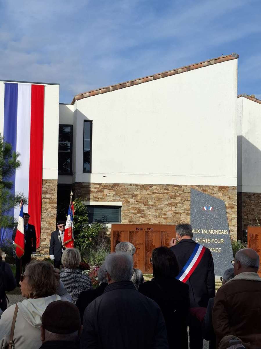 Défilé ; fanfare talmondaise ; discours officiels ; lettres de Poilus, lues par des élèves ; levée des couleurs et dépôt de gerbes de fleurs, en l’honneur des Talmondais morts pour la France, pendant la première guerre mondiale plus particulièrement.