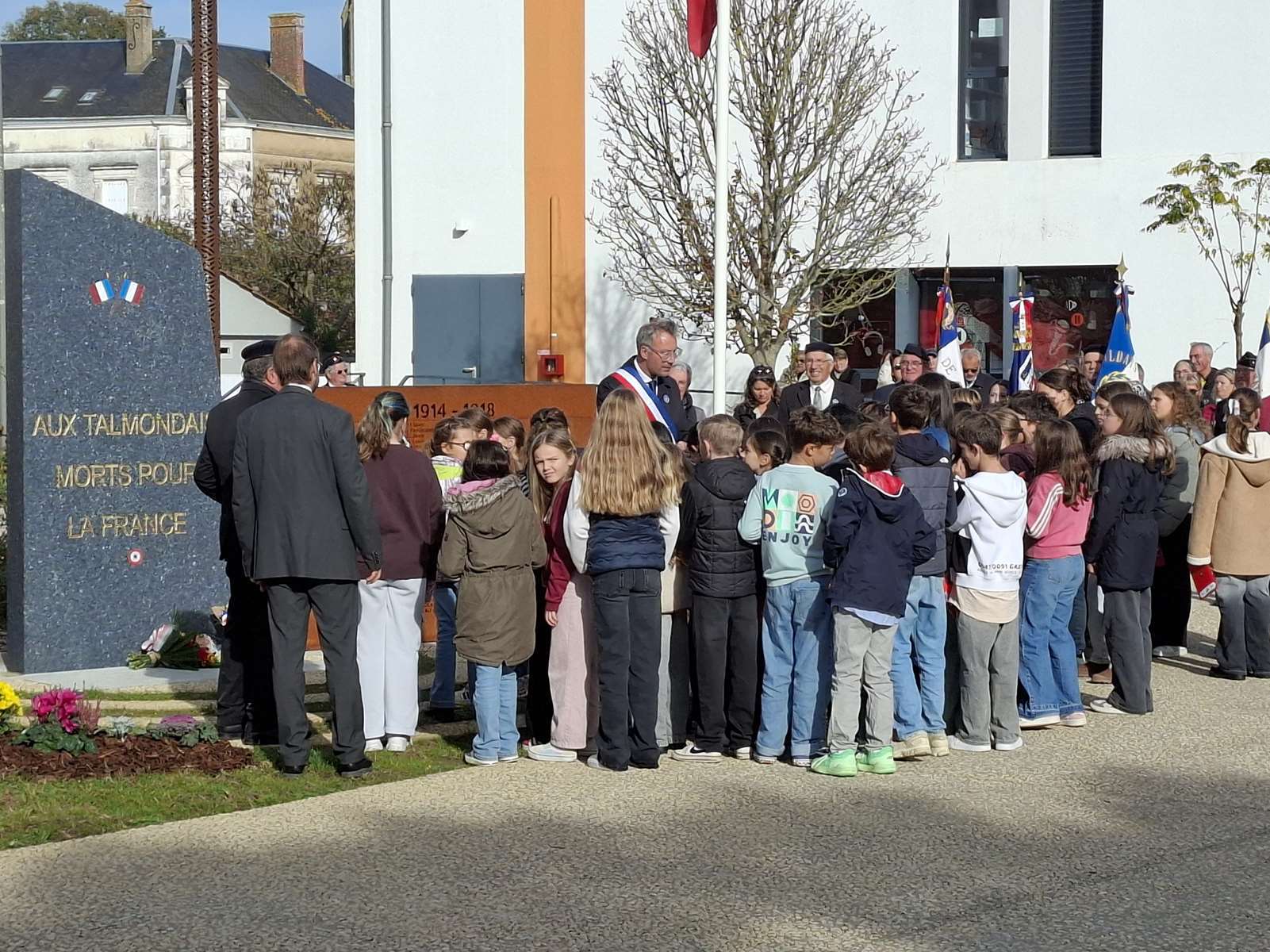 Mardi 11 novembre 2025, les élèves de CM2 des écoles de Talmont St Hilaire étaient invités à vivre une commémoration officielle du 107ème anniversaire de l’Armistice 1918, notre première étape du passeport du civisme 2025-2026.