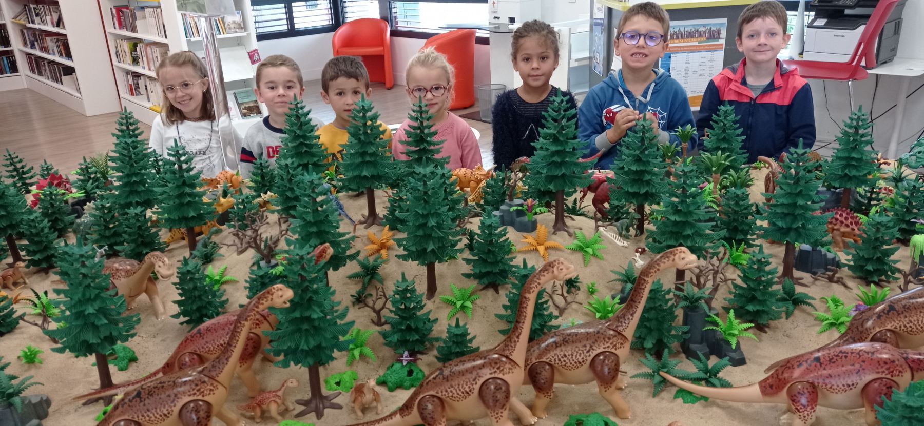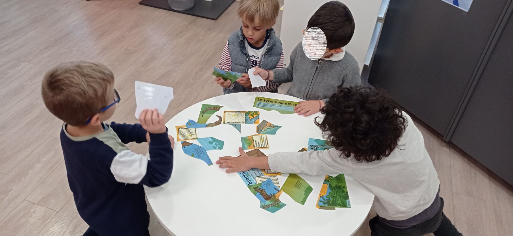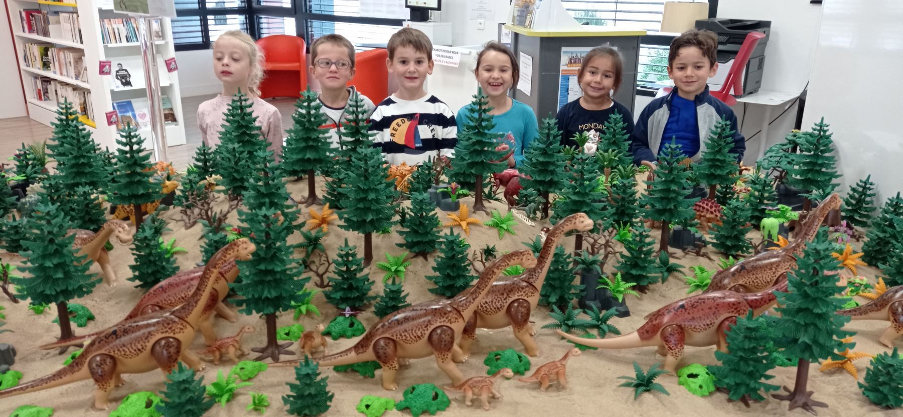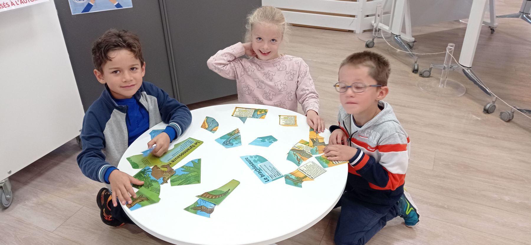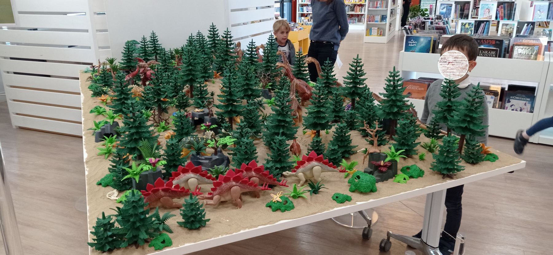 Nous avons participé à différents ateliers (reconstitution de puzzles, dessin) et nous avons pu admirer une belle mise en scène de dinosaures « Playmobils »!