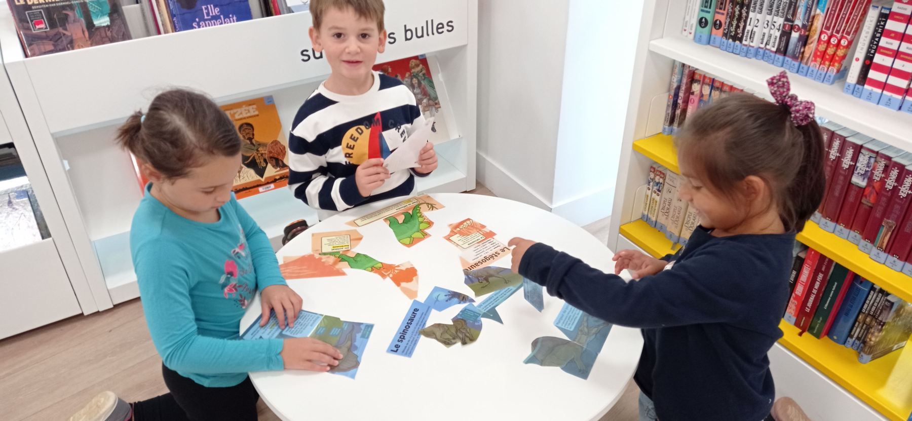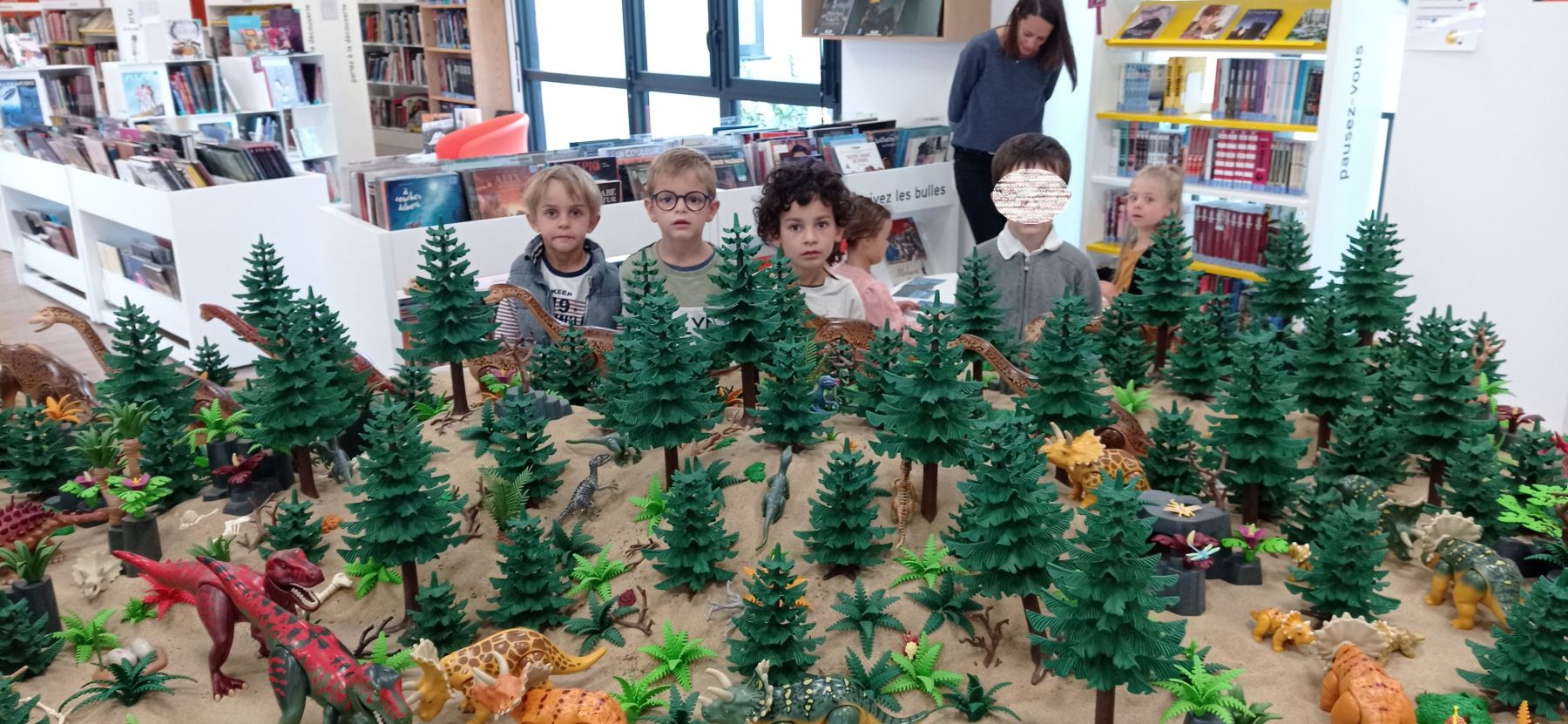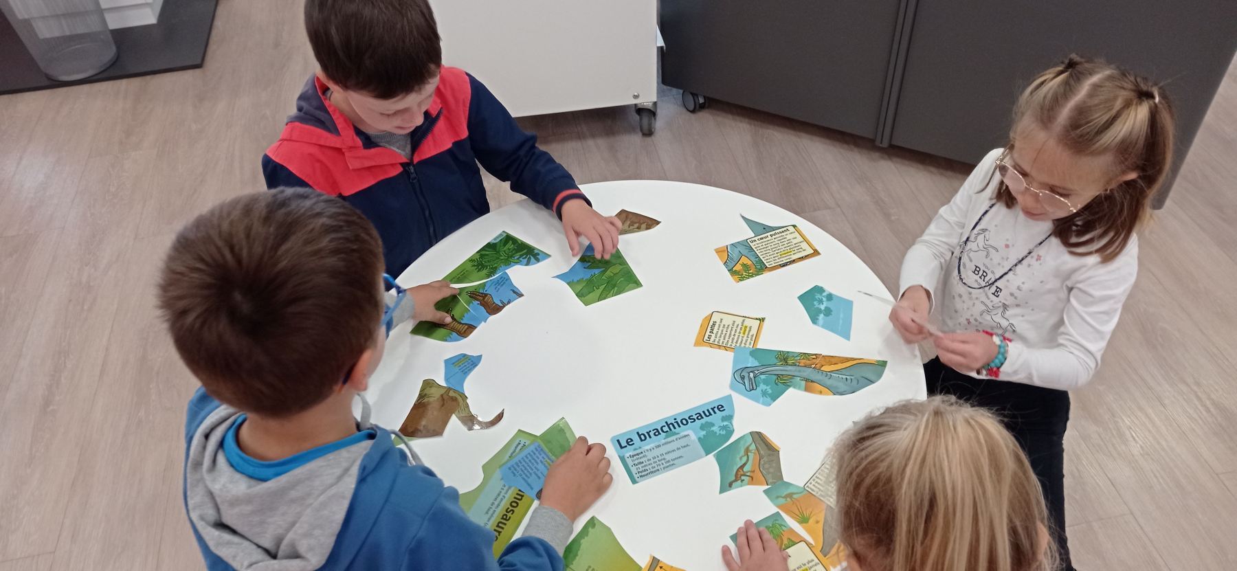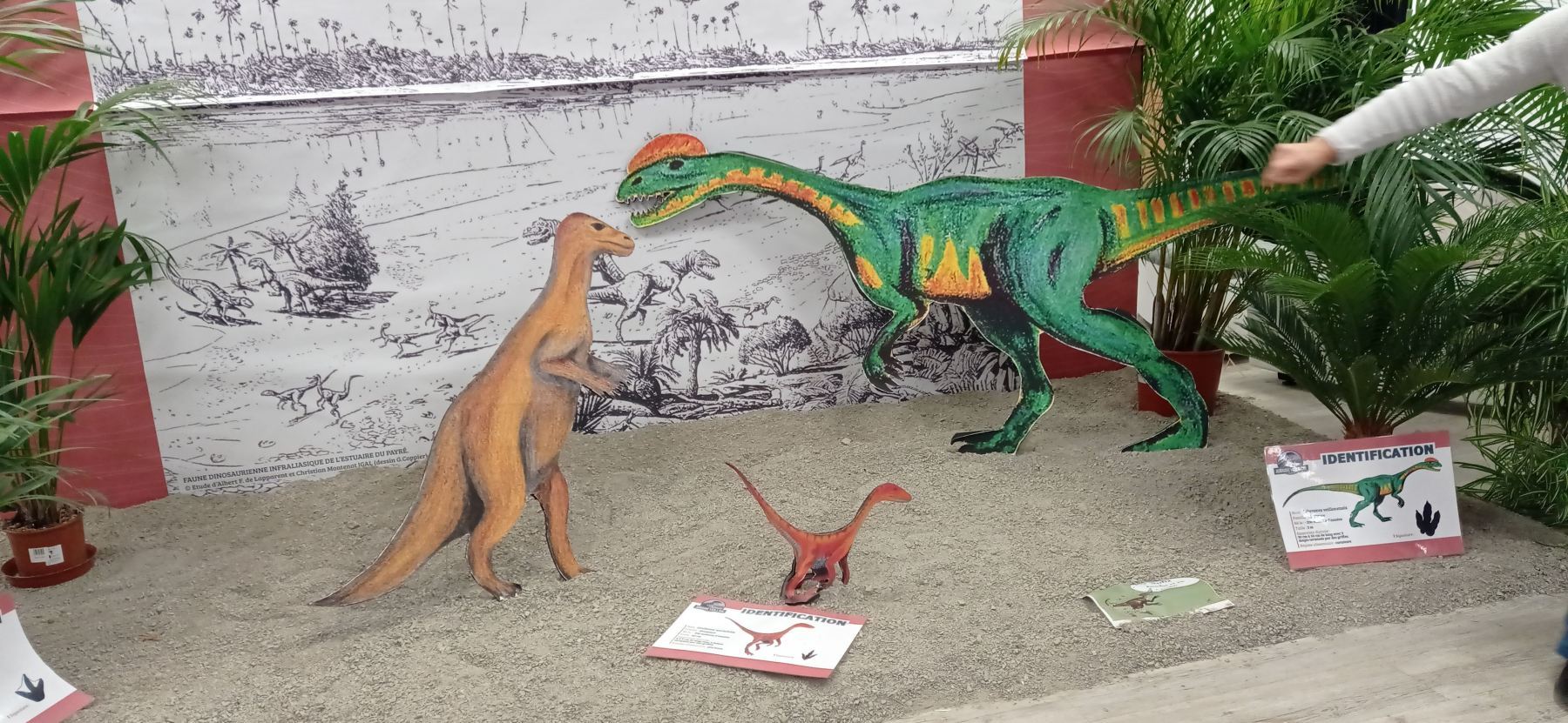 Nous avons participé à différents ateliers (reconstitution de puzzles, dessin) et nous avons pu admirer une belle mise en scène de dinosaures « Playmobils »!