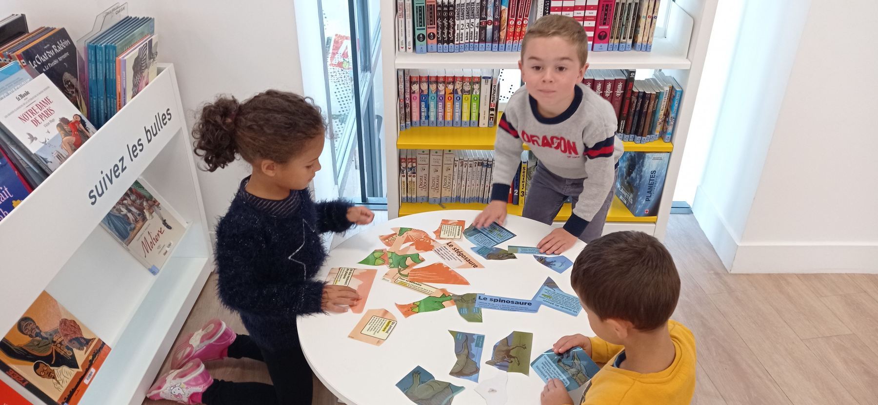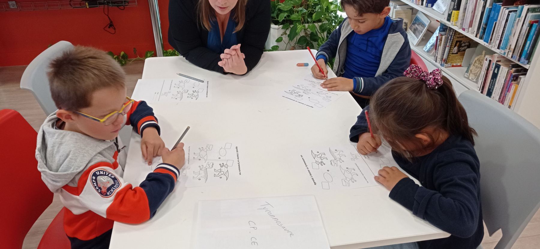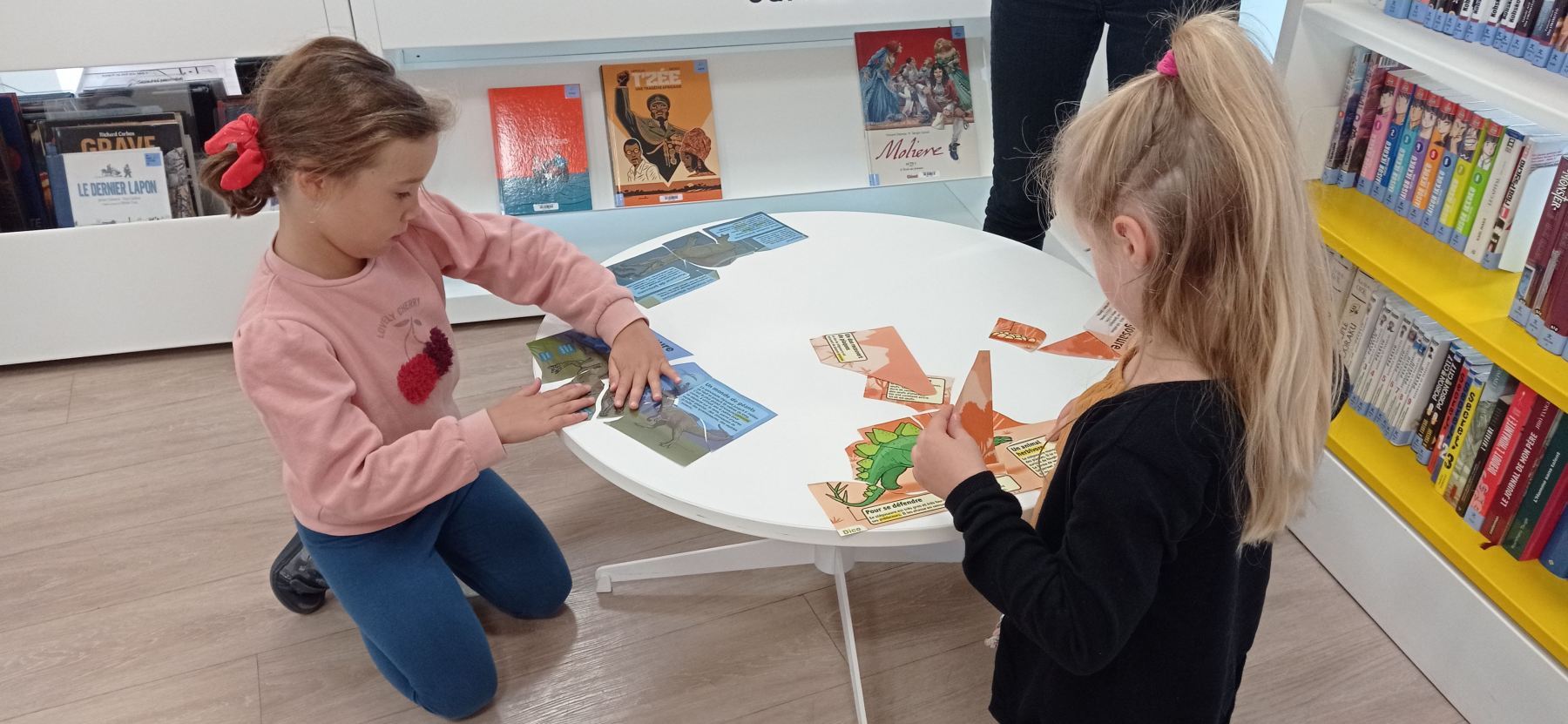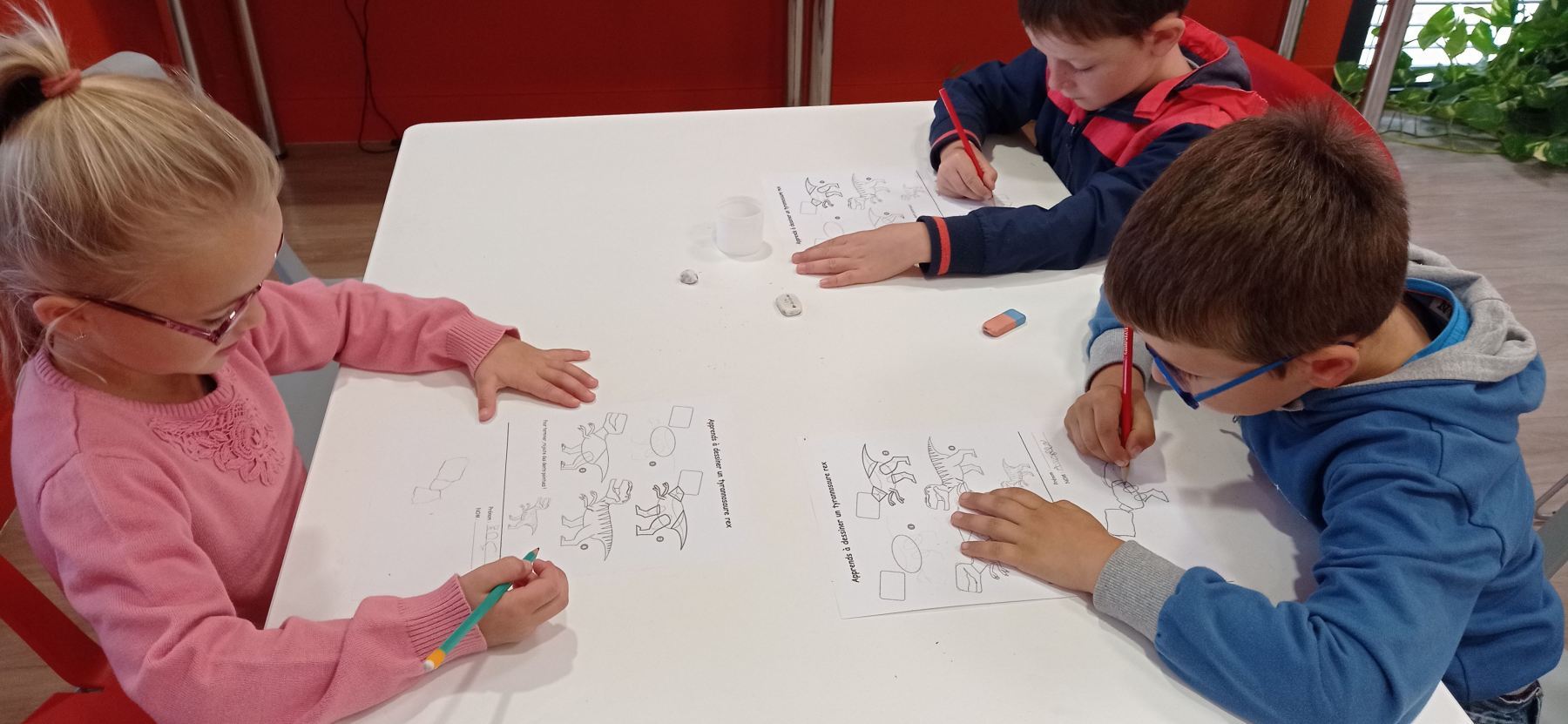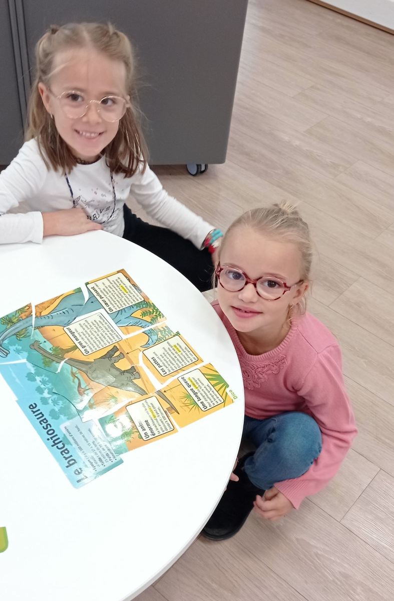Nous avons participé à différents ateliers (reconstitution de puzzles, dessin) et nous avons pu admirer une belle mise en scène de dinosaures « Playmobils »!