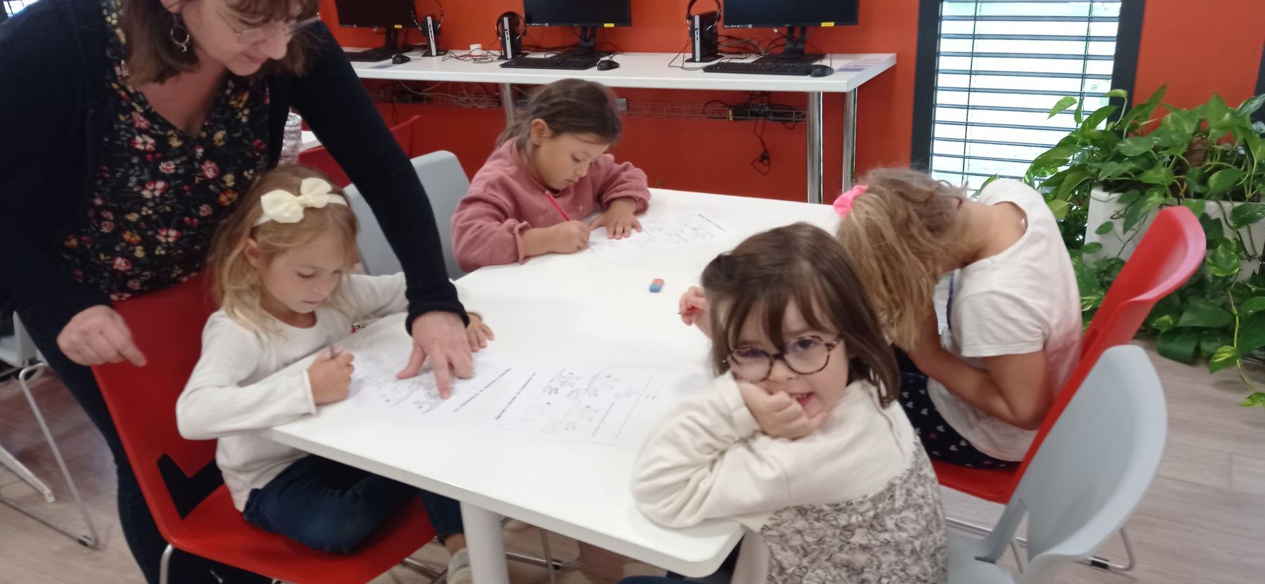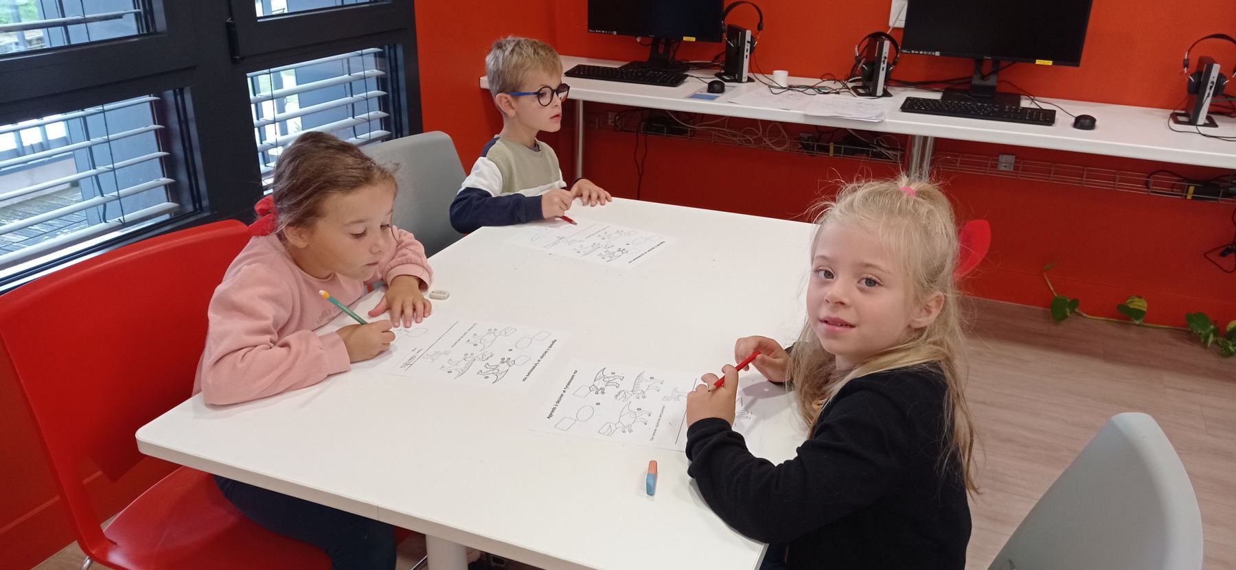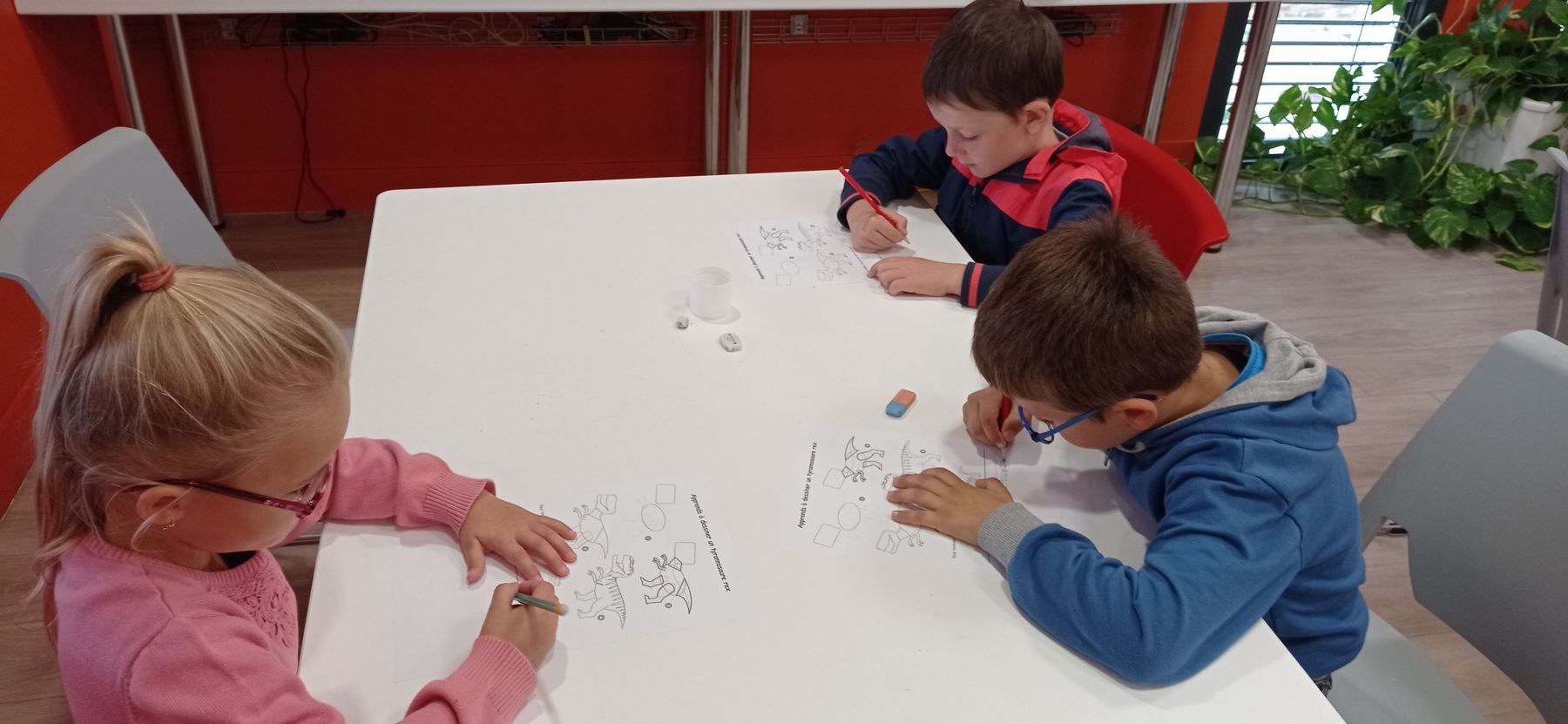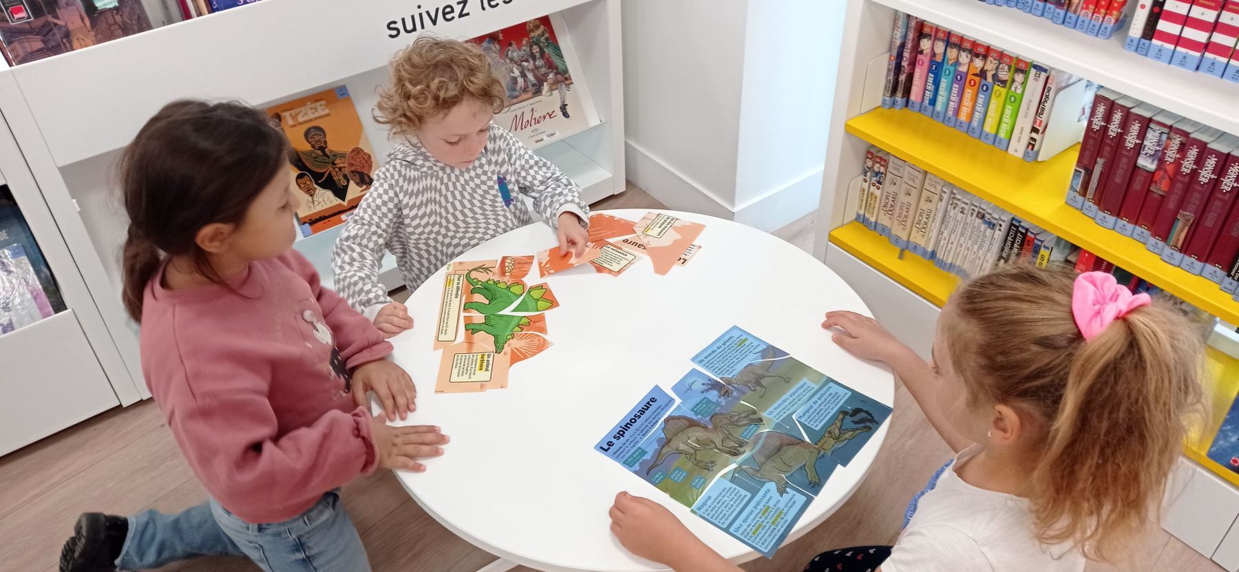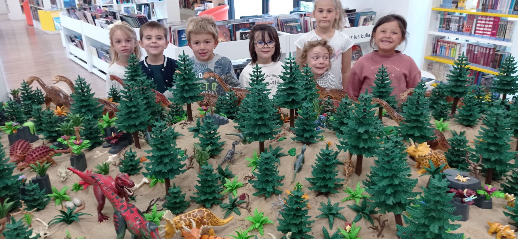 Nous avons participé à différents ateliers (reconstitution de puzzles, dessin) et nous avons pu admirer une belle mise en scène de dinosaures « Playmobils »!