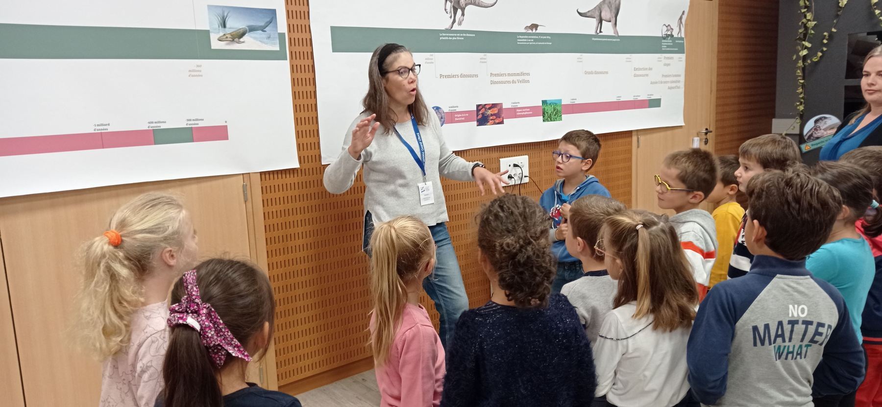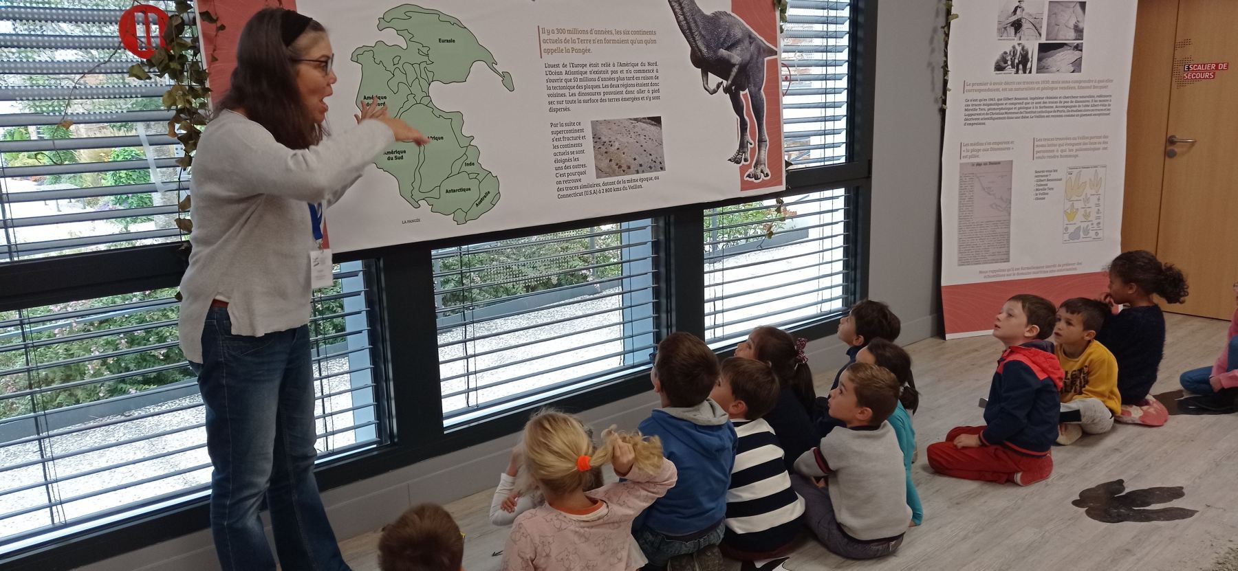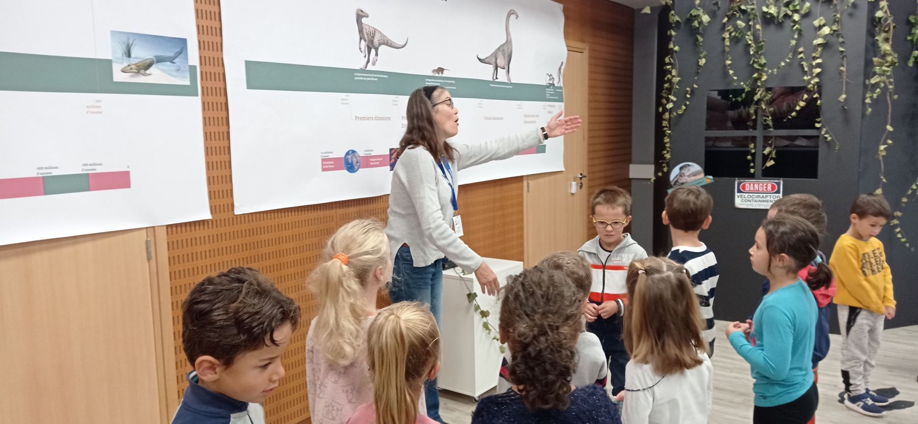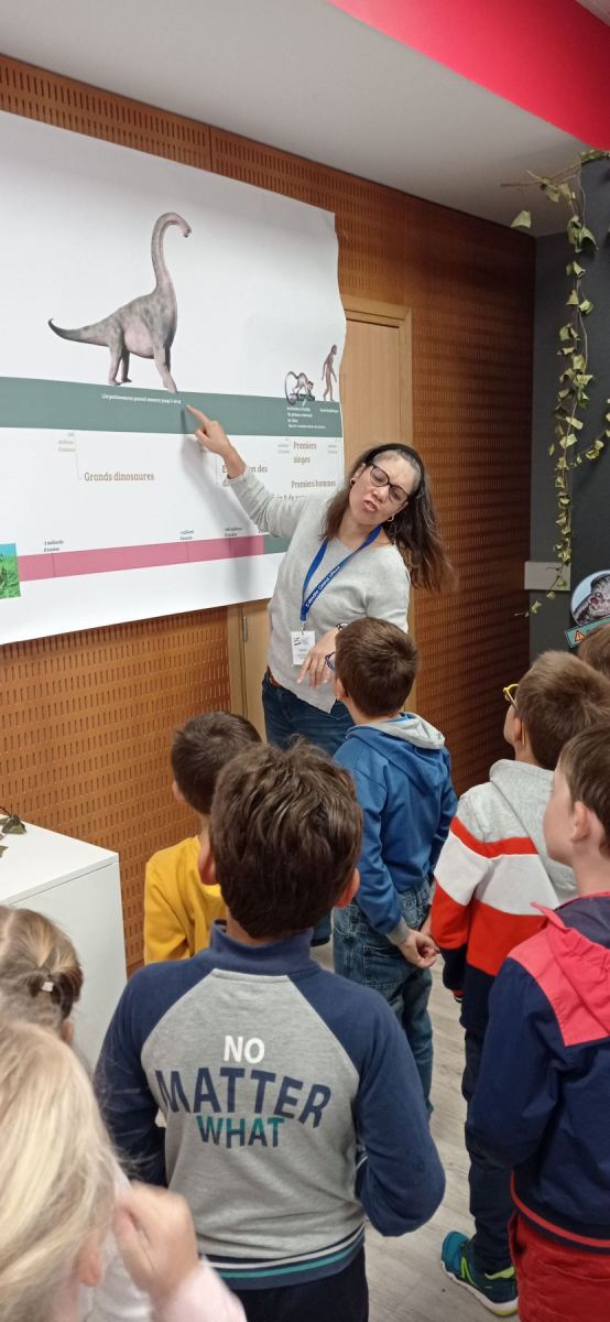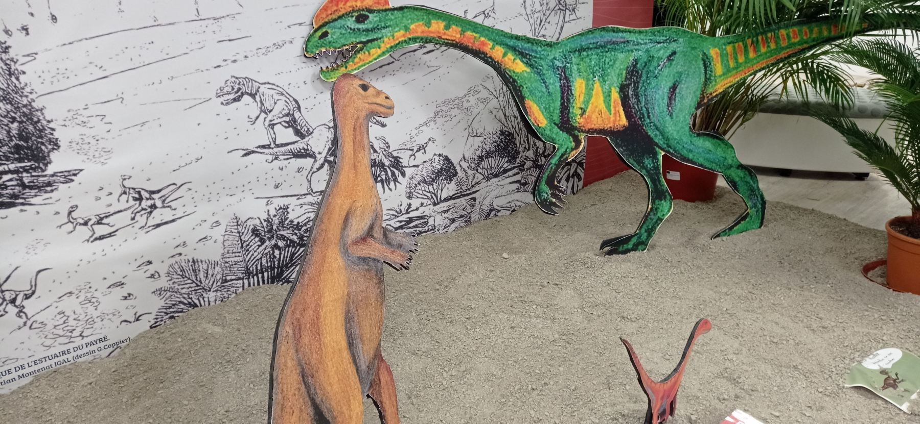 Sandy, l’animatrice, nous attendait pour nous présenter l’exposition sur les dinosaures qui ont vécu à Talmont, il y a des millions d’années, et dont on retrouve encore des traces sur la plage du Veillon!