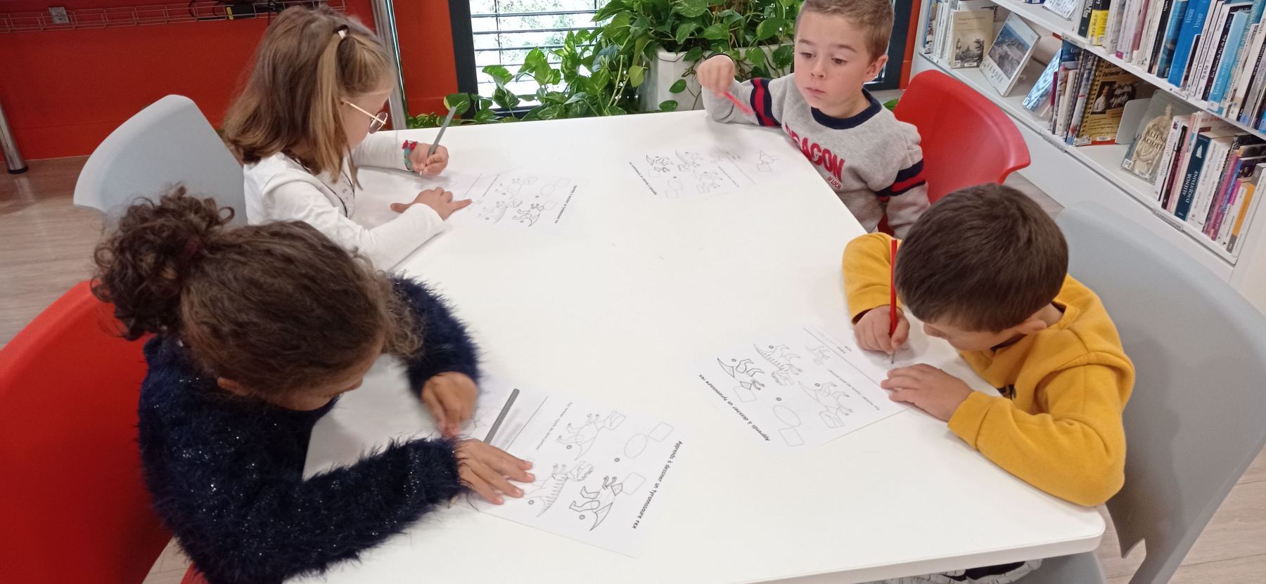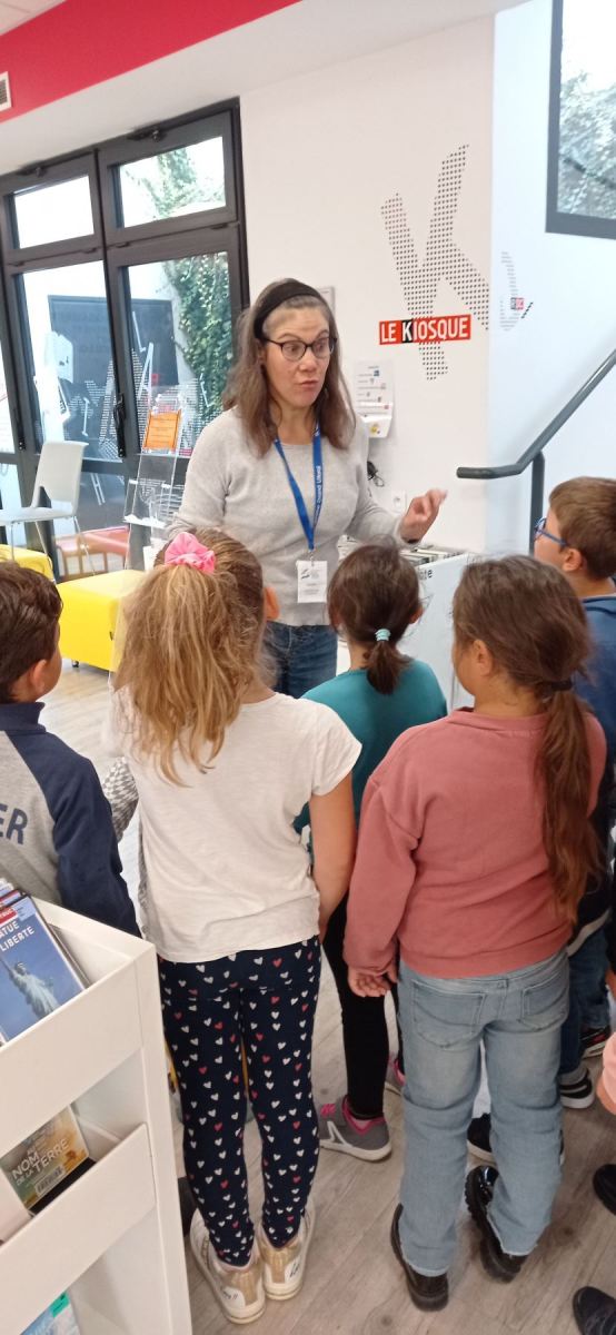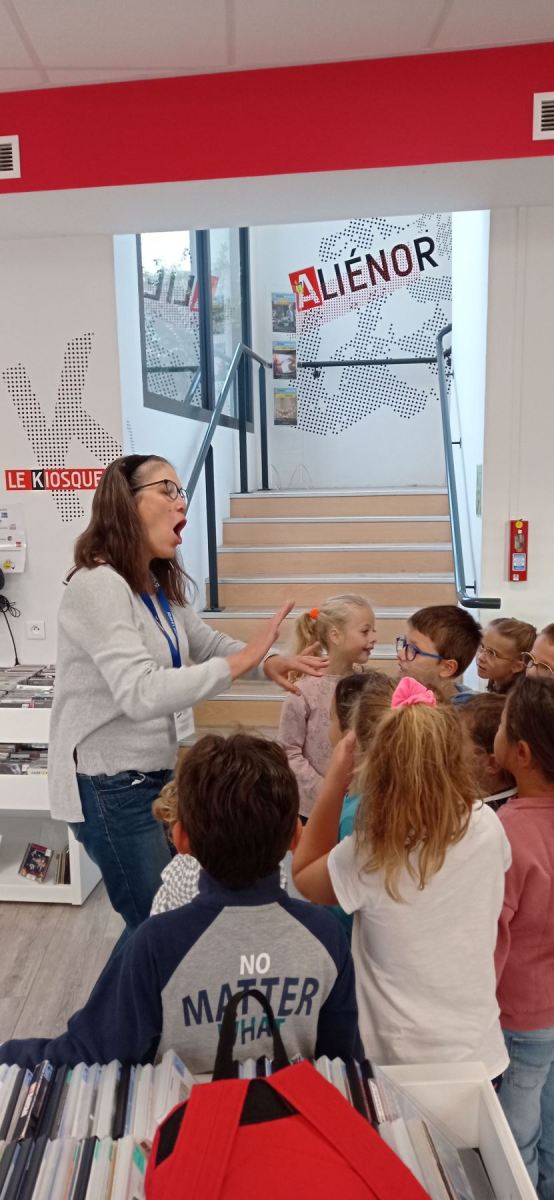 Ce matin, nous sommes partis en car jusqu’à la médiathèque Aliénor.
