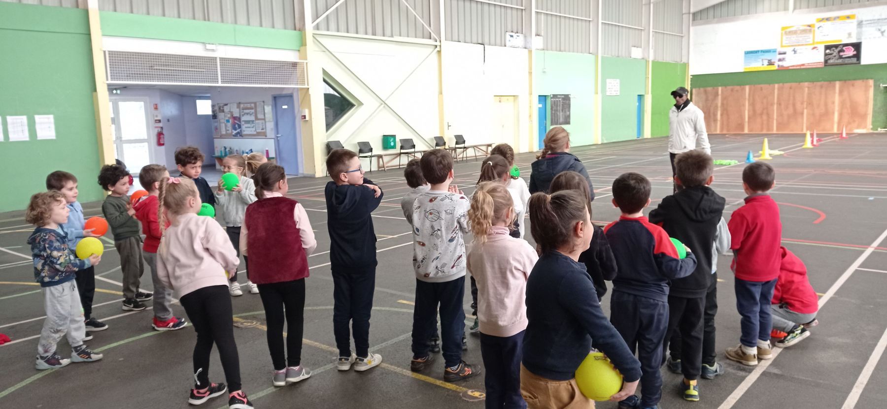 GS/CP: Handball avec JérémyPar Patricia CHOPIN / 4 février 2023 Chaque mardi matin, nous nous rendons à la salle de sports des Minées pour des activités sportives autour du handball. Merci à Jérémy, coach au THAC, qui nous accueille et nous entraîne pour devenir des champions du handball!