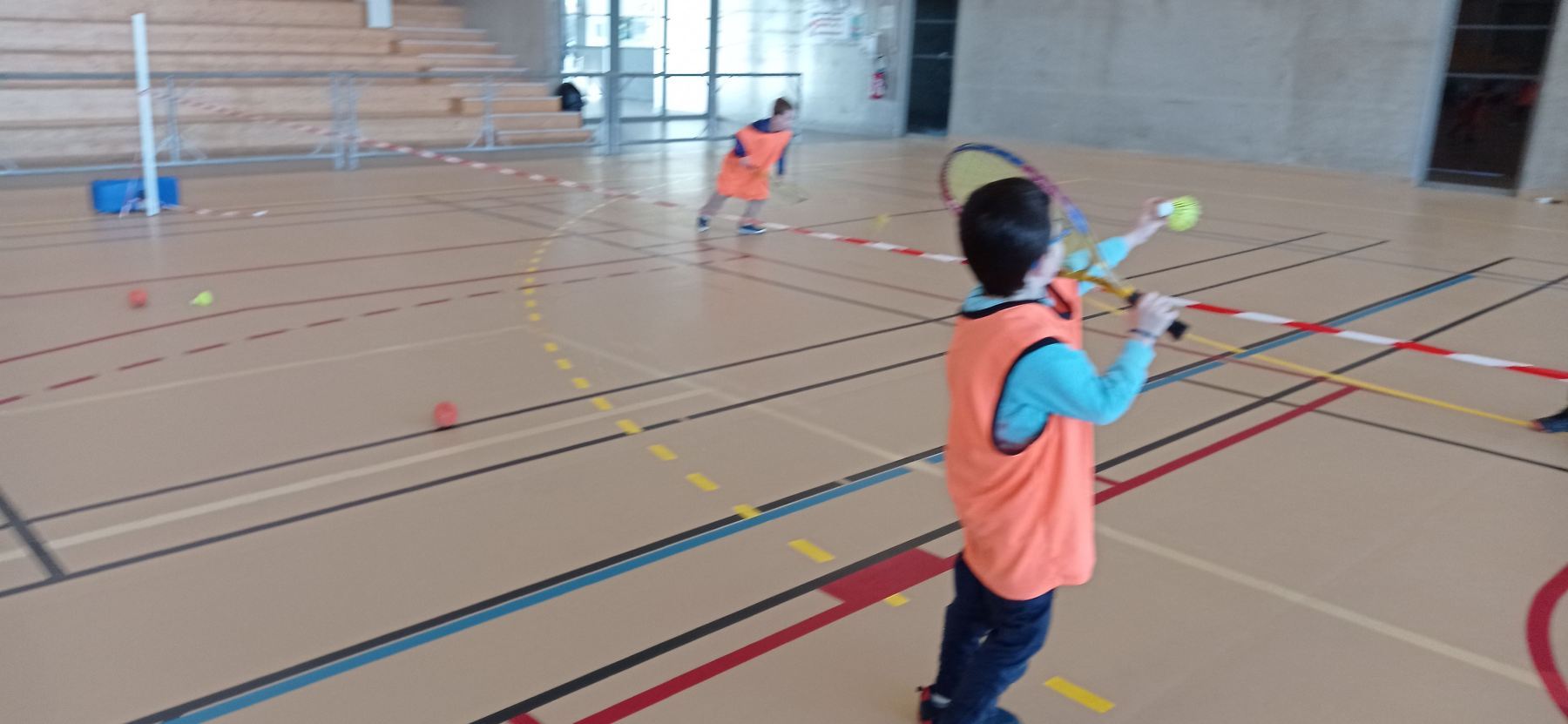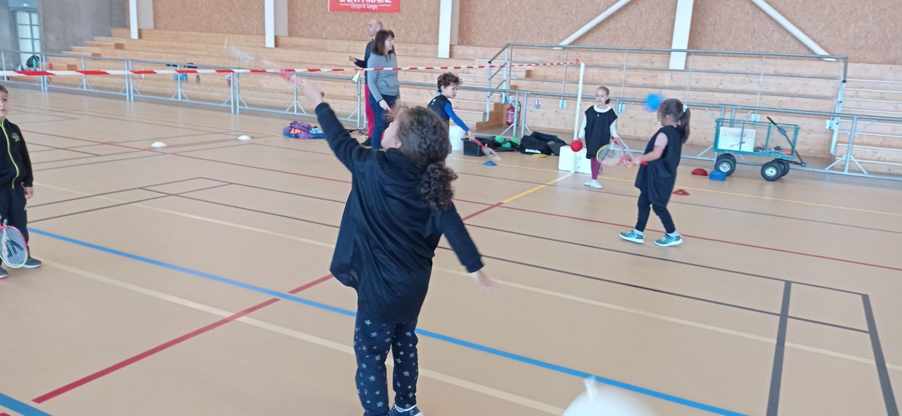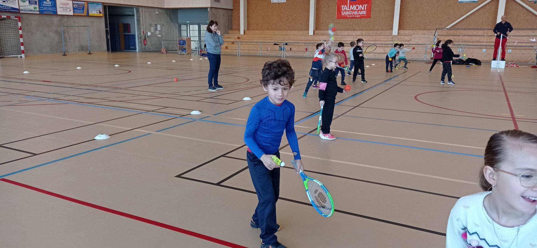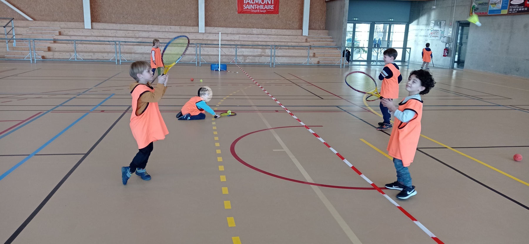Depuis la reprise des vacances de novembre, nous nous initions à différents jeux de raquettes: tennis, badminton…avec des balles, des volants et même des ballons gonflables!