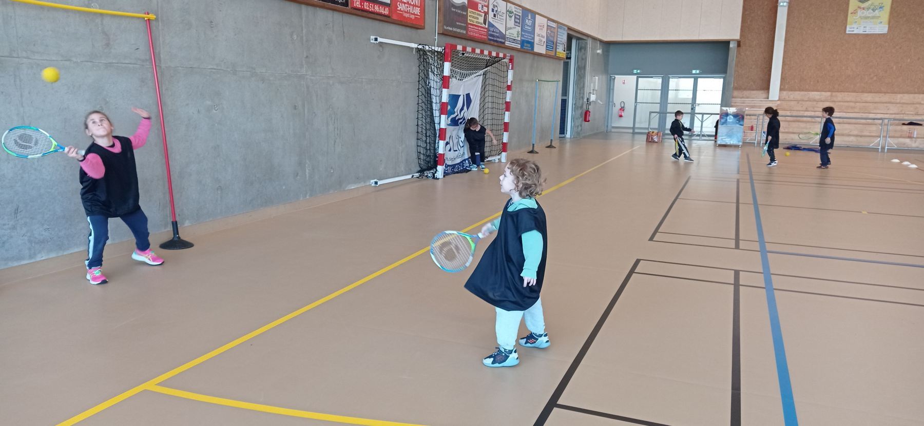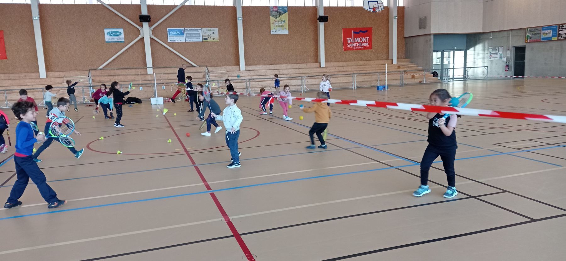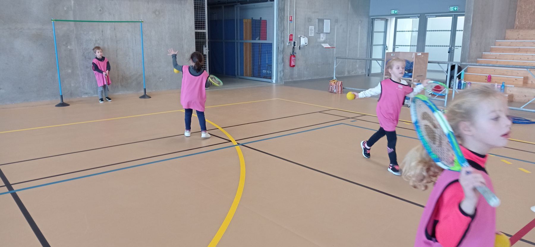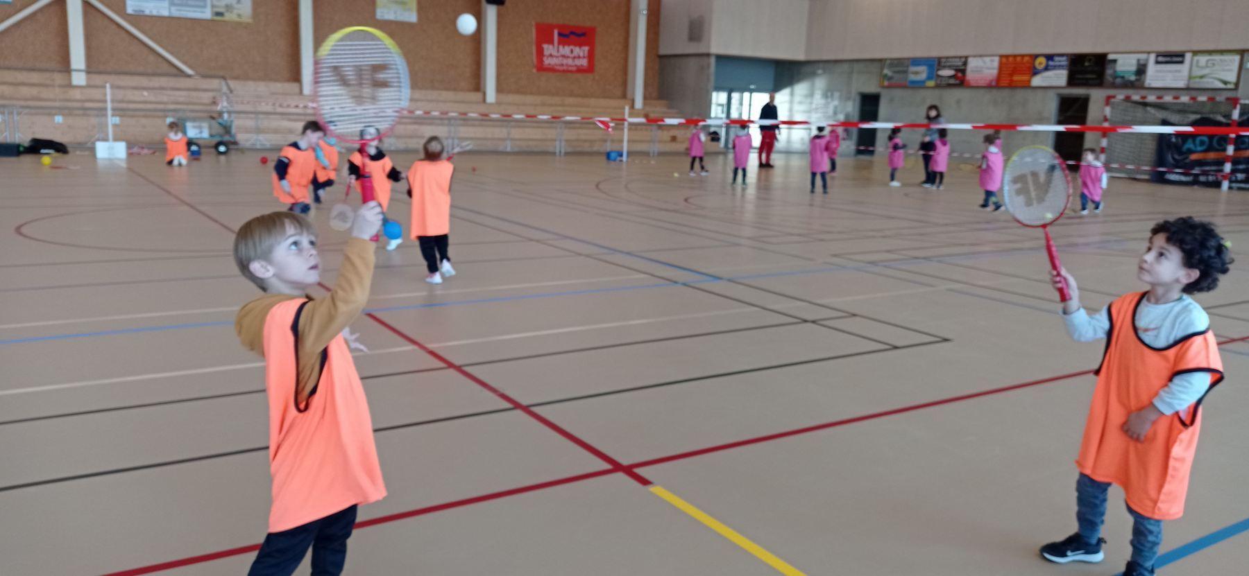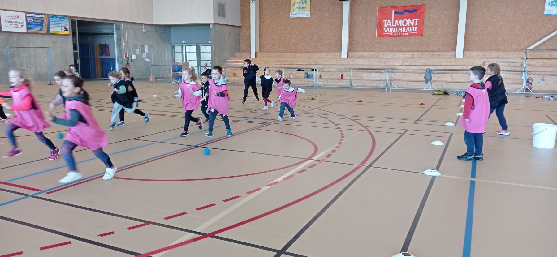 Depuis la reprise des vacances de novembre, nous nous initions à différents jeux de raquettes: tennis, badminton…avec des balles, des volants et même des ballons gonflables!