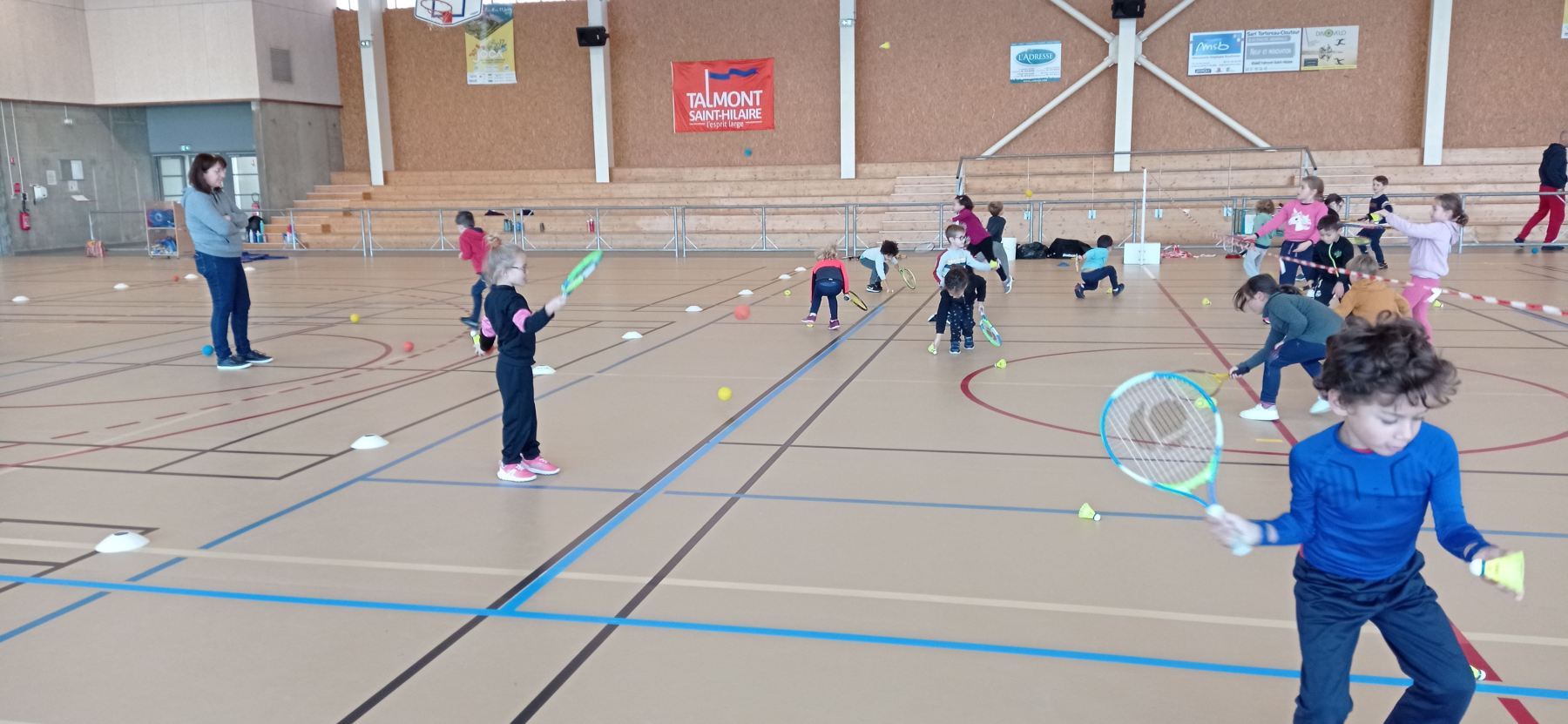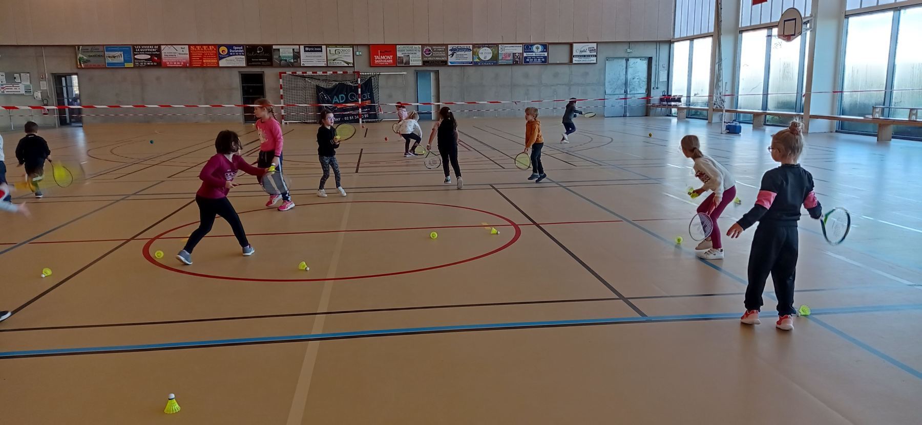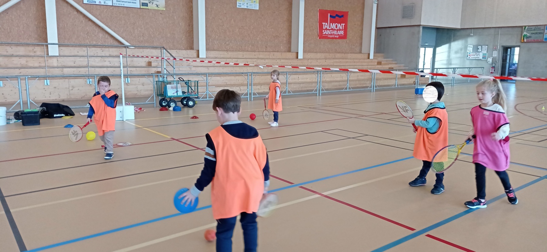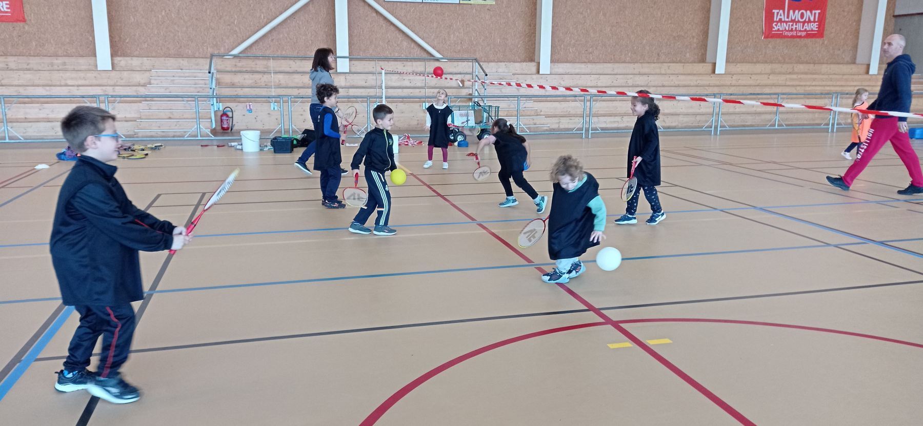 Depuis la reprise des vacances de novembre, nous nous initions à différents jeux de raquettes: tennis, badminton…avec des balles, des volants et même des ballons gonflables!