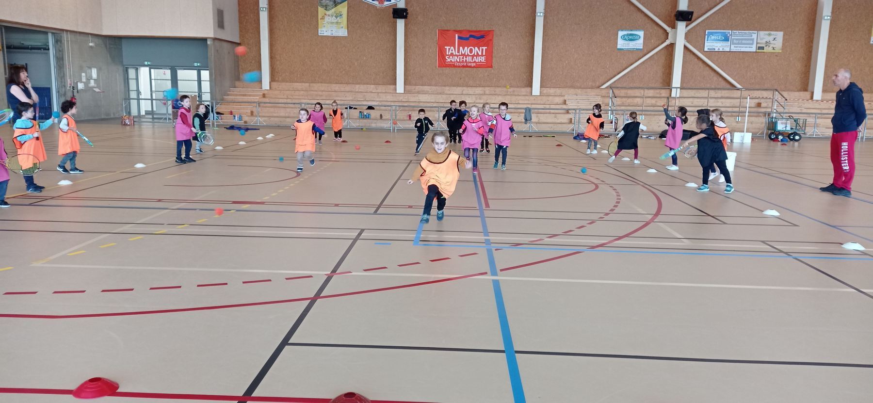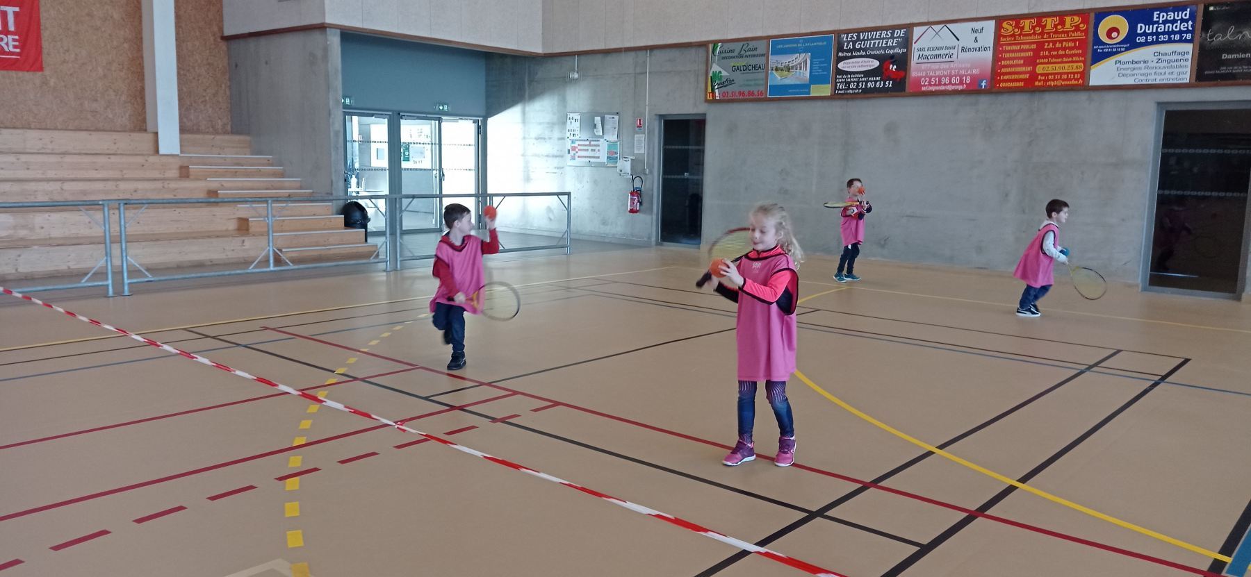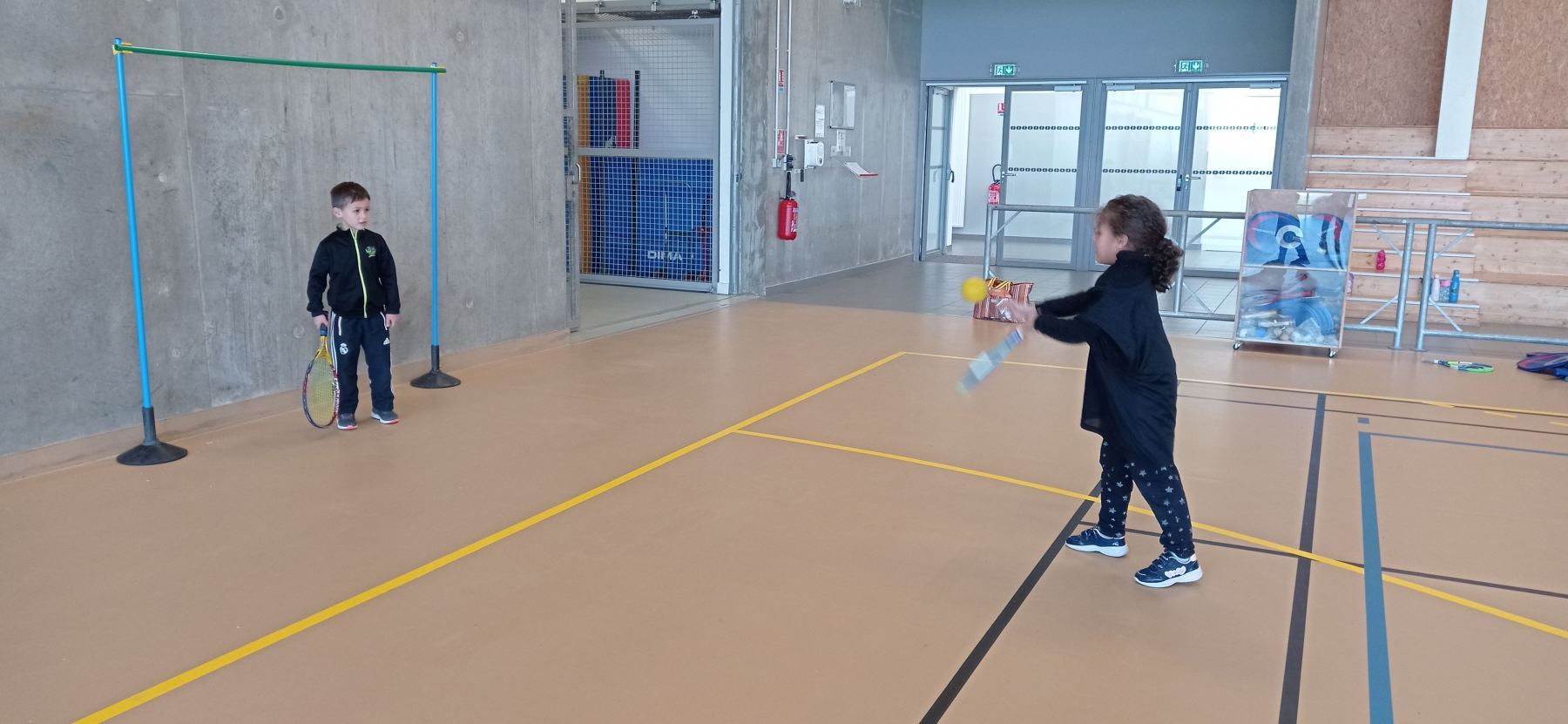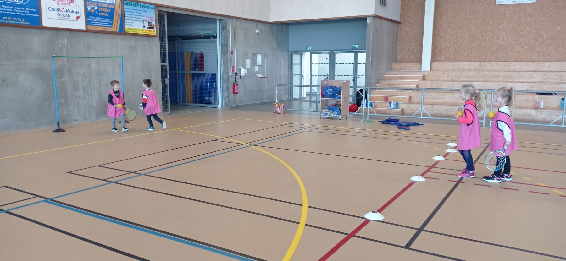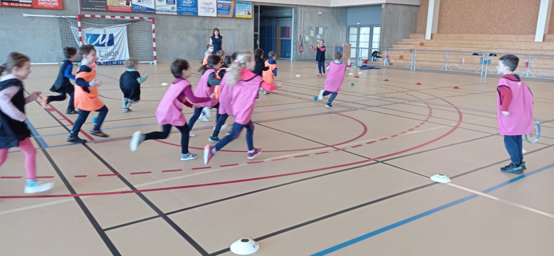 Depuis la reprise des vacances de novembre, nous nous initions à différents jeux de raquettes: tennis, badminton…avec des balles, des volants et même des ballons gonflables!