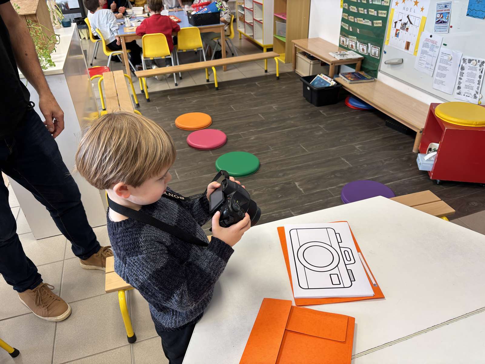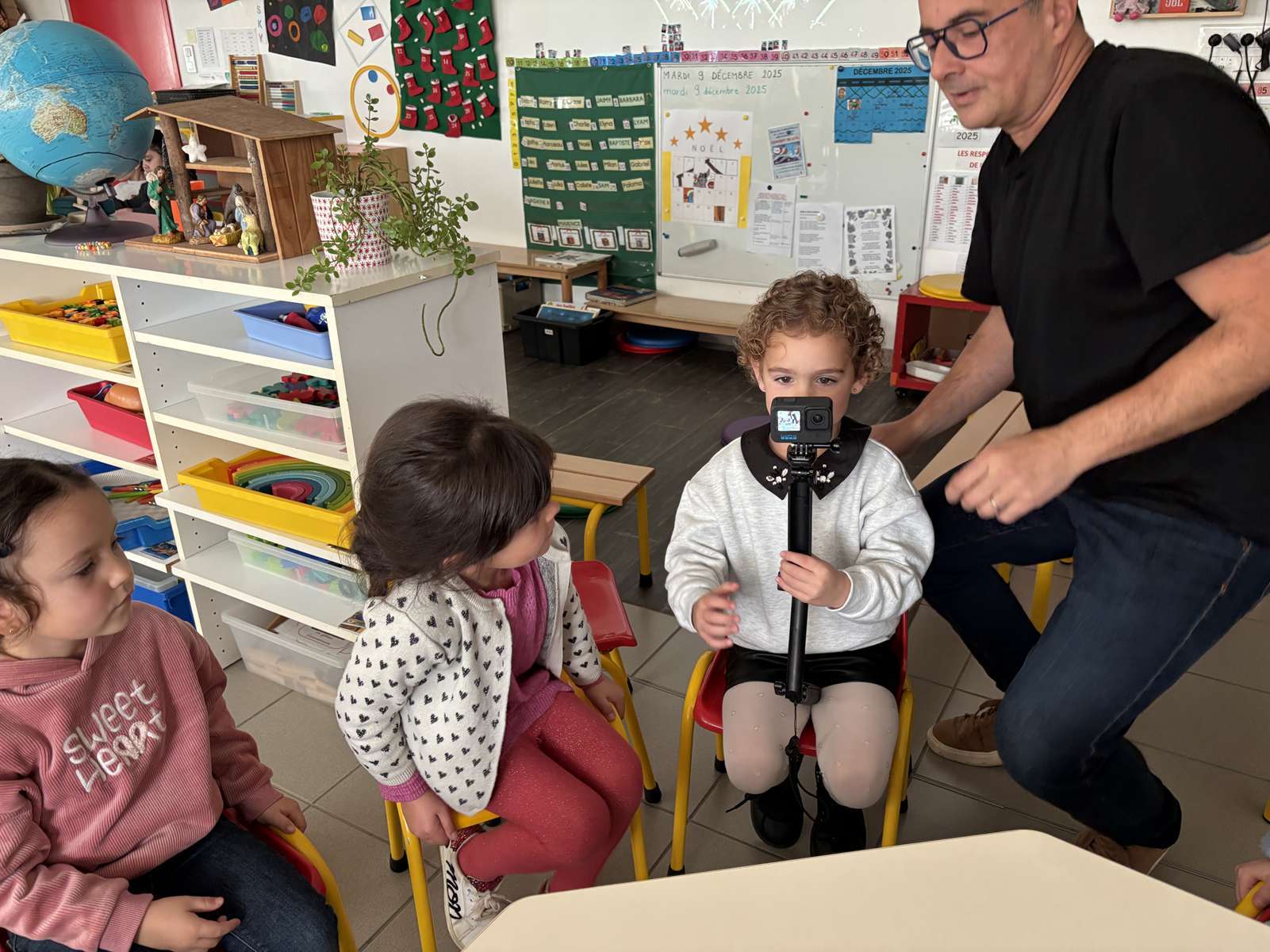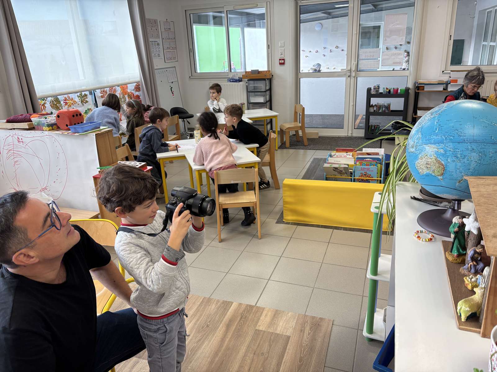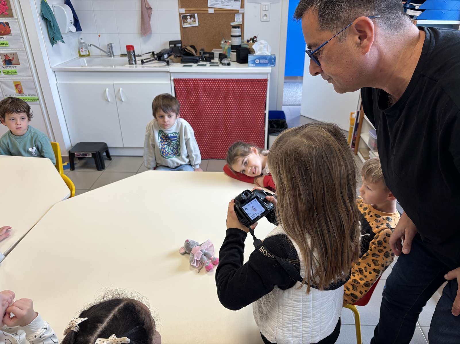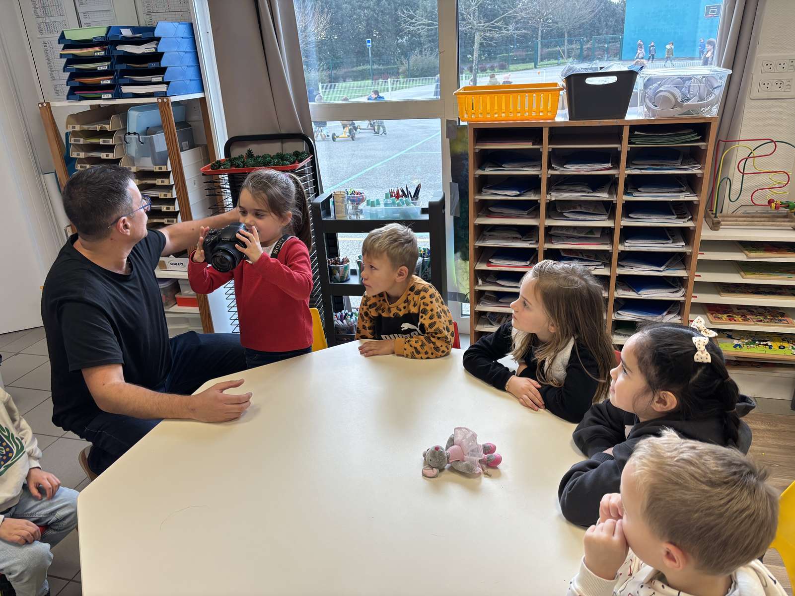 En lien avec notre projet sur l’Art et pour illustrer notre travail sur la photographie, Jean-François Brossier (papy de Romy) est venu nous présenter son métier de photographe. Il est arrivé dans la classe ce matin, le sac chargé de plusieurs appareils photos (polaroïds, numériques, …) , d’une GoPro, d’ un drone et d’énormes zooms. Il nous a expliqué comment utiliser tout ce matériel. Nous avons pu prendre des photos. Nous avons également pris la pause. Il avait aussi apporté de nombreux clichés, fruits de son travail à la mairie des Sables d’Olonne. Nous avons pris beaucoup de plaisir à les regarder. Un grand merci à Jean-François pour cette belle découverte!