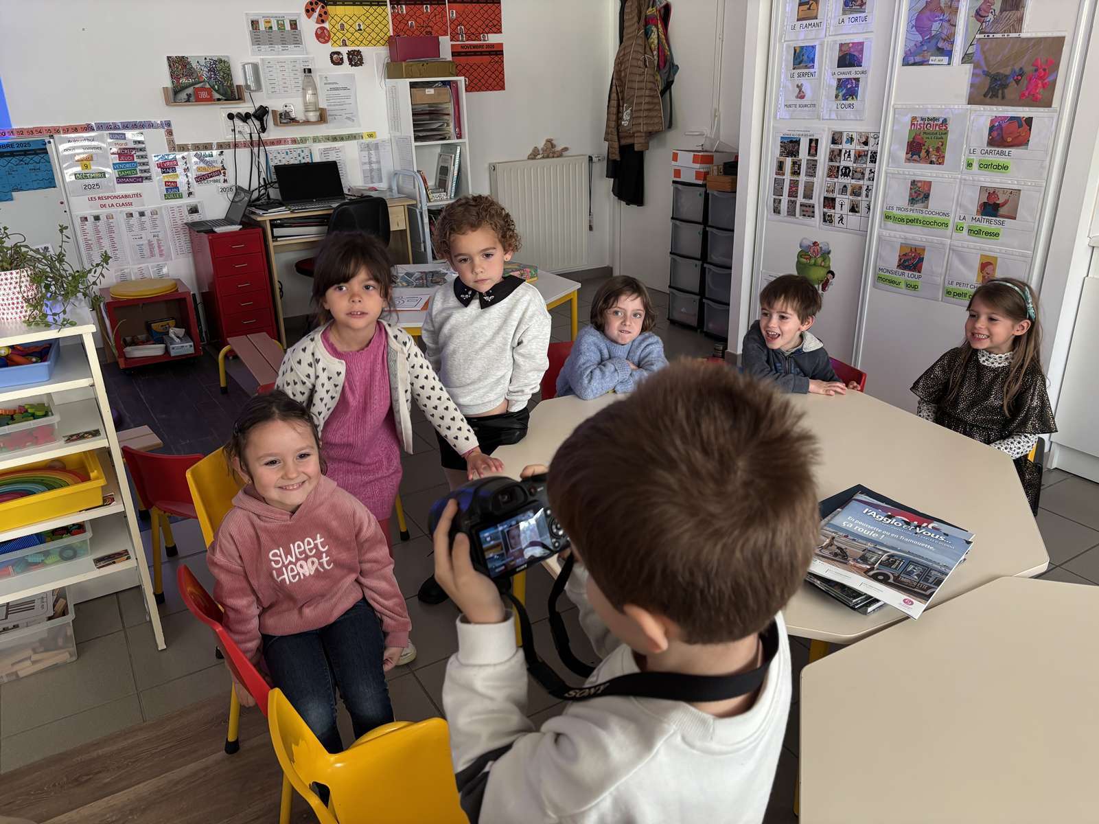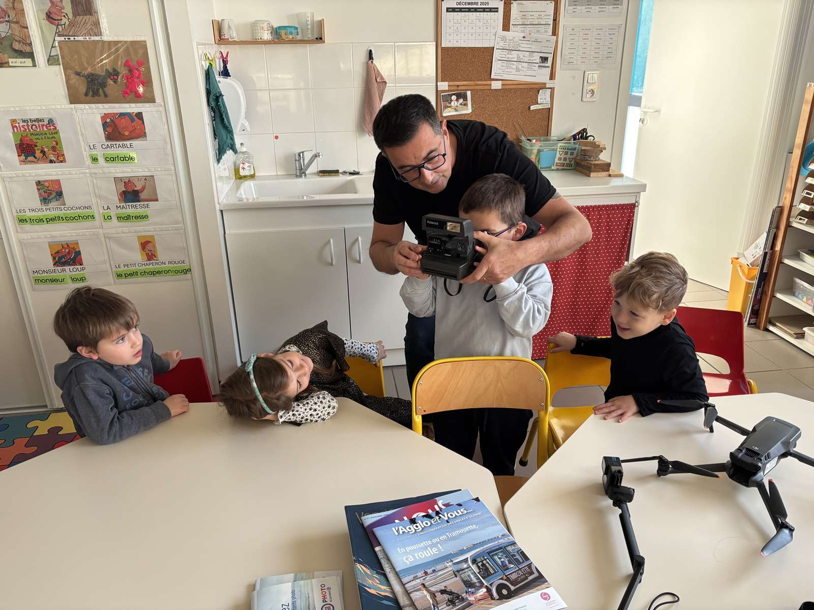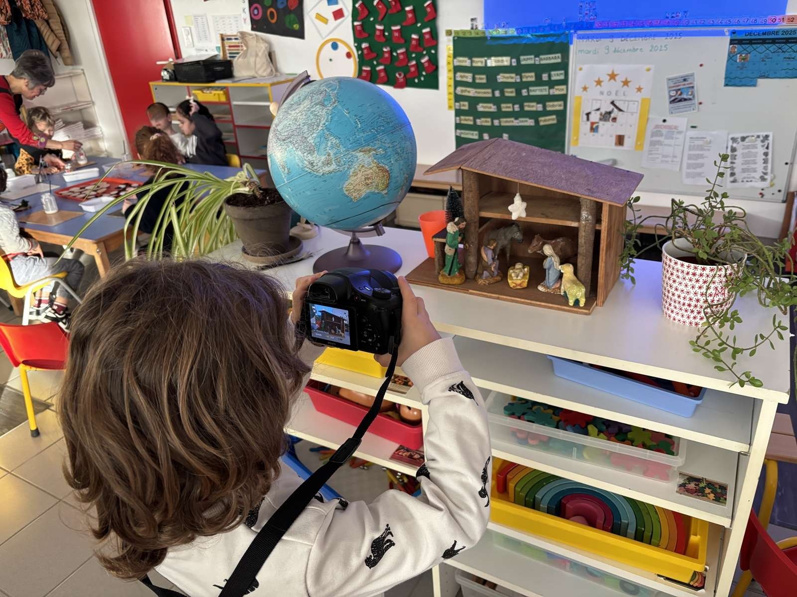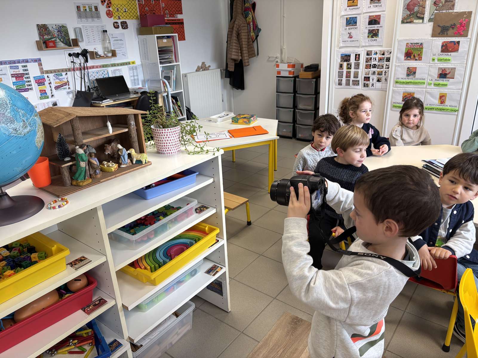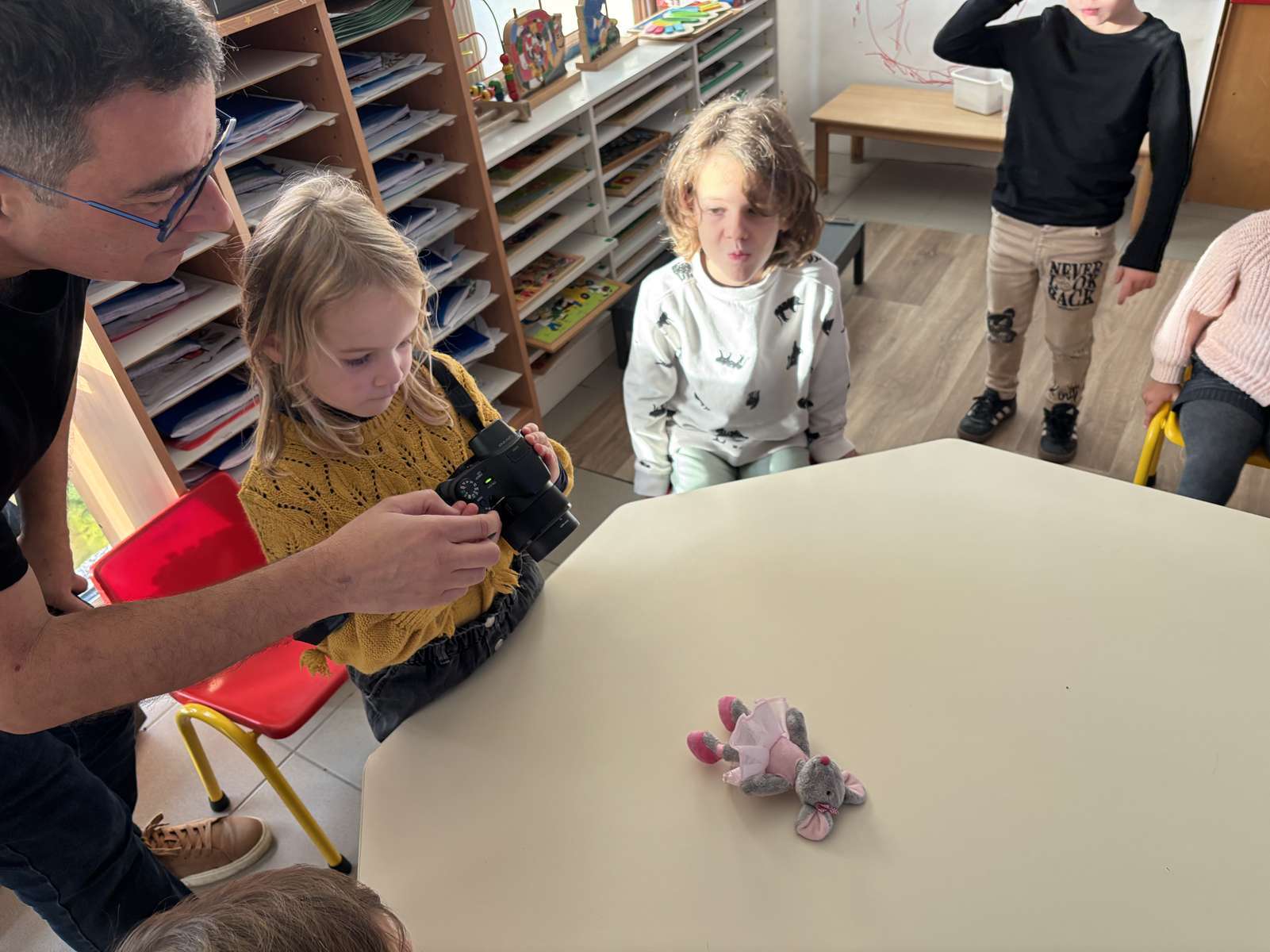 En lien avec notre projet sur l’Art et pour illustrer notre travail sur la photographie, Jean-François Brossier (papy de Romy) est venu nous présenter son métier de photographe. Il est arrivé dans la classe ce matin, le sac chargé de plusieurs appareils photos (polaroïds, numériques, …) , d’une GoPro, d’ un drone et d’énormes zooms. Il nous a expliqué comment utiliser tout ce matériel. Nous avons pu prendre des photos. Nous avons également pris la pause. Il avait aussi apporté de nombreux clichés, fruits de son travail à la mairie des Sables d’Olonne. Nous avons pris beaucoup de plaisir à les regarder. Un grand merci à Jean-François pour cette belle découverte!