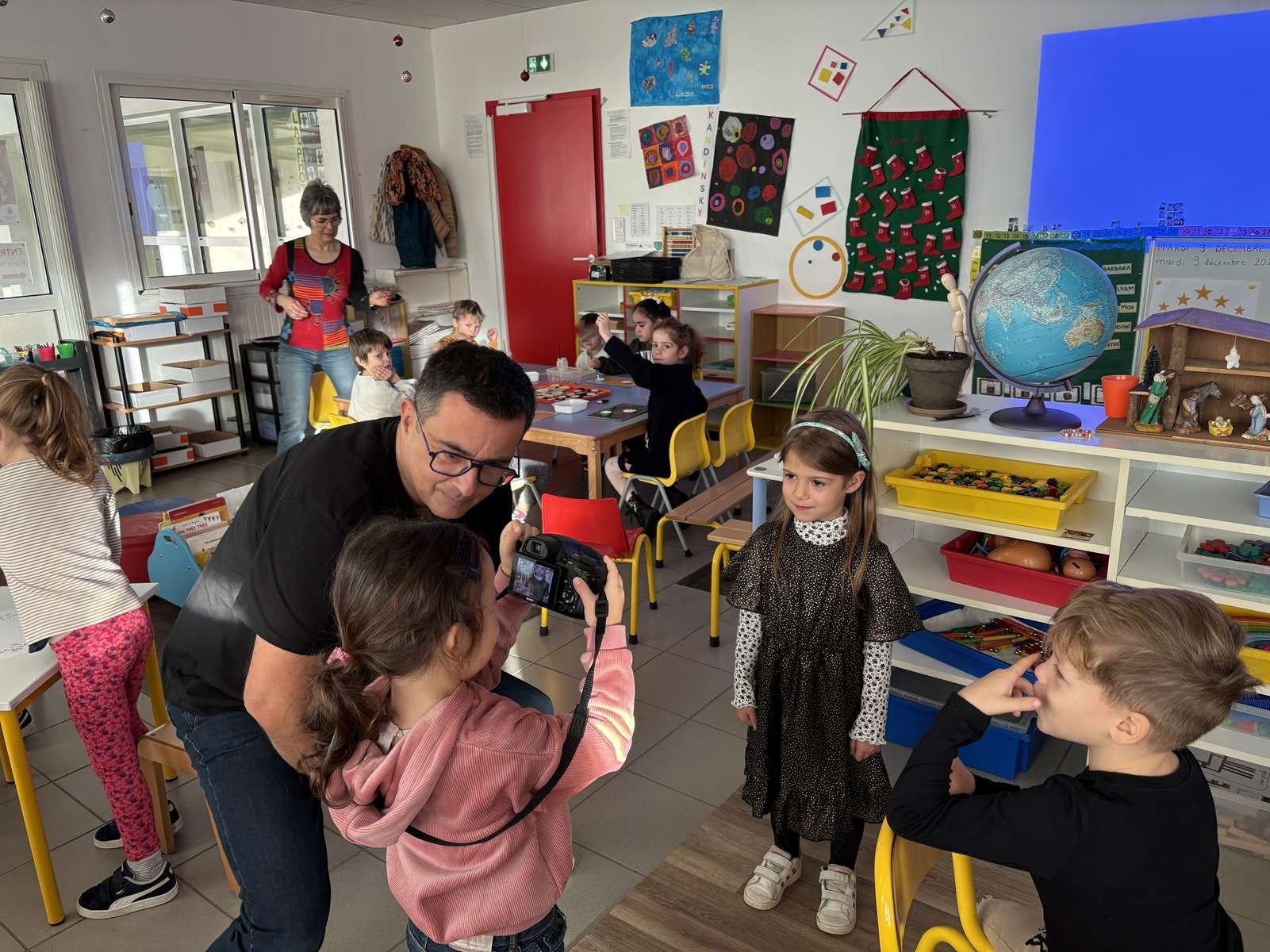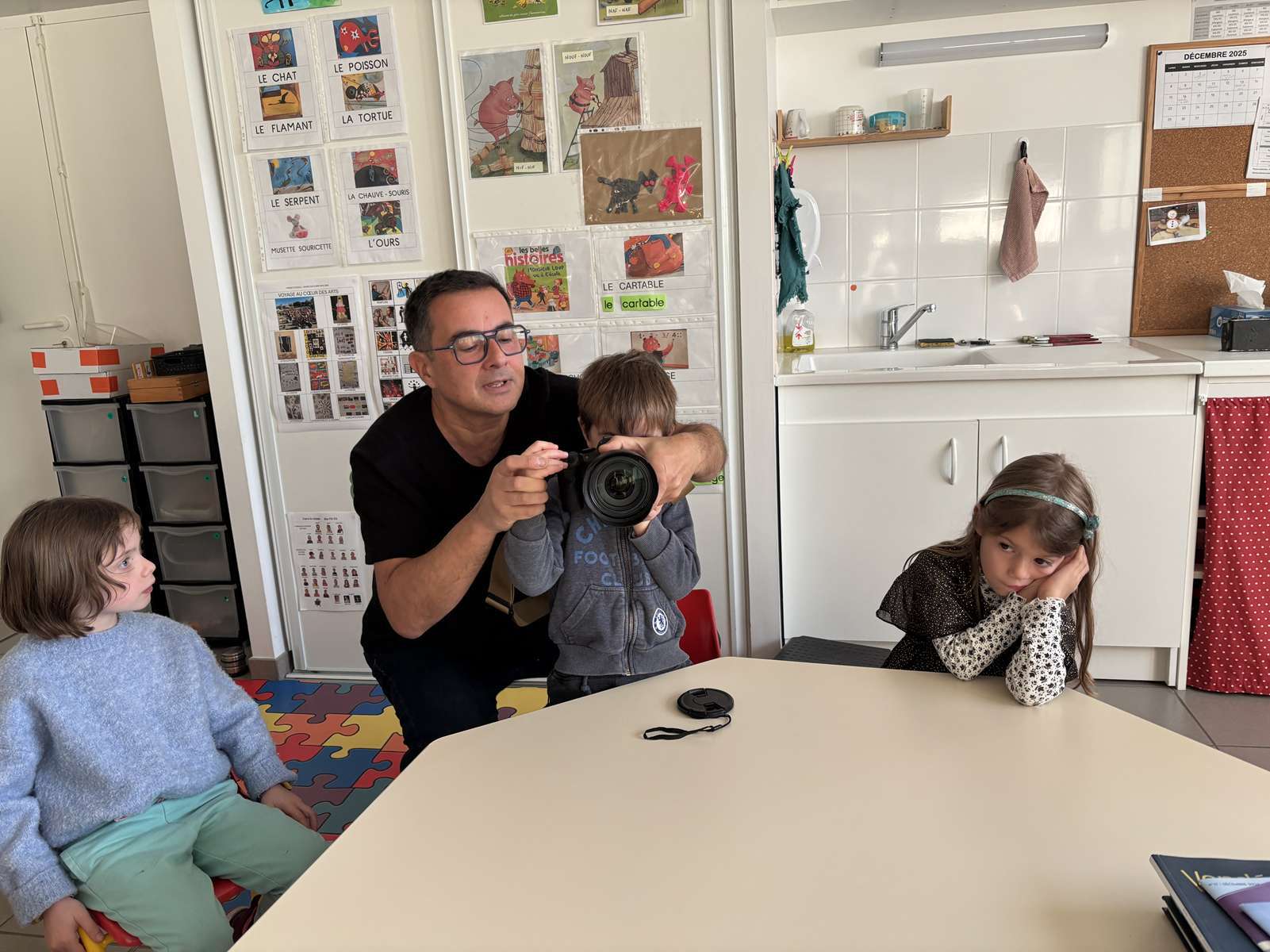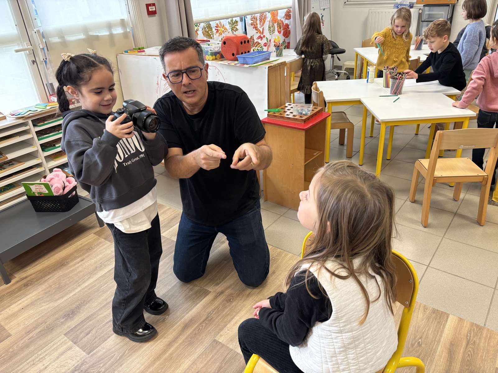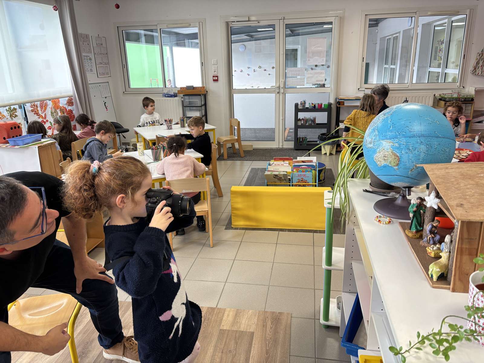 En lien avec notre projet sur l’Art et pour illustrer notre travail sur la photographie, Jean-François Brossier (papy de Romy) est venu nous présenter son métier de photographe. Il est arrivé dans la classe ce matin, le sac chargé de plusieurs appareils photos (polaroïds, numériques, …) , d’une GoPro, d’ un drone et d’énormes zooms. Il nous a expliqué comment utiliser tout ce matériel. Nous avons pu prendre des photos. Nous avons également pris la pause. Il avait aussi apporté de nombreux clichés, fruits de son travail à la mairie des Sables d’Olonne. Nous avons pris beaucoup de plaisir à les regarder. Un grand merci à Jean-François pour cette belle découverte!