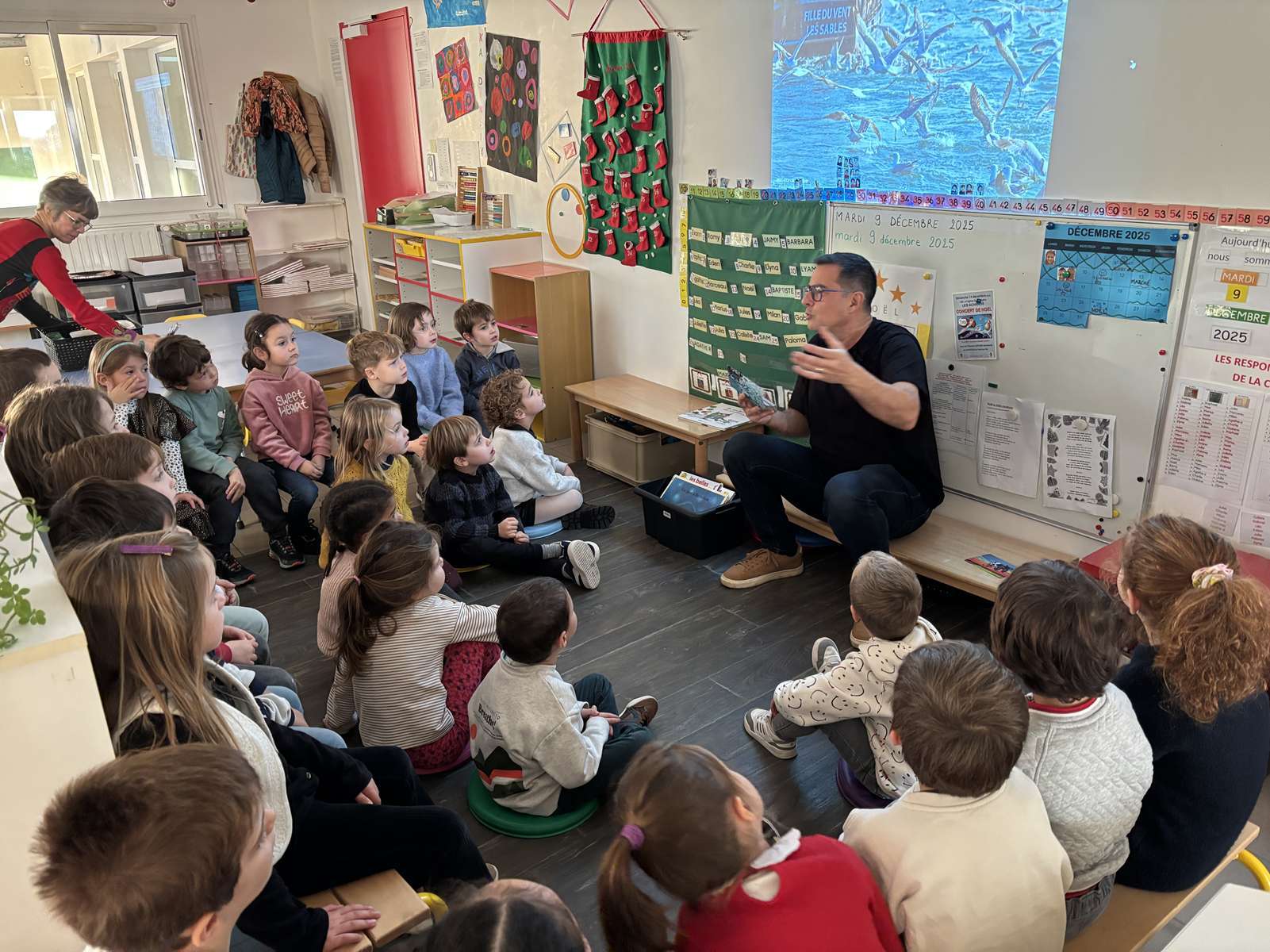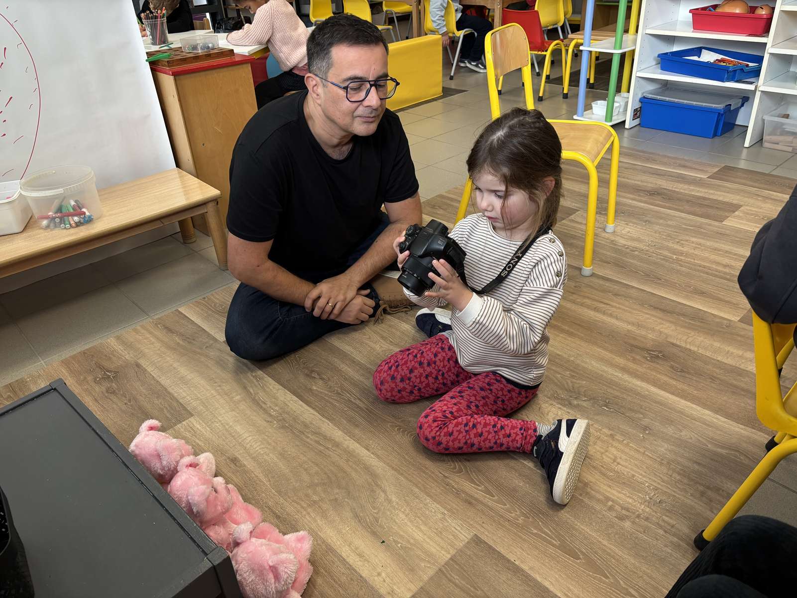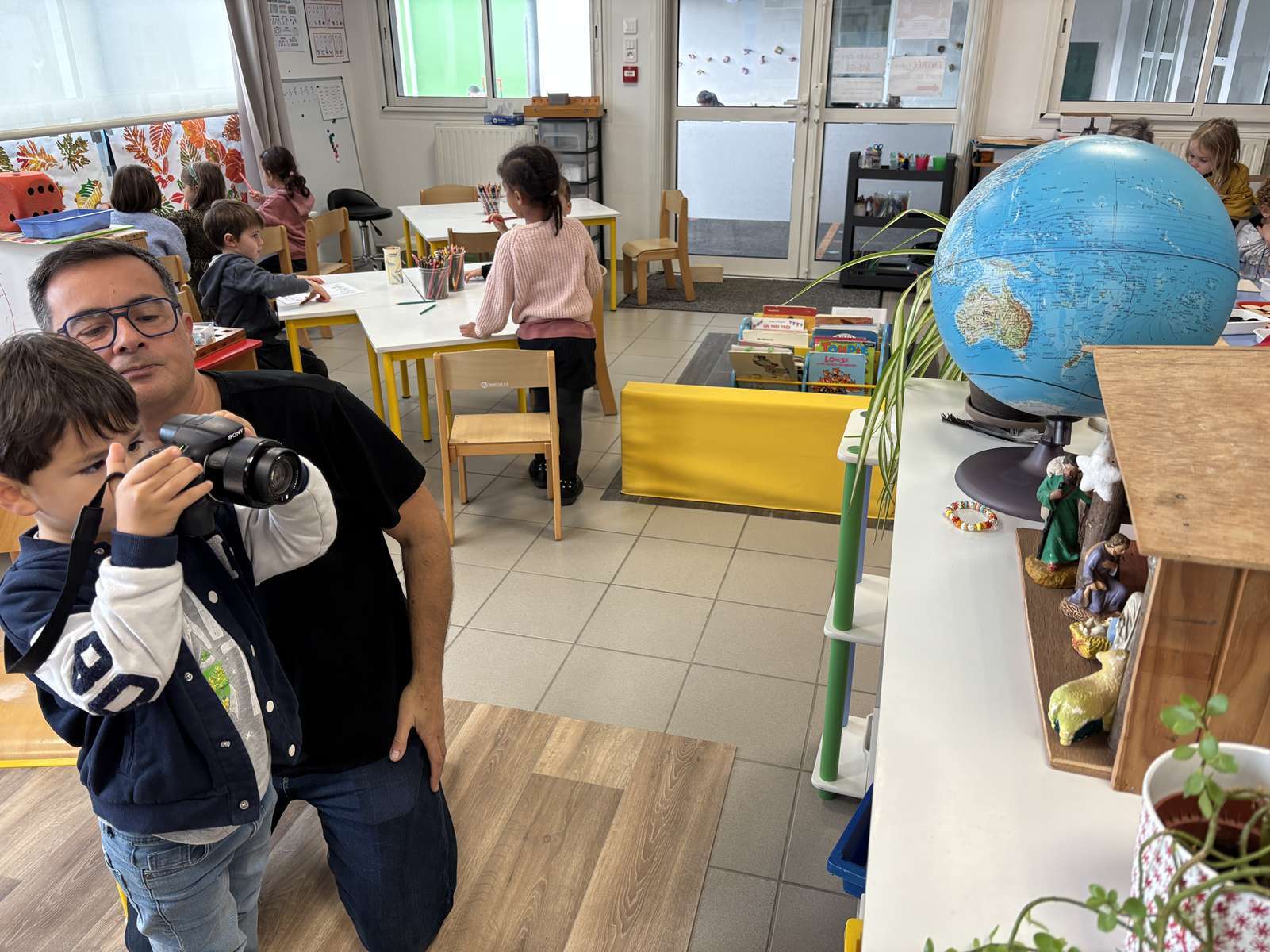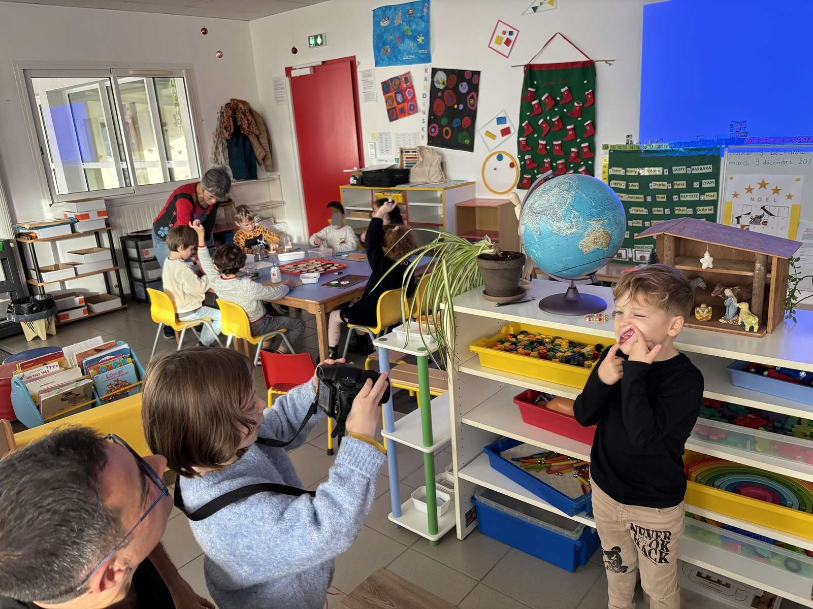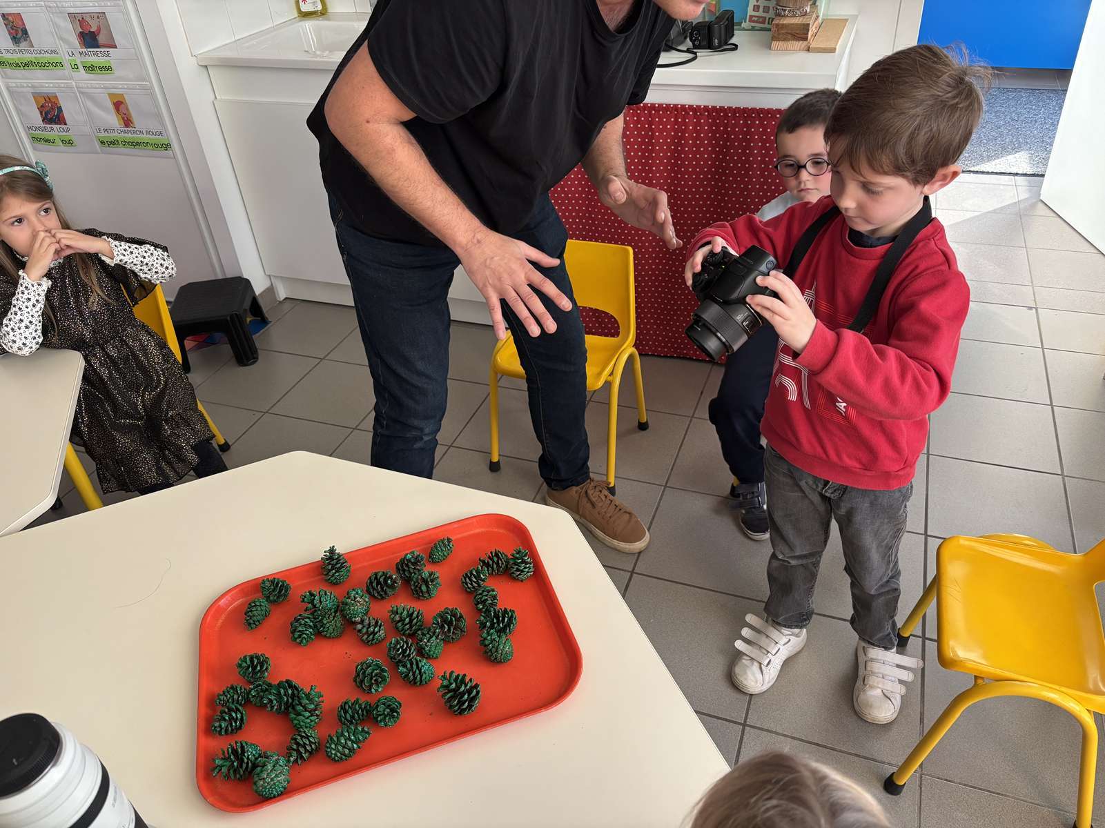 En lien avec notre projet sur l’Art et pour illustrer notre travail sur la photographie, Jean-François Brossier (papy de Romy) est venu nous présenter son métier de photographe. Il est arrivé dans la classe ce matin, le sac chargé de plusieurs appareils photos (polaroïds, numériques, …) , d’une GoPro, d’ un drone et d’énormes zooms. Il nous a expliqué comment utiliser tout ce matériel. Nous avons pu prendre des photos. Nous avons également pris la pause. Il avait aussi apporté de nombreux clichés, fruits de son travail à la mairie des Sables d’Olonne. Nous avons pris beaucoup de plaisir à les regarder. Un grand merci à Jean-François pour cette belle découverte!