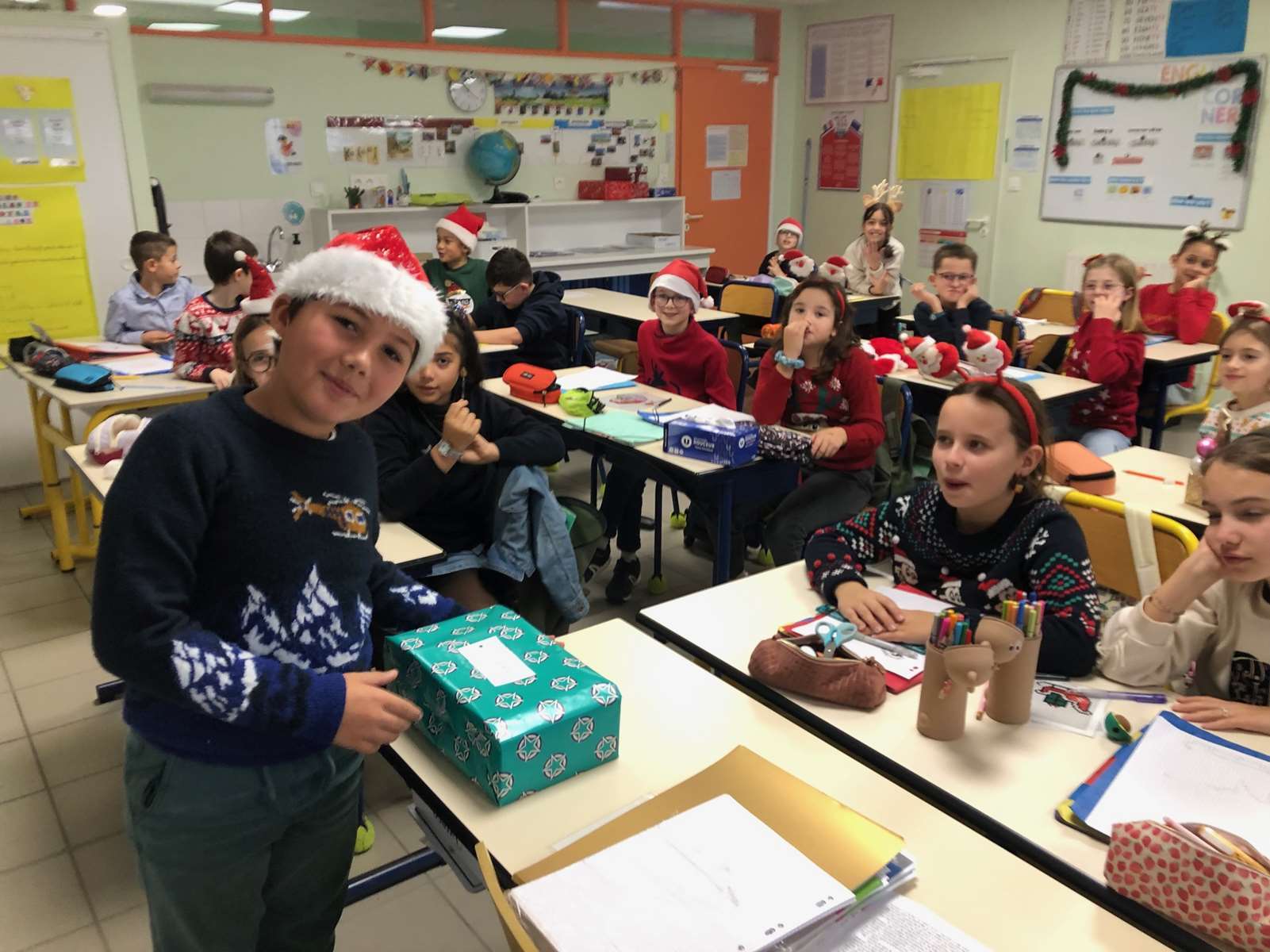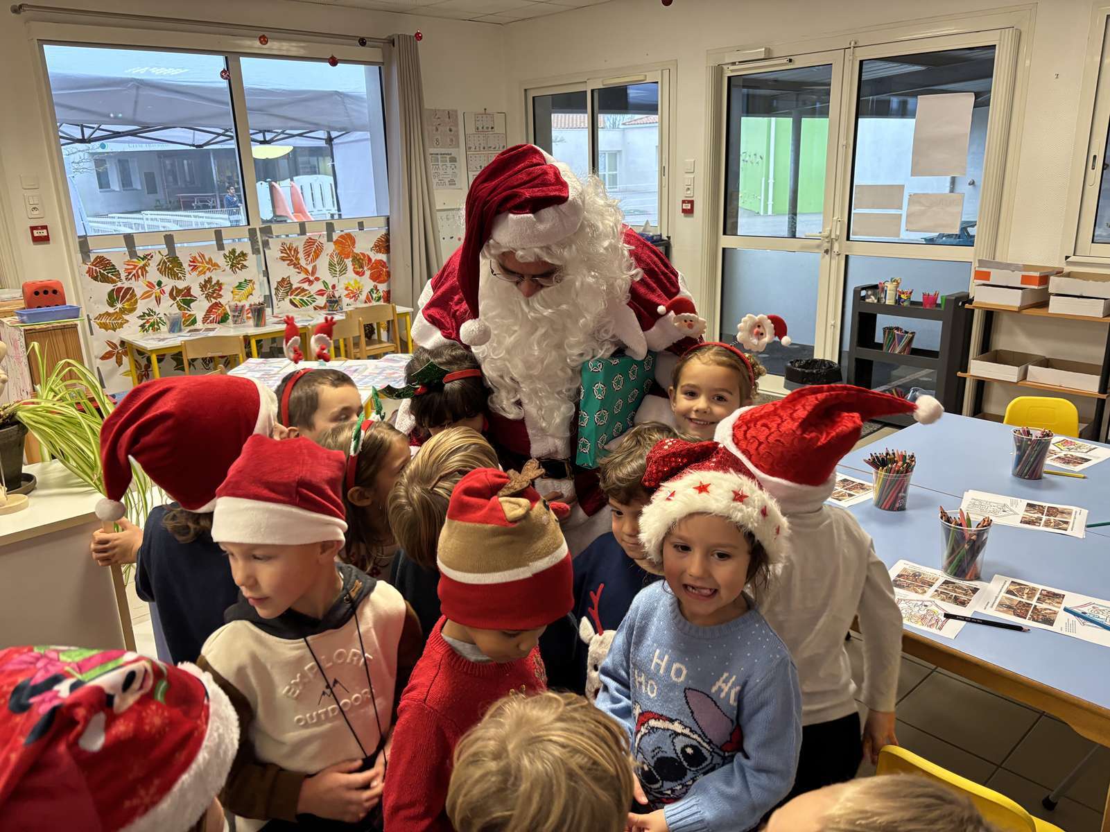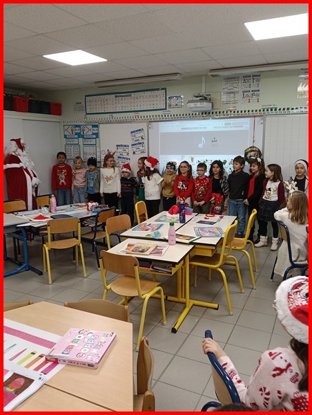 En tout début de matinée, le Père Noël a rendu visite à chacune des 10 classes pour offrir un livre à chaque enfant.