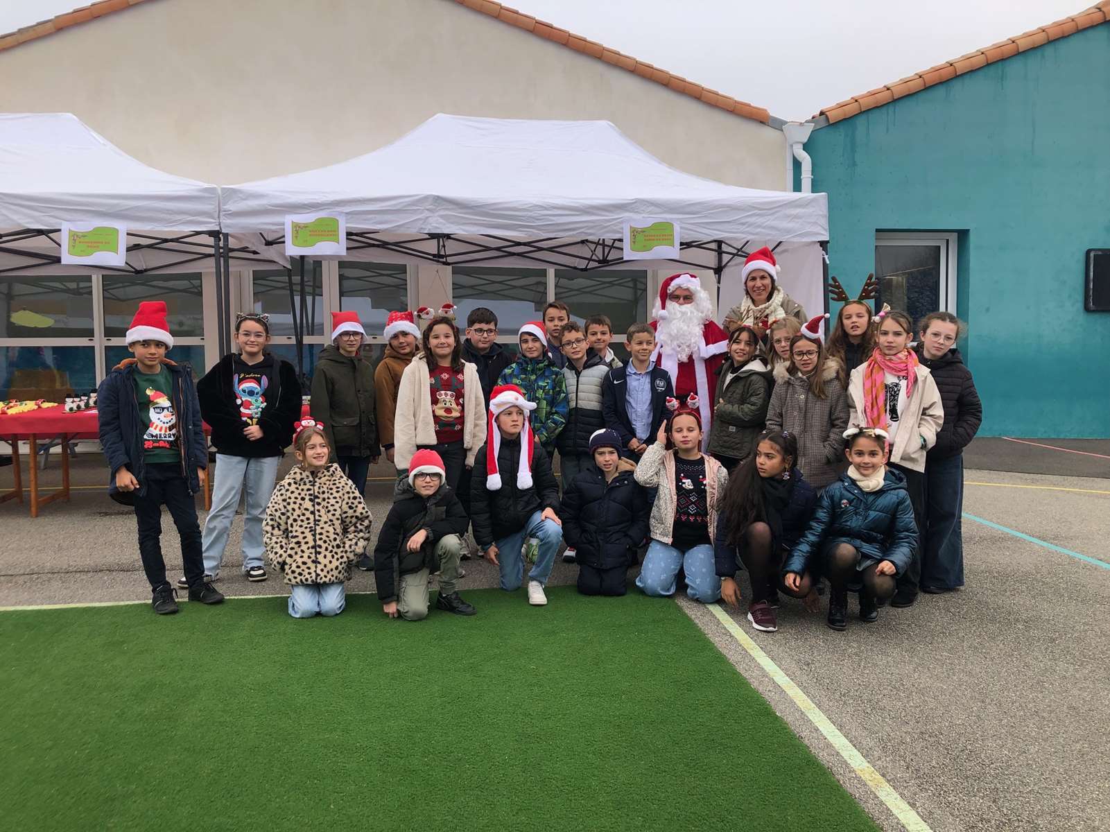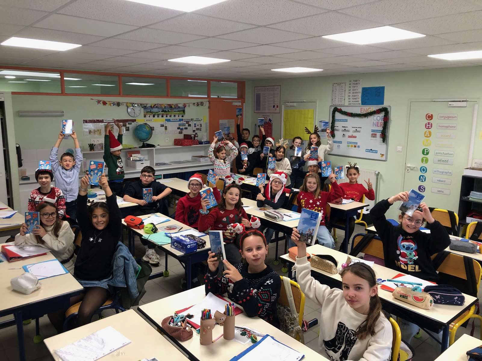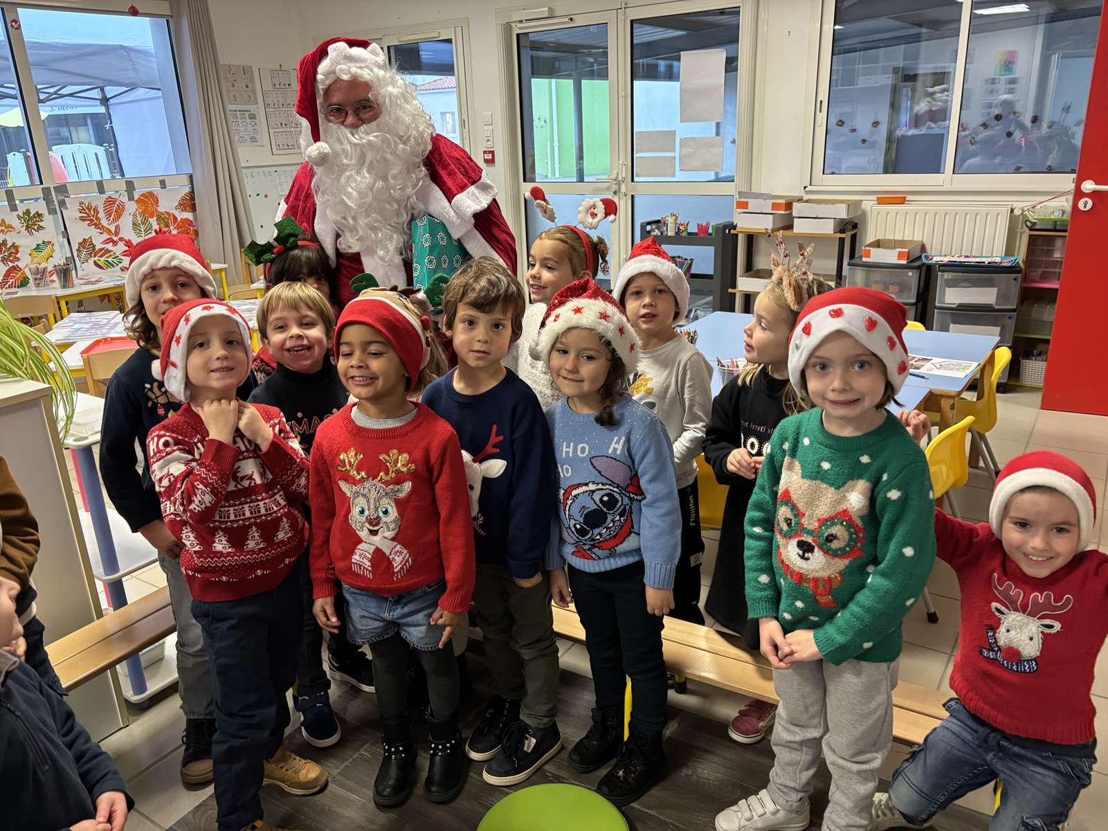 En tout début de matinée, le Père Noël a rendu visite à chacune des 10 classes pour offrir un livre à chaque enfant.