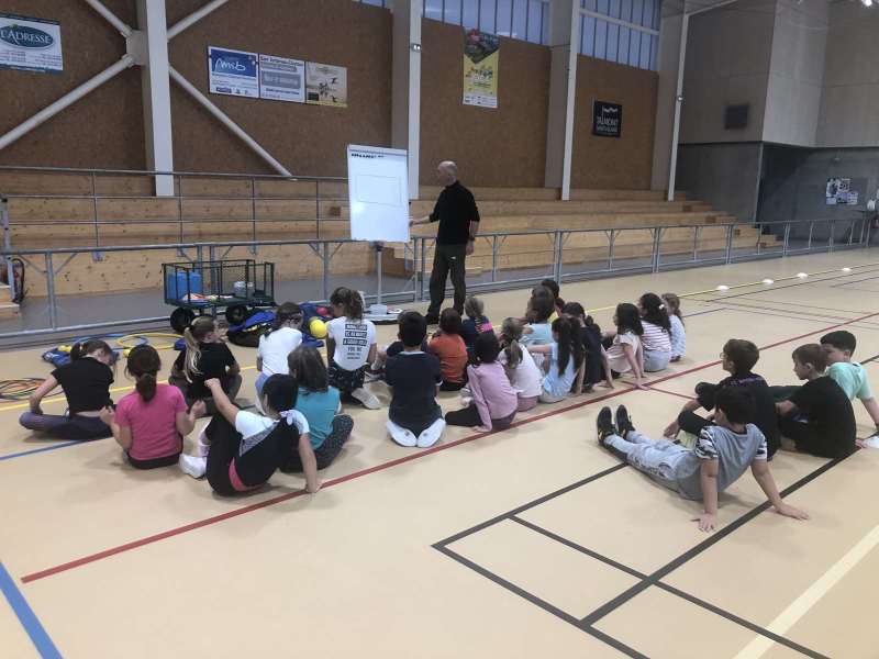 A chaque séance nous découvrons deux ou trois jeux comme la balle au capitaine ou le jeu du voleur. On adore le sport avec Guillaume.