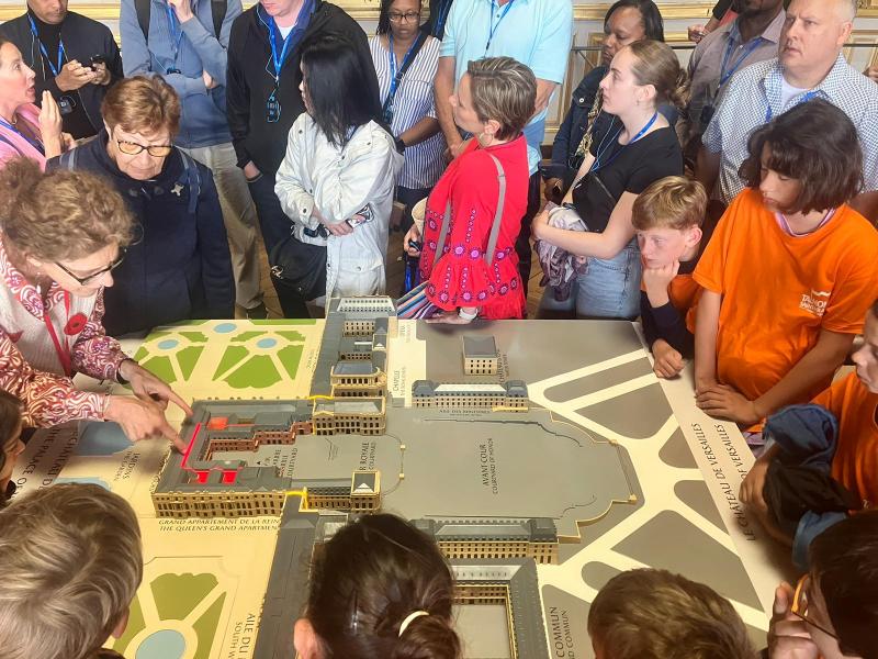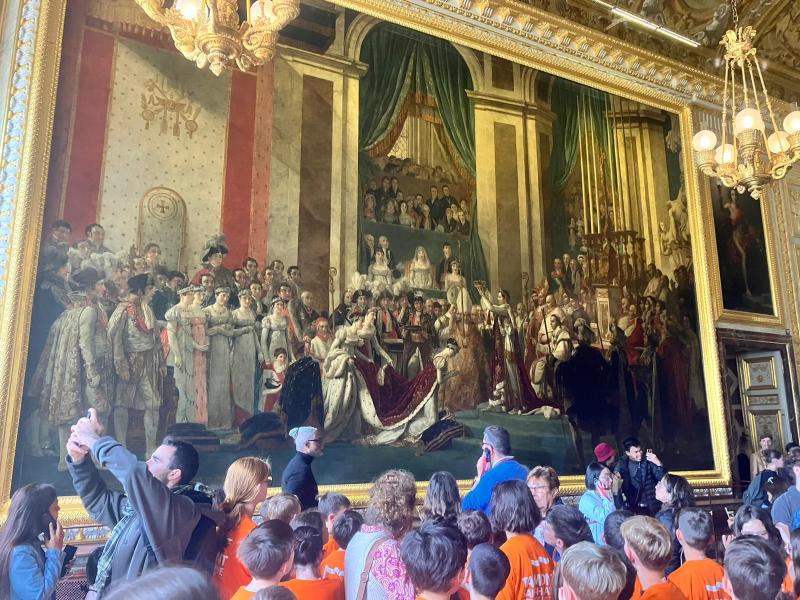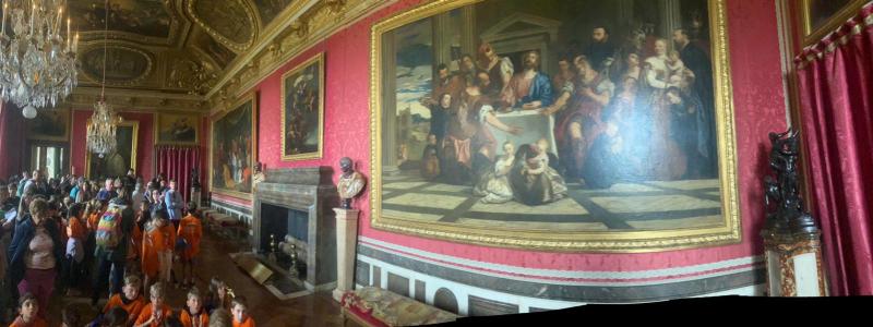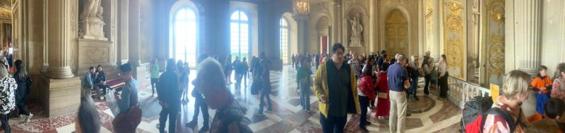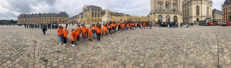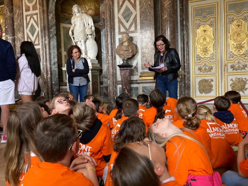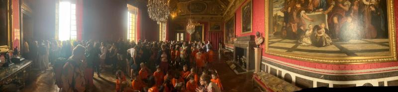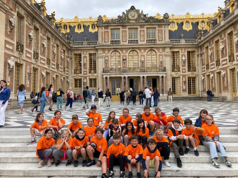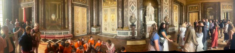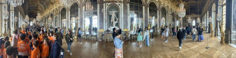 Le dernier jour, nous quittons le centre à 9h et prenons la direction de Versailles. Nos guides nous y attendent pour la visite du château. Nous sommes tout d’abord impressionnés par sa taille et ses dorures. Ensuite, nous partons à la découverte de la vie quotidienne au temps du roi Louis XIV. Nous passons dans les différentes salles du château : le cabinet du roi, la chambre de la reine, la galerie des glaces tout en observant les peintures, les portraits et les emblèmes. Nous comprenons l’importance de la mythologie dans la vie du roi soleil.