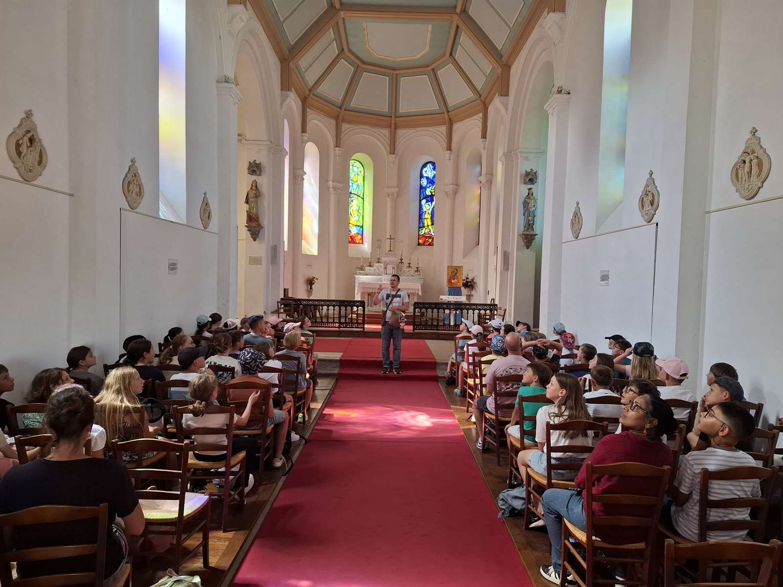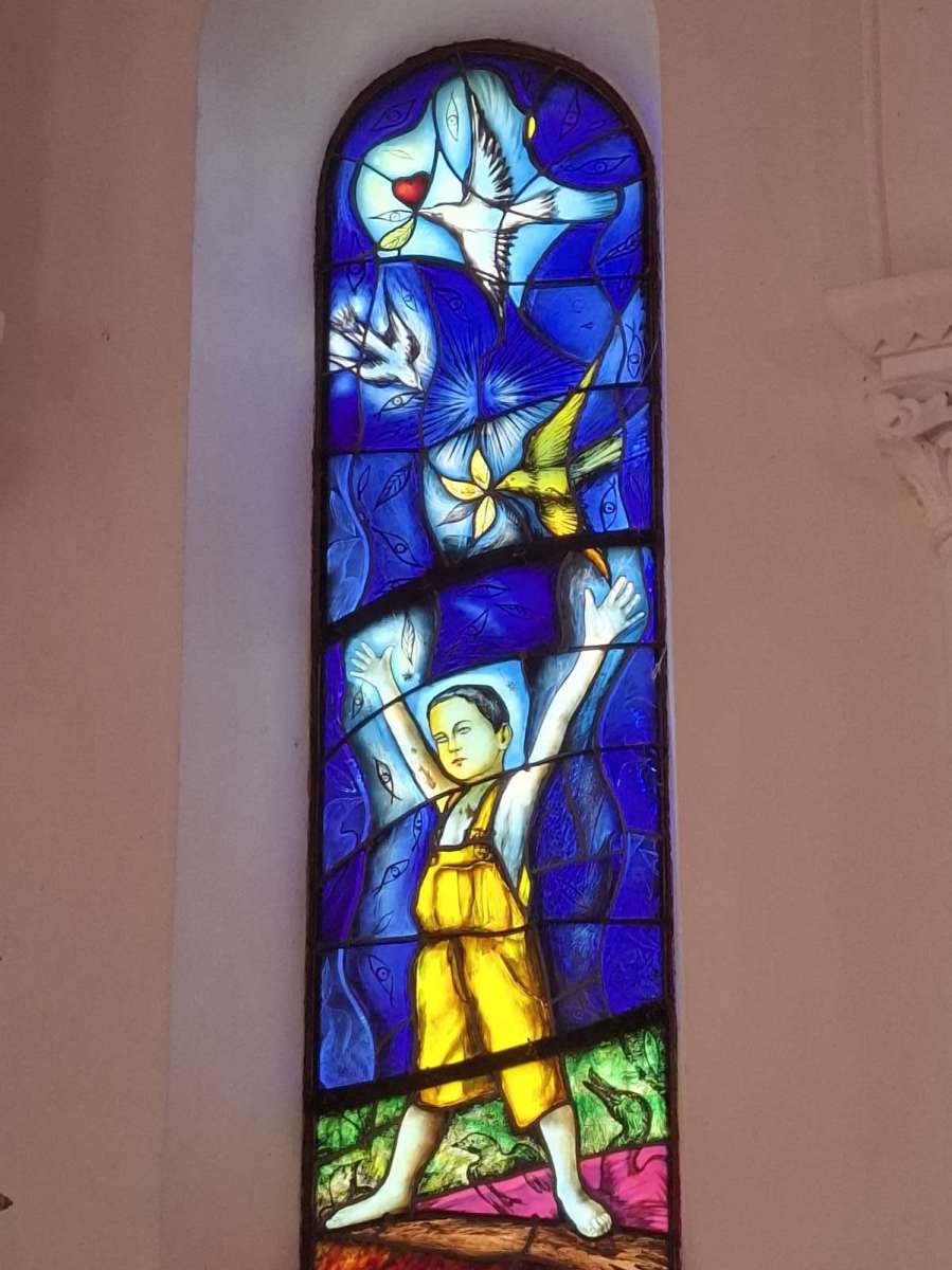 Nous avons découvert leur chapelle avec ses 18 magnifiques vitraux, dessinés par l’artiste Carmelo Zagari.