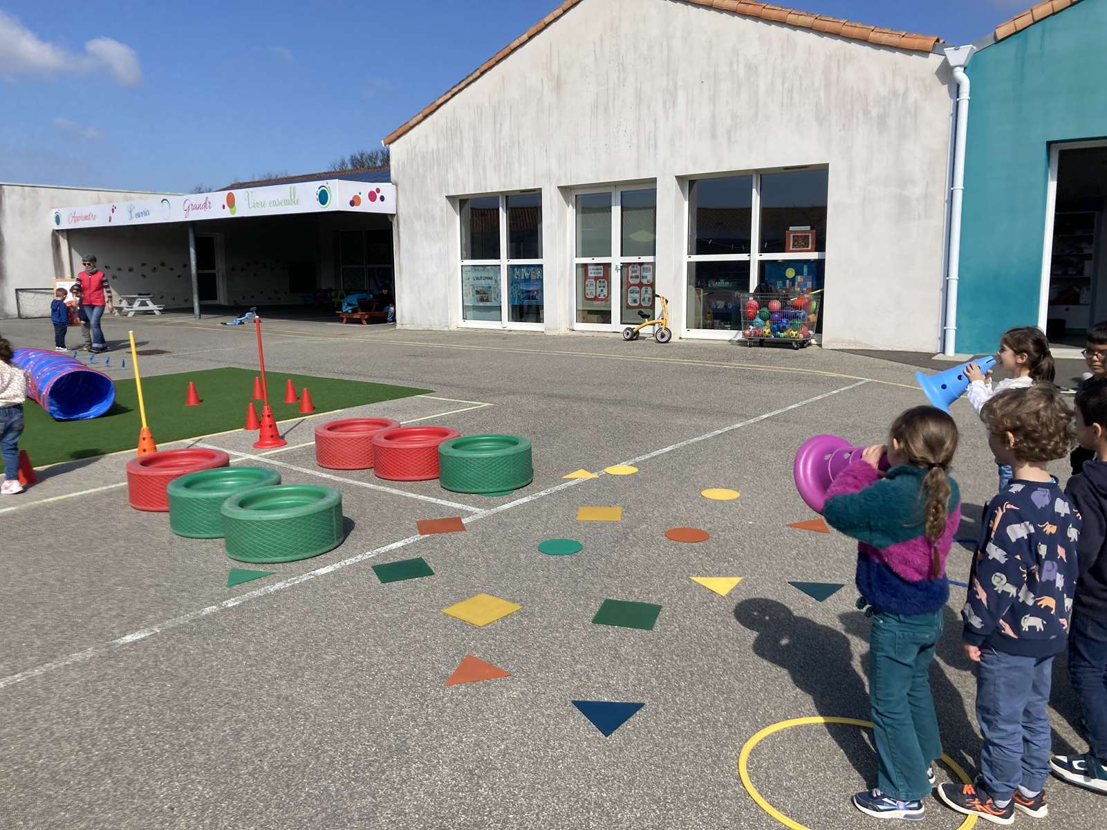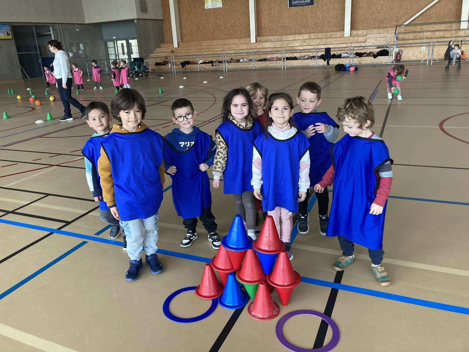Depuis le mois de Janvier, les élèves des classes de MS/GS se préparent pour la journée du 5 mai à Nieul Sur l’Autise, aboutissement du projet UGSEL  » A cloche pied, prêts sonnez ! »