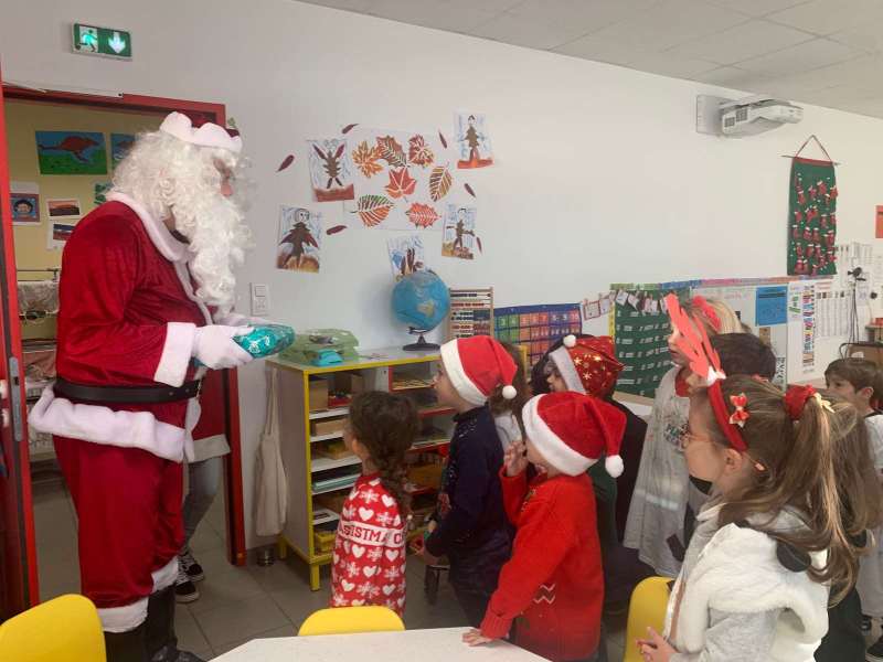C’est sous un magnifique soleil d’hiver que nous nous sommes rassemblés pour notre marché de Noël. Le Père-Noël est venu nous offrir des livres dans nos classes, une belle surprise pour les plus jeunes.