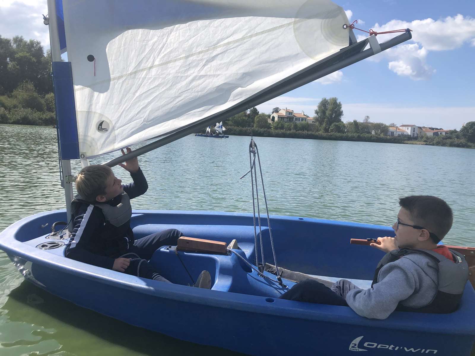 Nous avons eu la chance de découvrir l’optimist à travers 6 séances sur le plan d’eau de La Chapelle à Talmont.