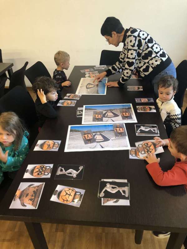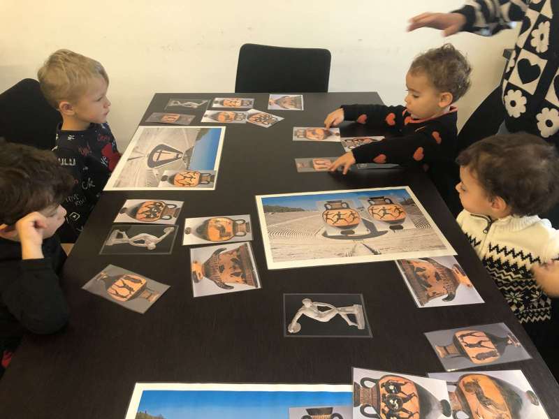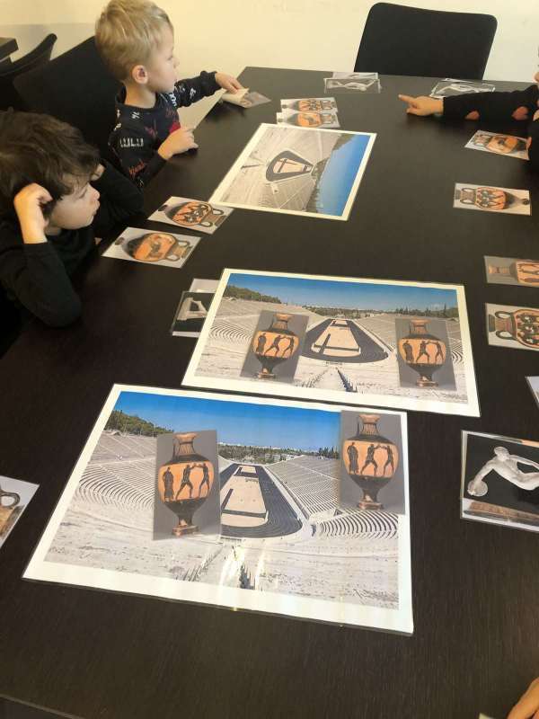 Les PS ont découvert les Jeux Olympiques représentés sur des œuvres d’art. A travers leur observation, nous avons découvert qu’il y a plus de 2000 ans les hommes couraient nus !