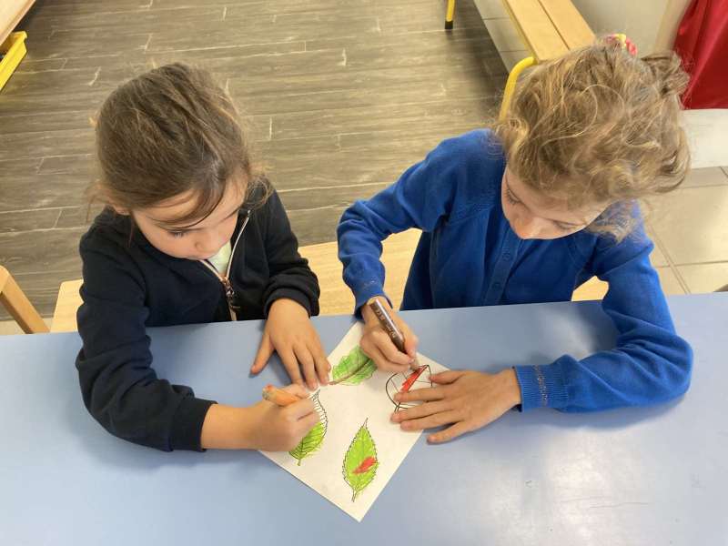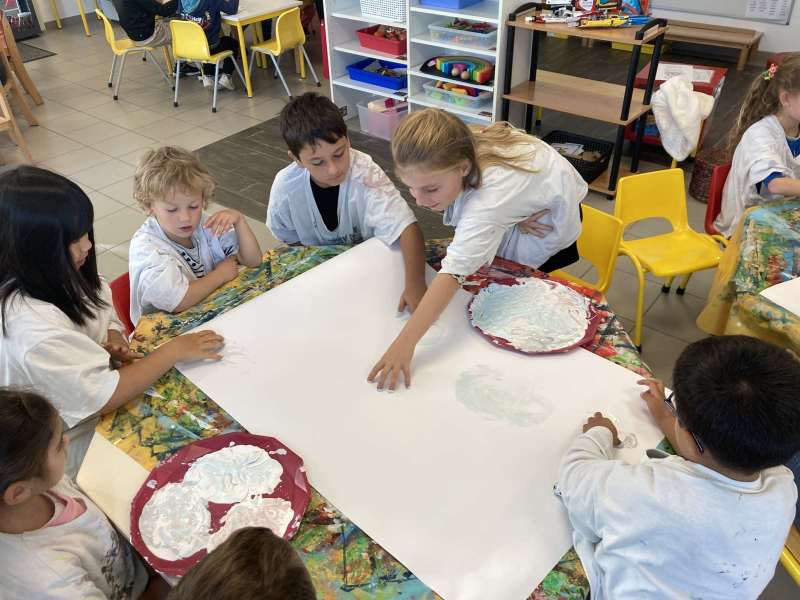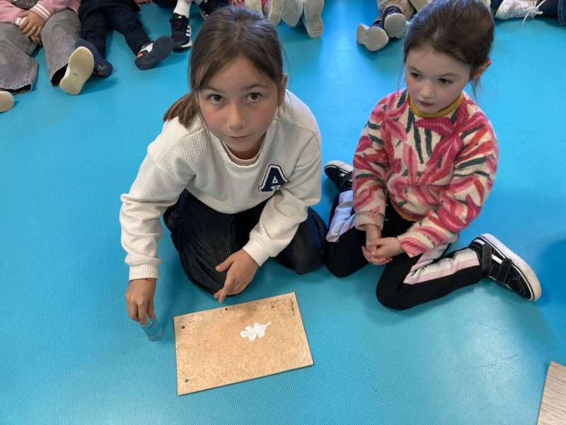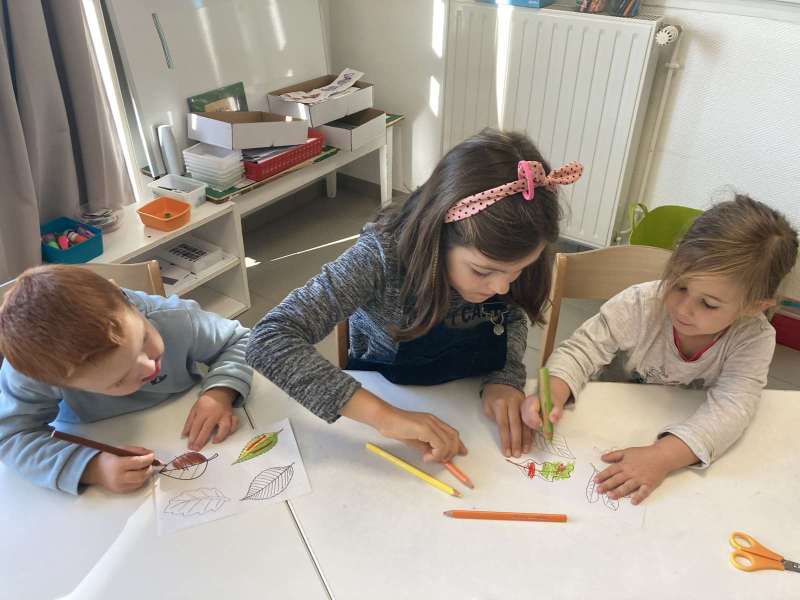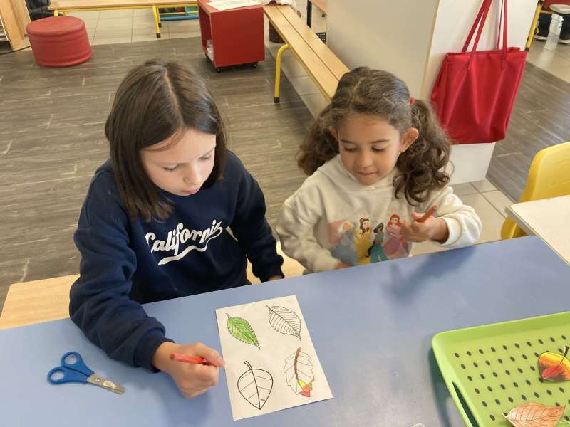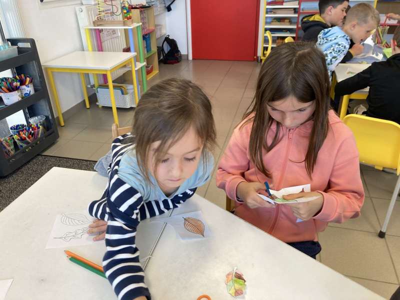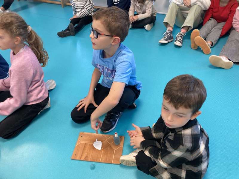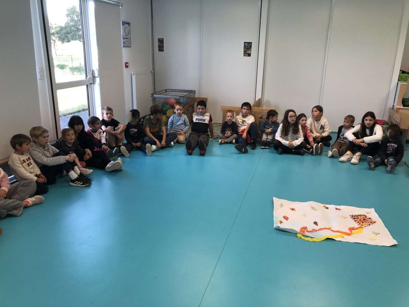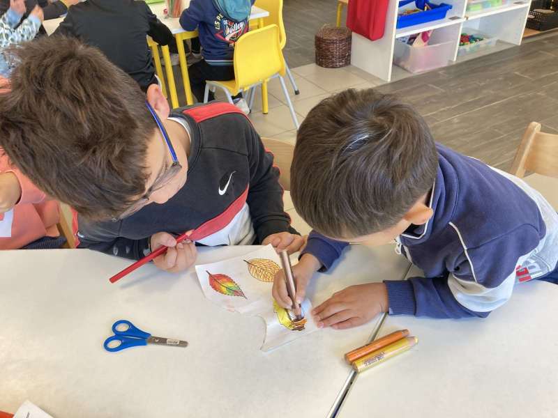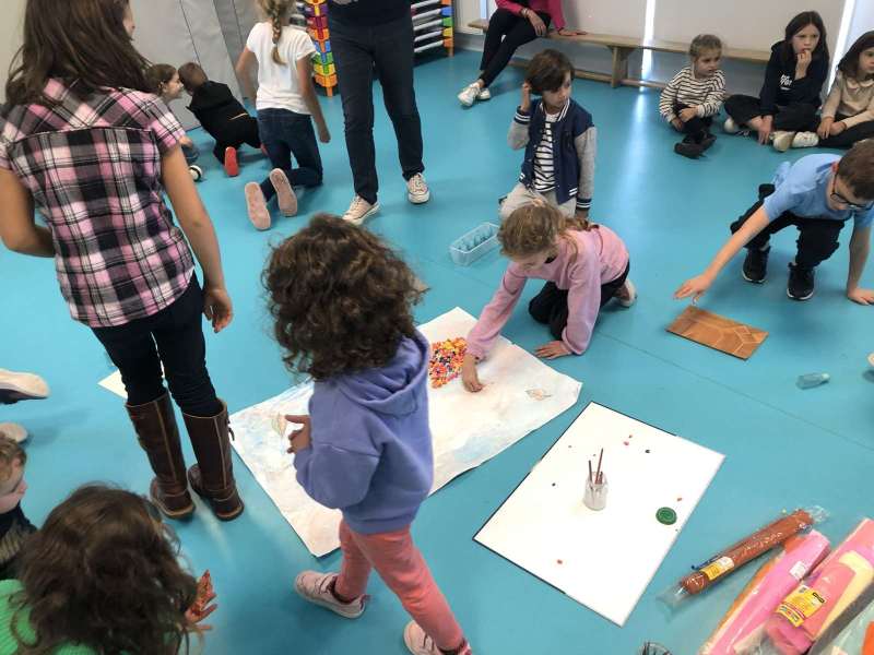 - L’autre moitié a confectionné les cerfs-volants : on a déchiré et roulé des boules de papier que nous avons ensuite collées sur les cerfs-volants.