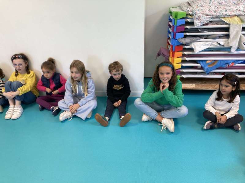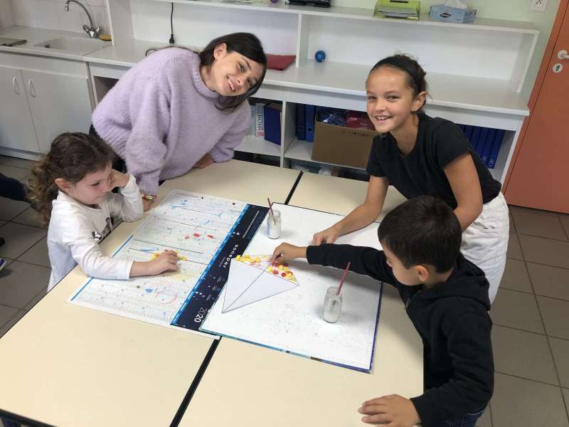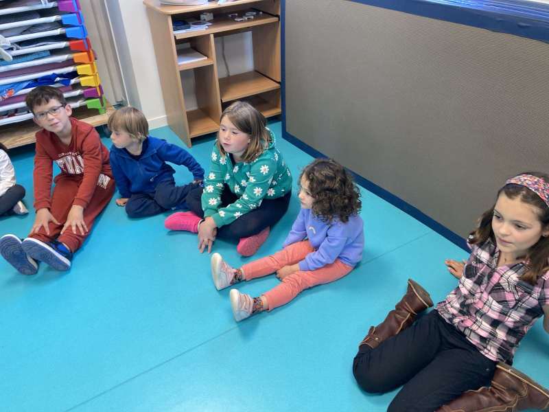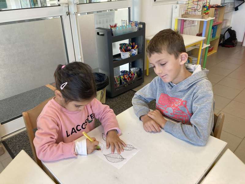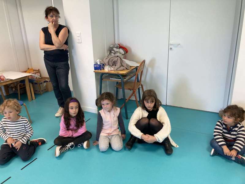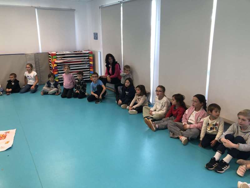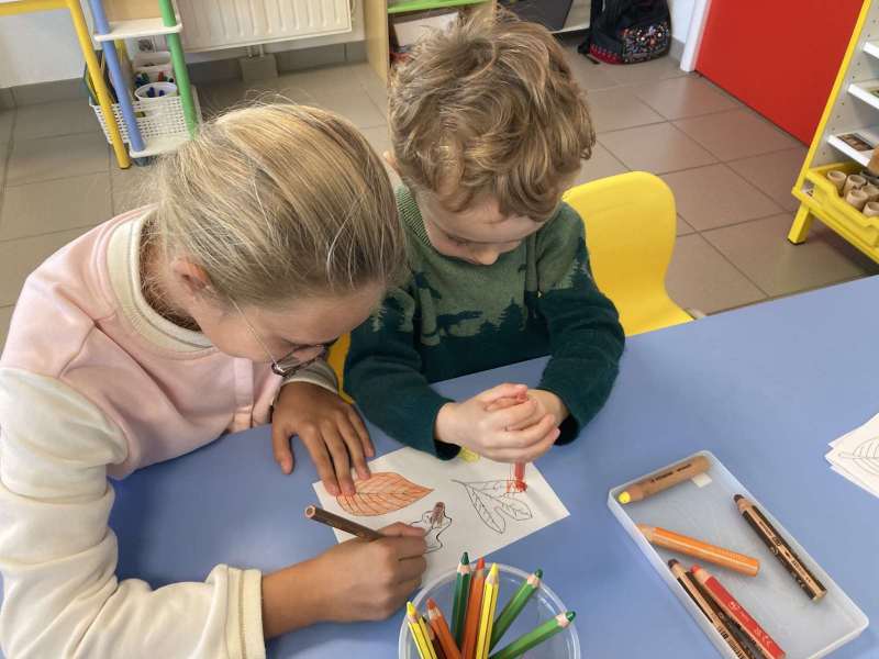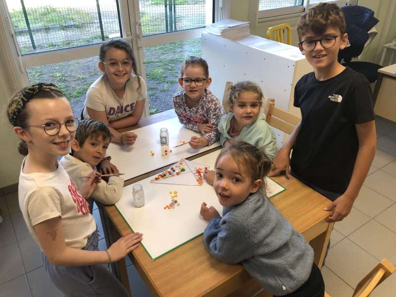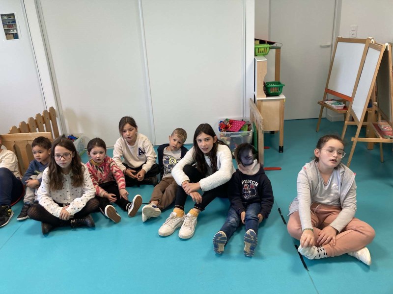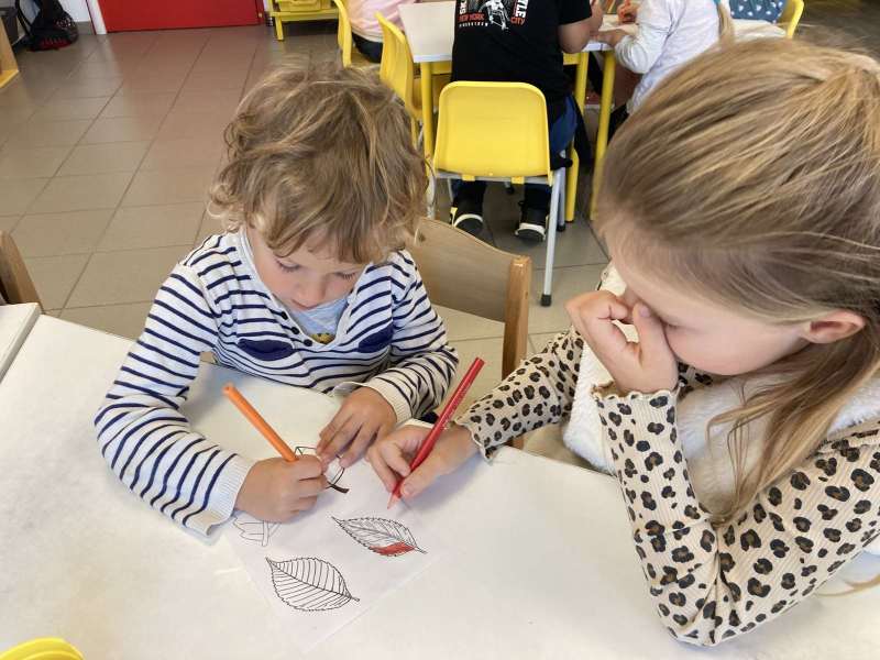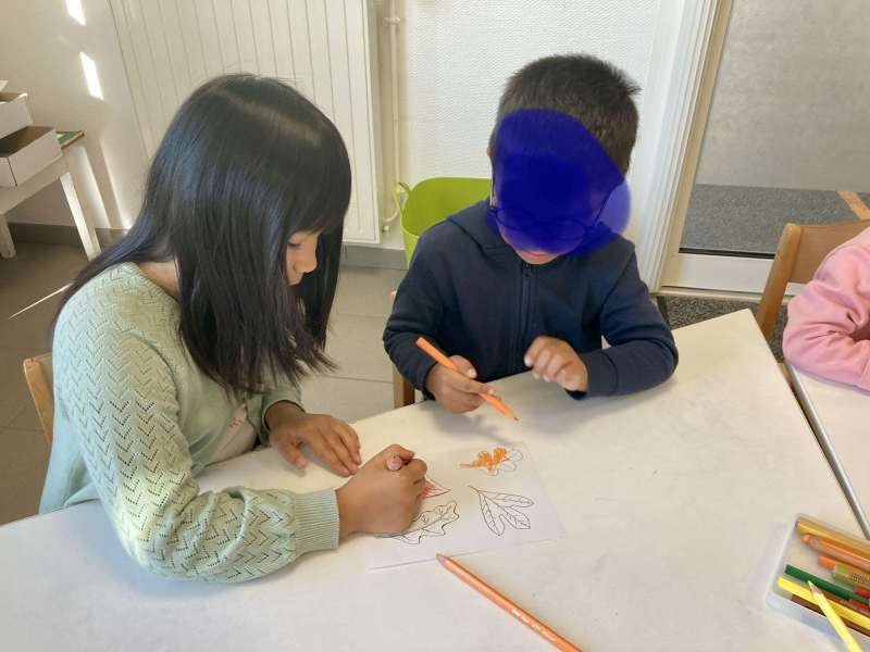 - L’autre moitié a confectionné les cerfs-volants : on a déchiré et roulé des boules de papier que nous avons ensuite collées sur les cerfs-volants.