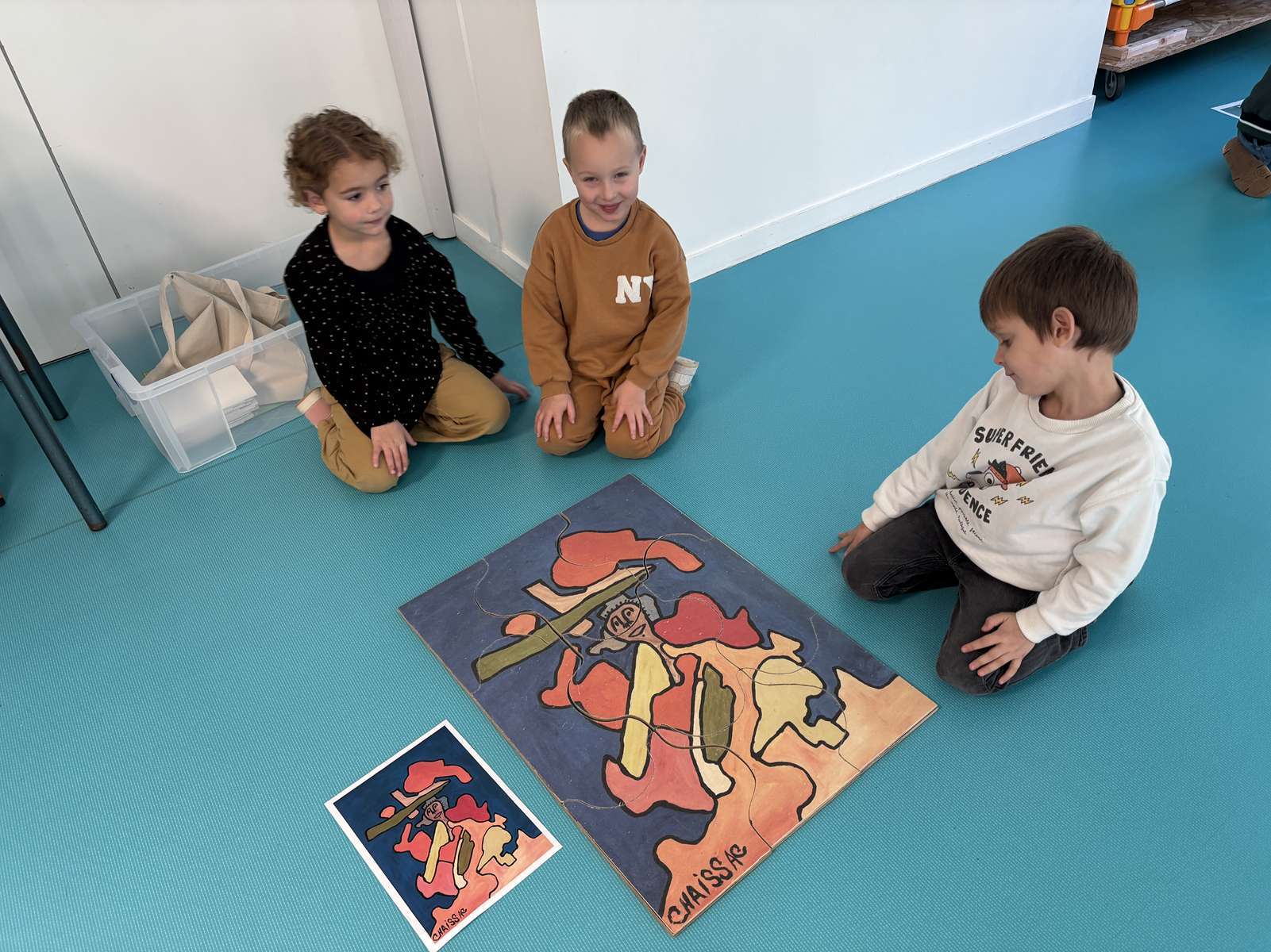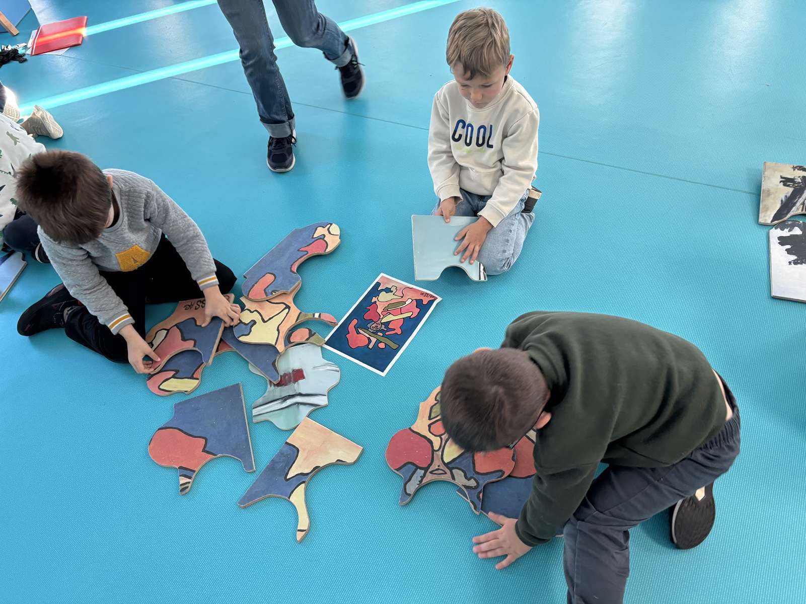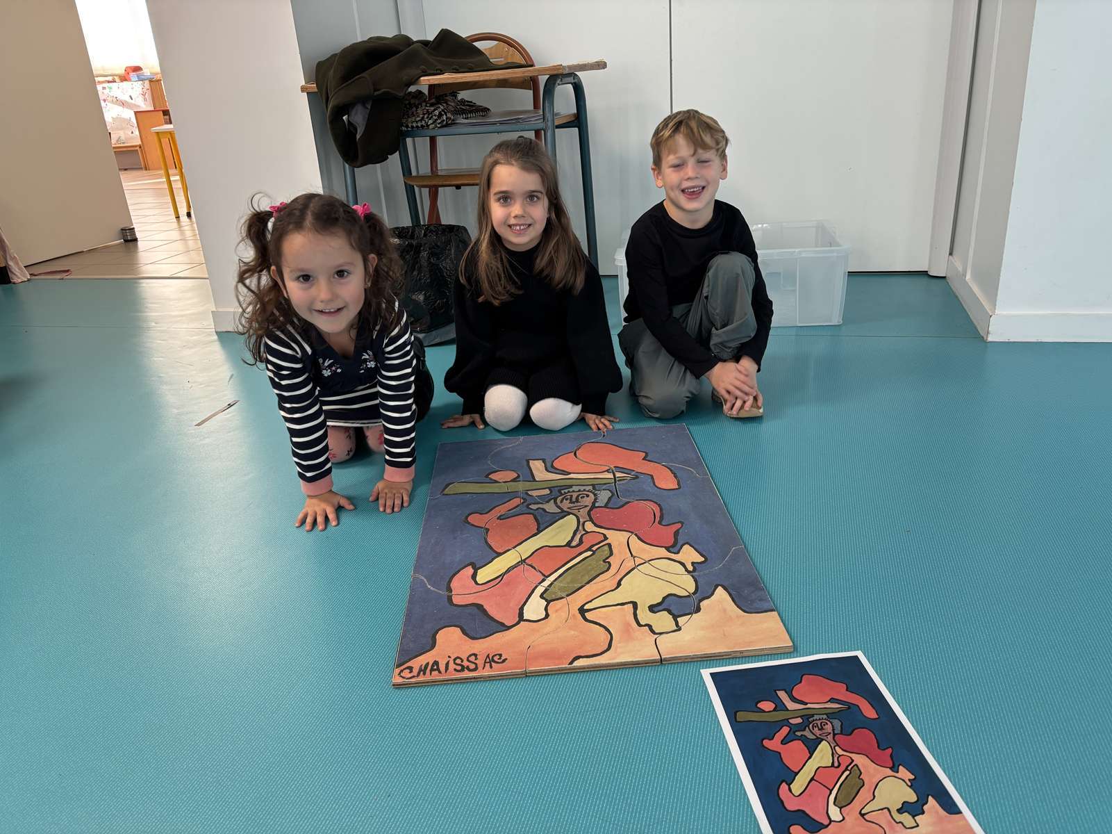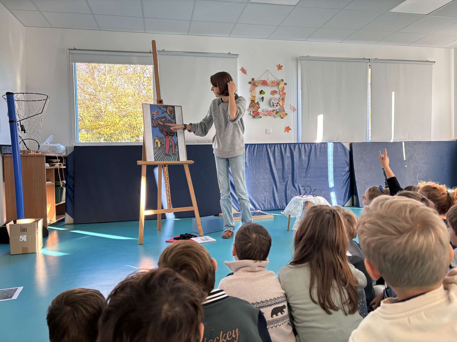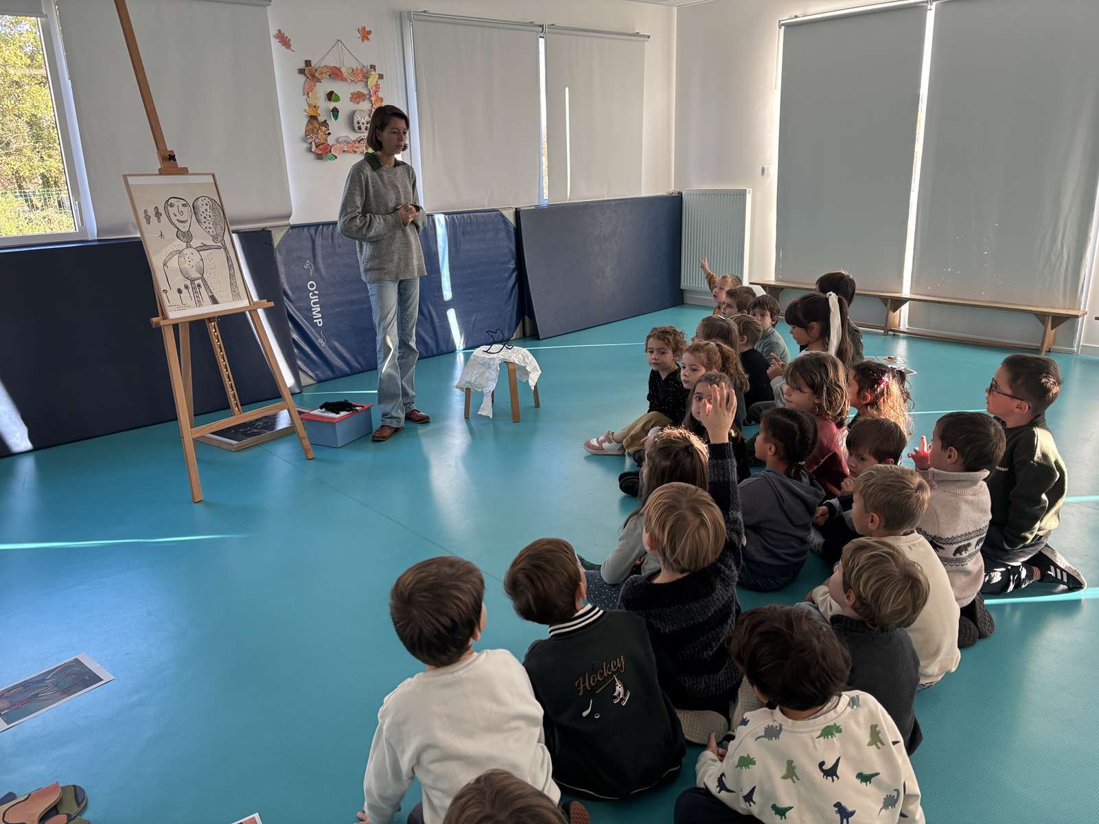 Mardi 25 novembre; les enfants ont vécu une matinée au cœur des Arts grâce aux deux médiatrices Marion et Stéphanie du musée d’Art moderne et contemporain des Sables d’Olonne. Ils ont pu découvrir l’Art sous toutes ses formes : la peinture, le dessin, la sculpture, la photographie, la musique. Marion a pris le temps de montrer et d’expliquer aux enfants les œuvres qu’elle avait apportées. Par la suite, des ateliers pour mieux comprendre l’ART leur ont été proposés. MERCI aux « rencontres du MASC » pour cette belle découverte !