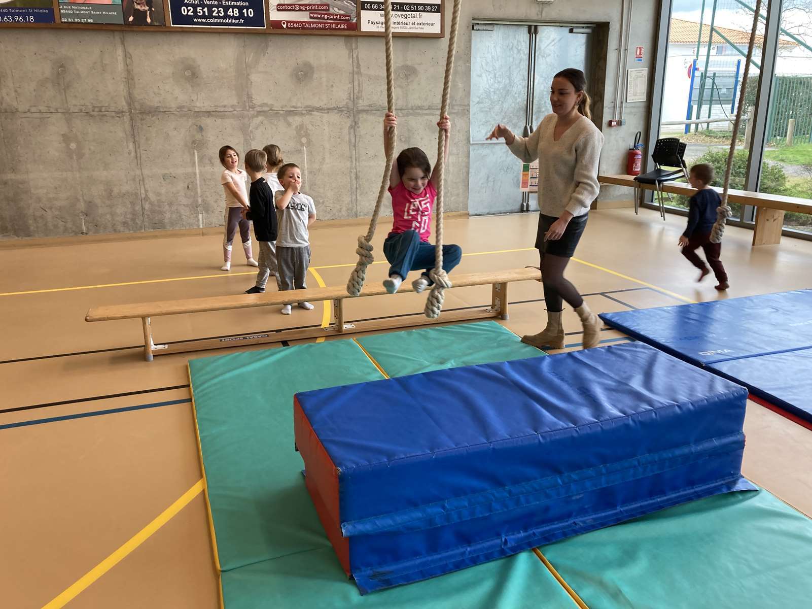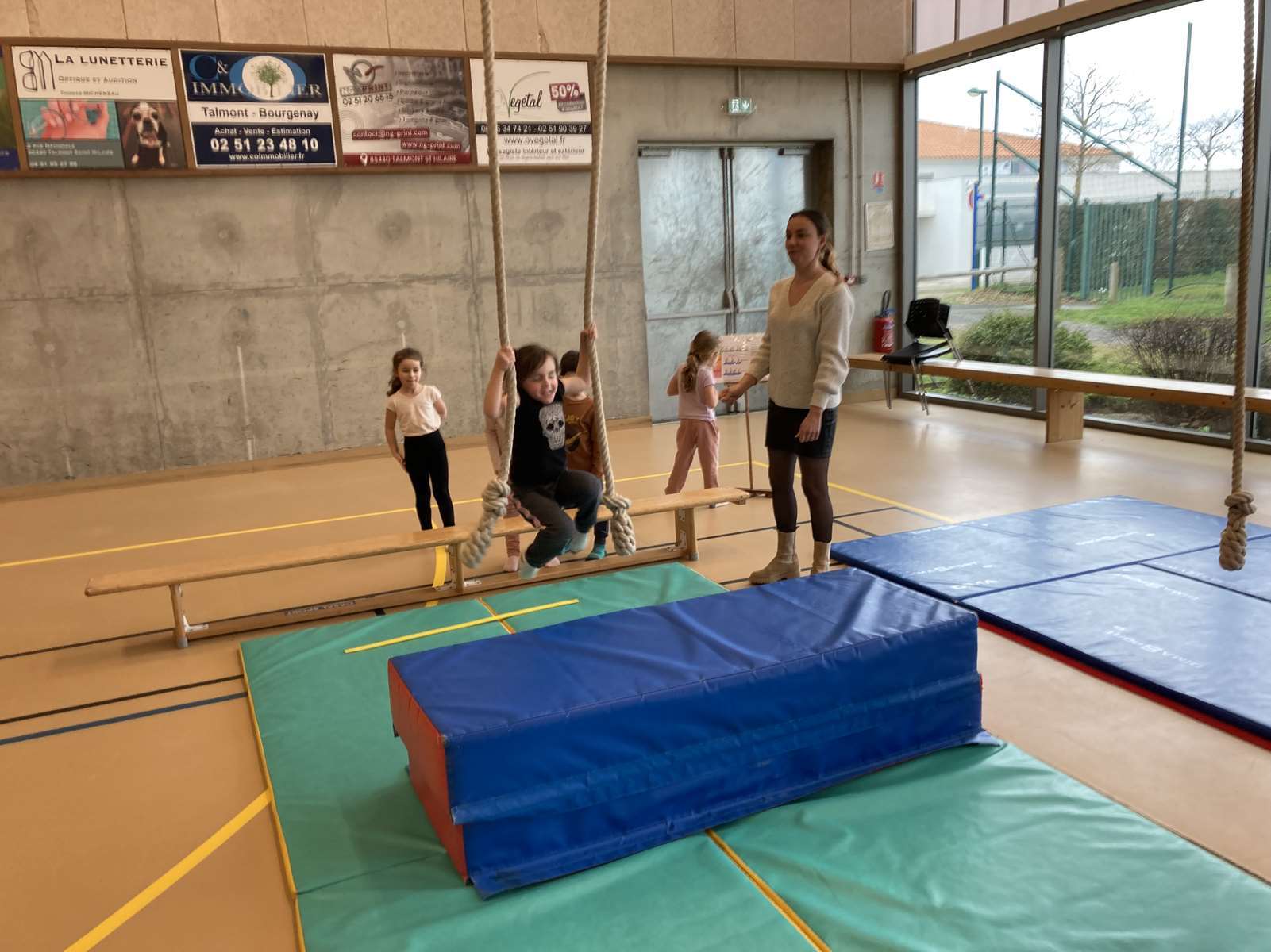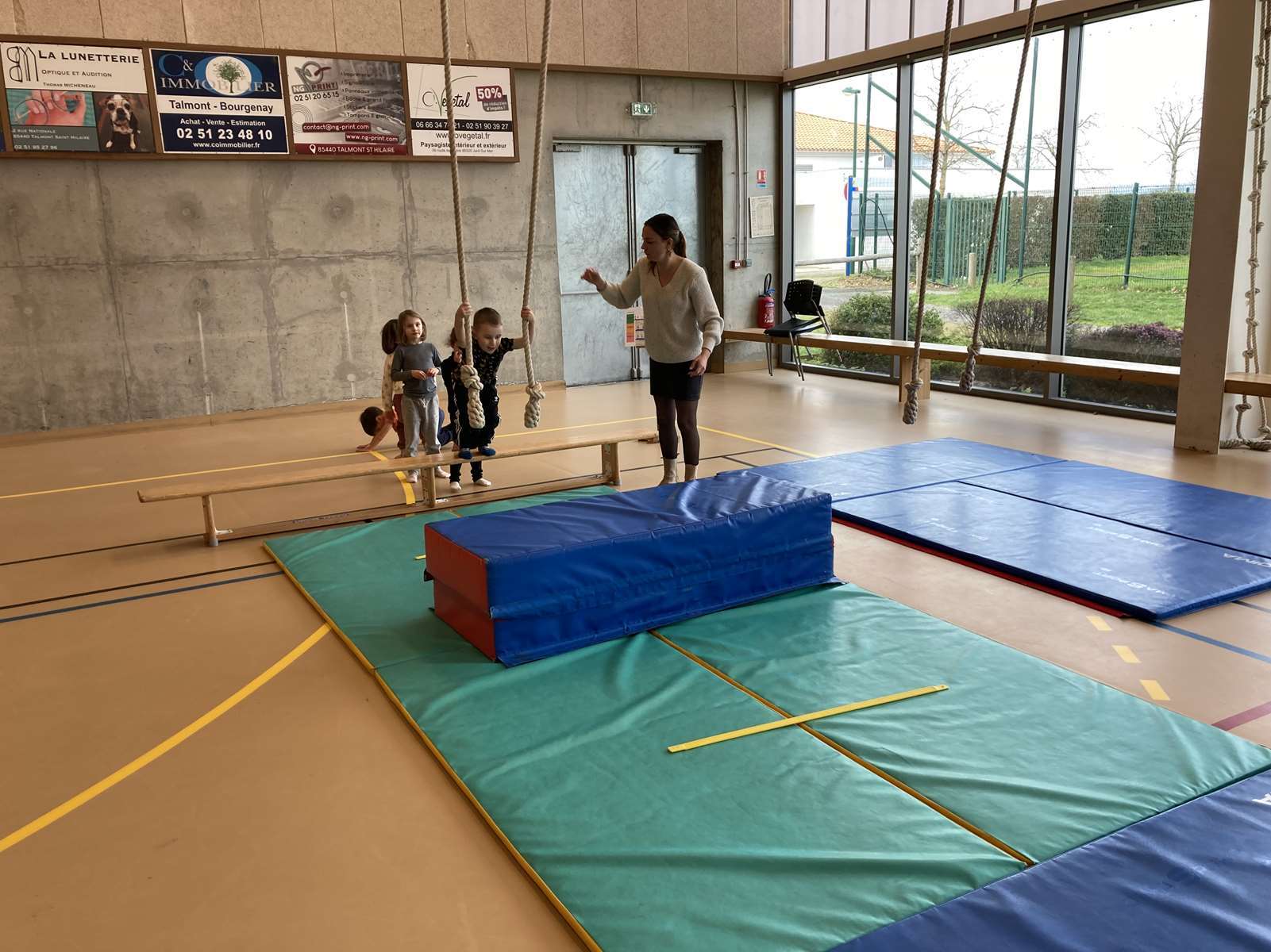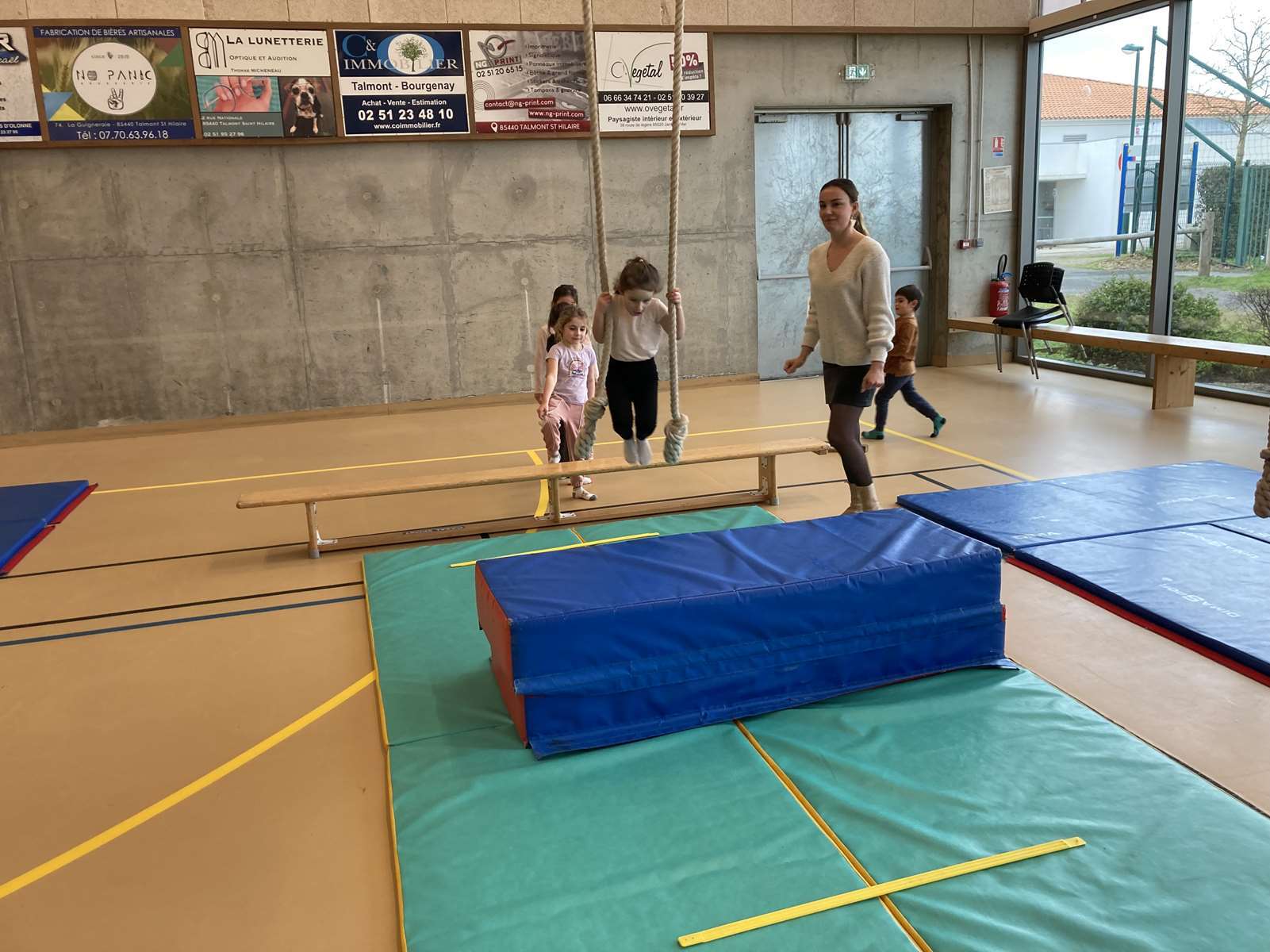 Et à la salle des Ribandeaux, avec le matériel installé par Guillaume, l’éducateur sportif de la commune.