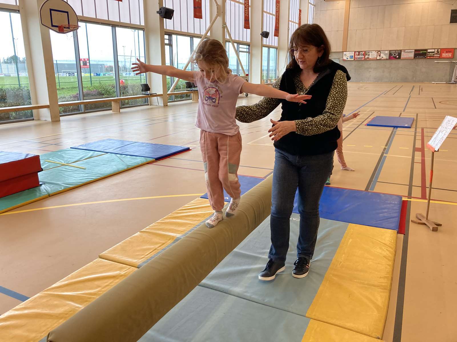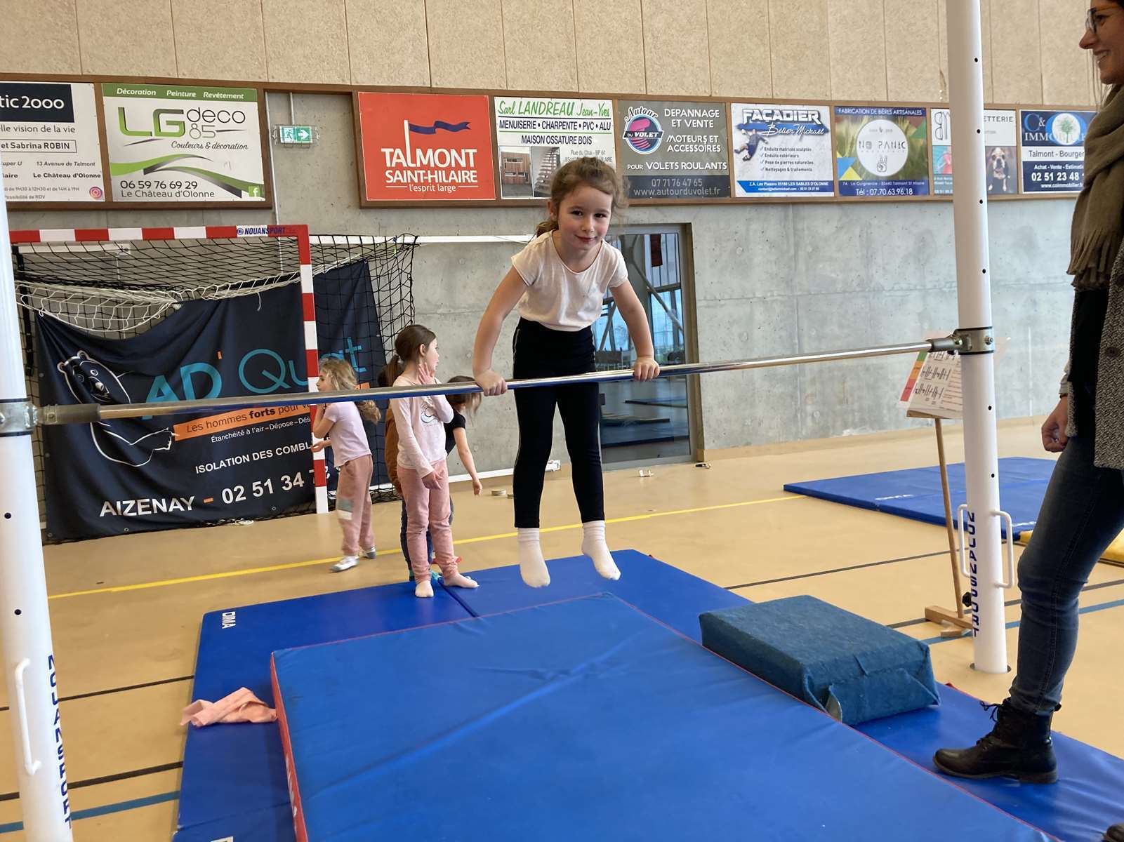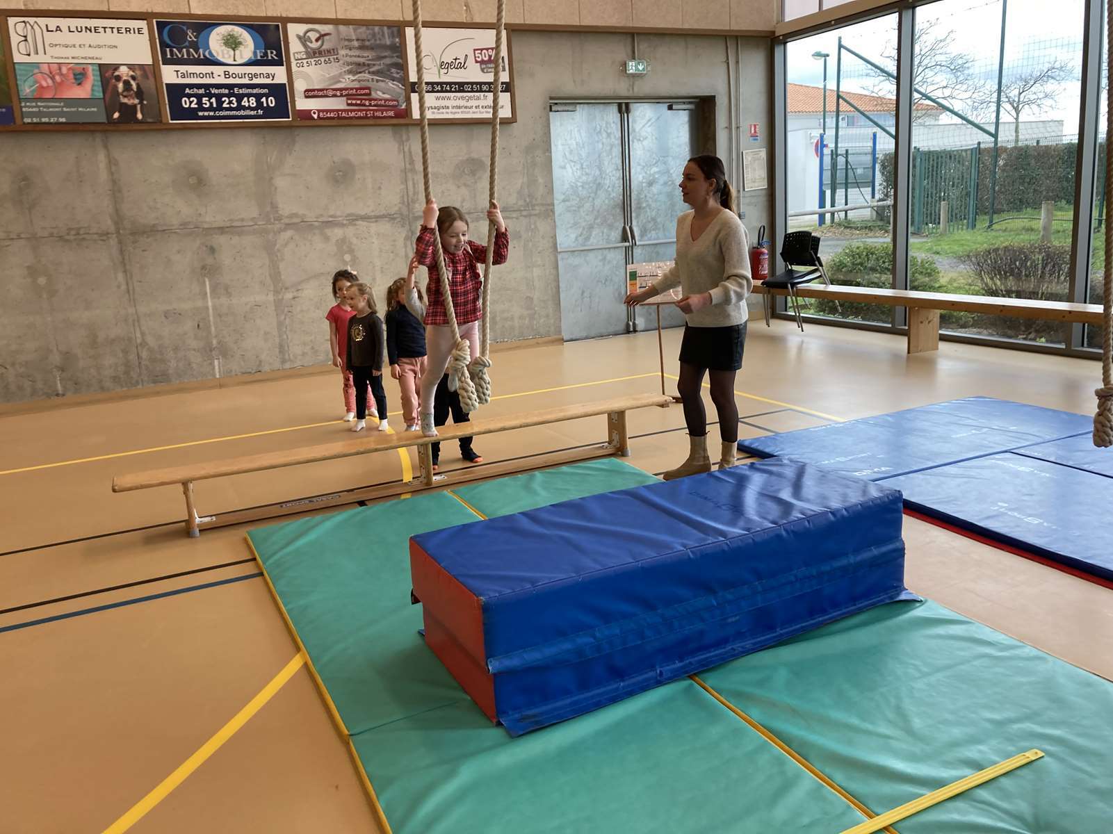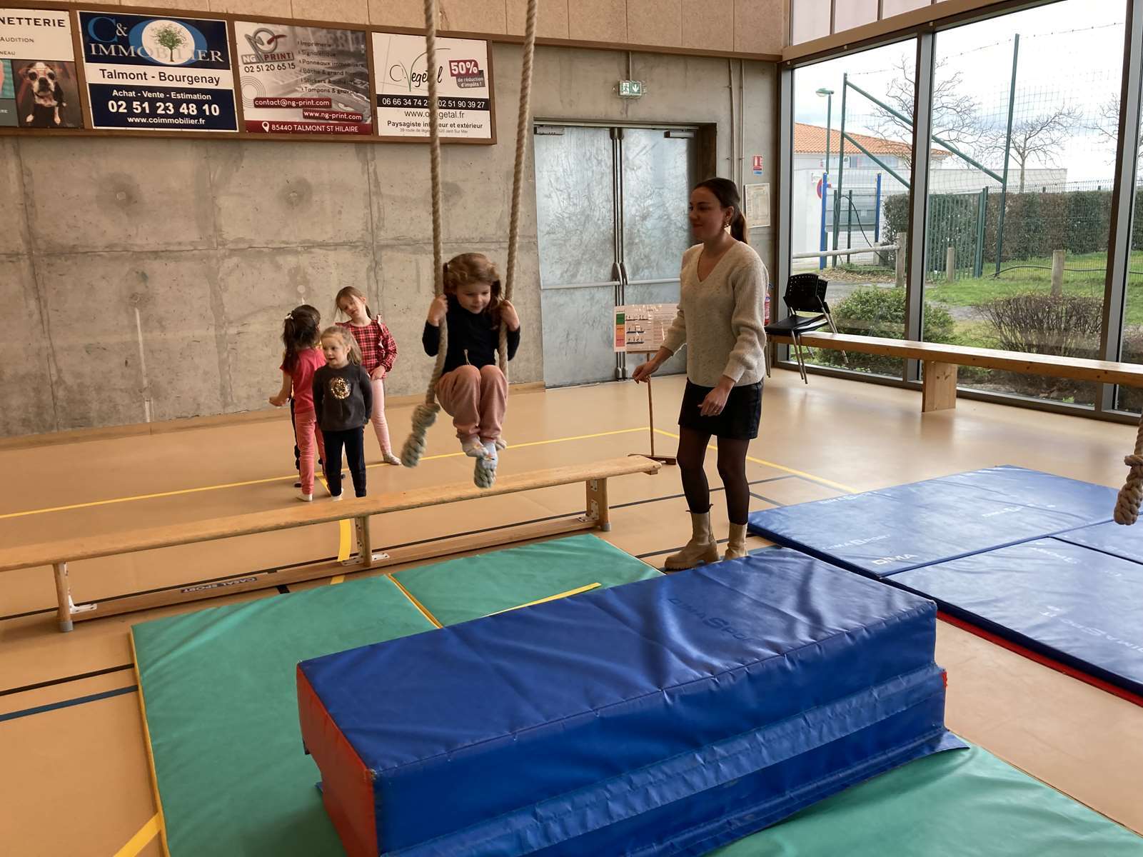 Et à la salle des Ribandeaux, avec le matériel installé par Guillaume, l’éducateur sportif de la commune.