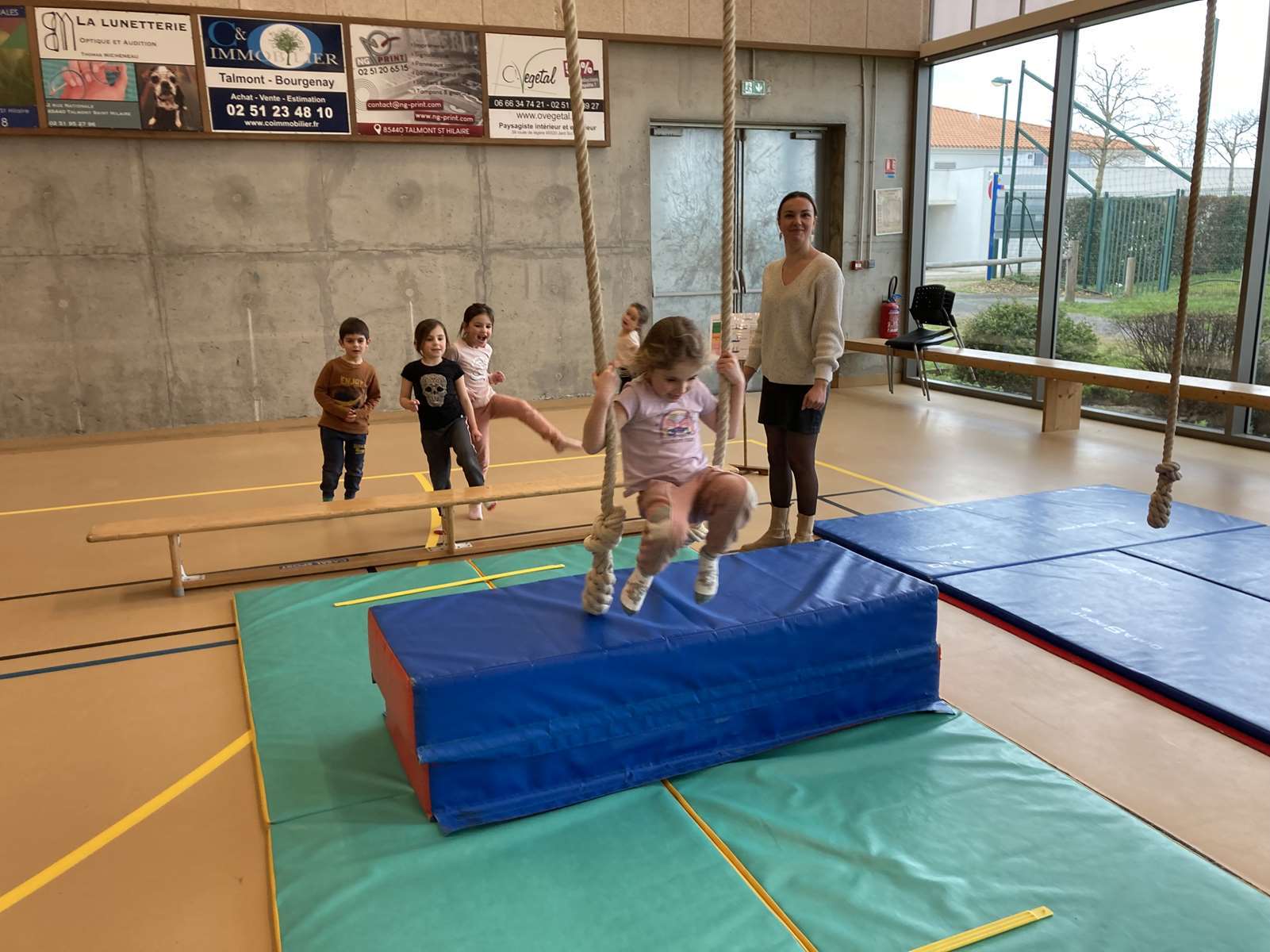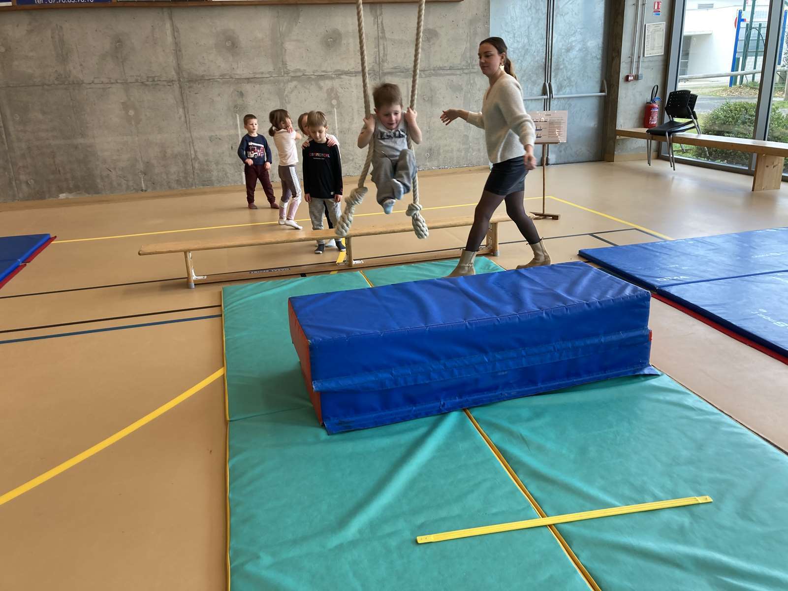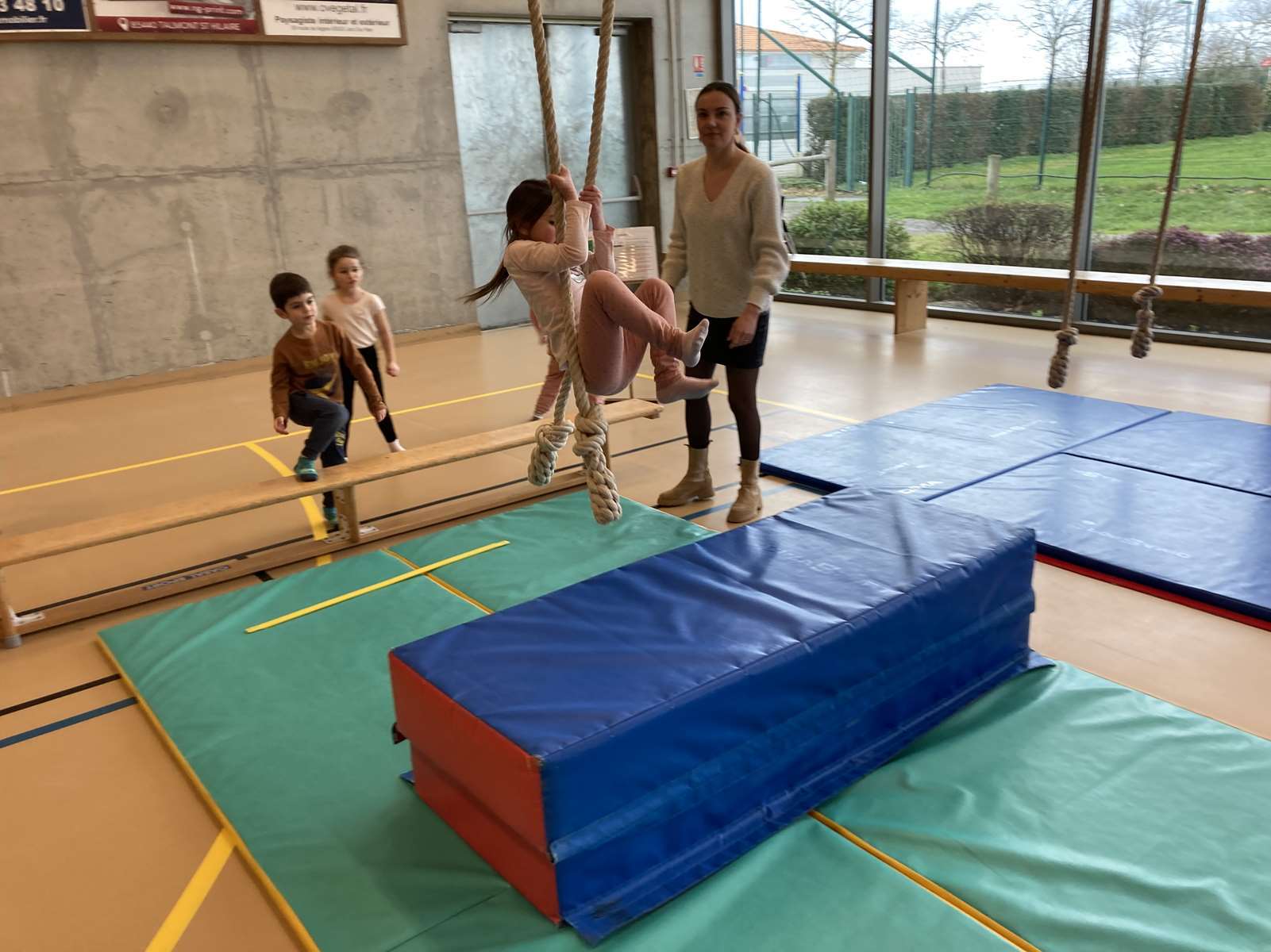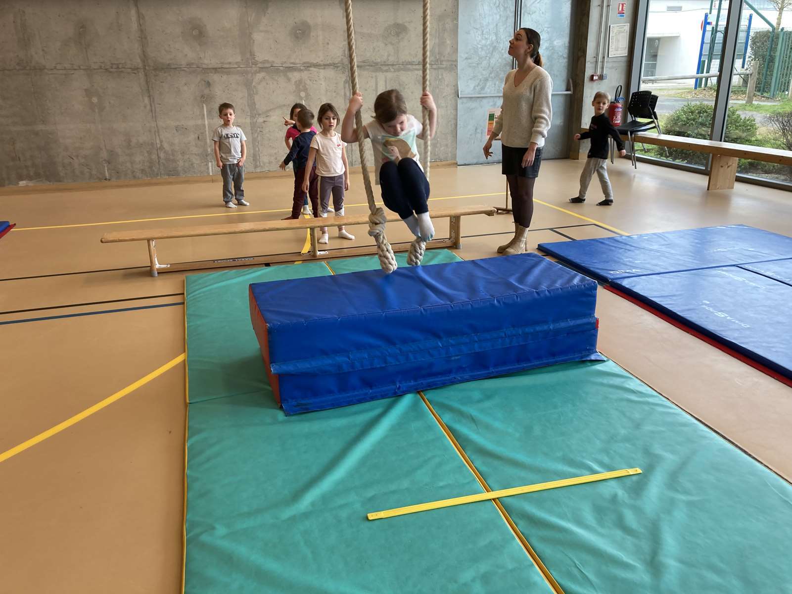 Les enfants se sont entraînés à la poutre, à la barre fixe basse , au trampoline et aux cordes. Ils ont bien progressé tout au long des séances. Chacun a pu réaliser son enchaînement lors de la dernière.