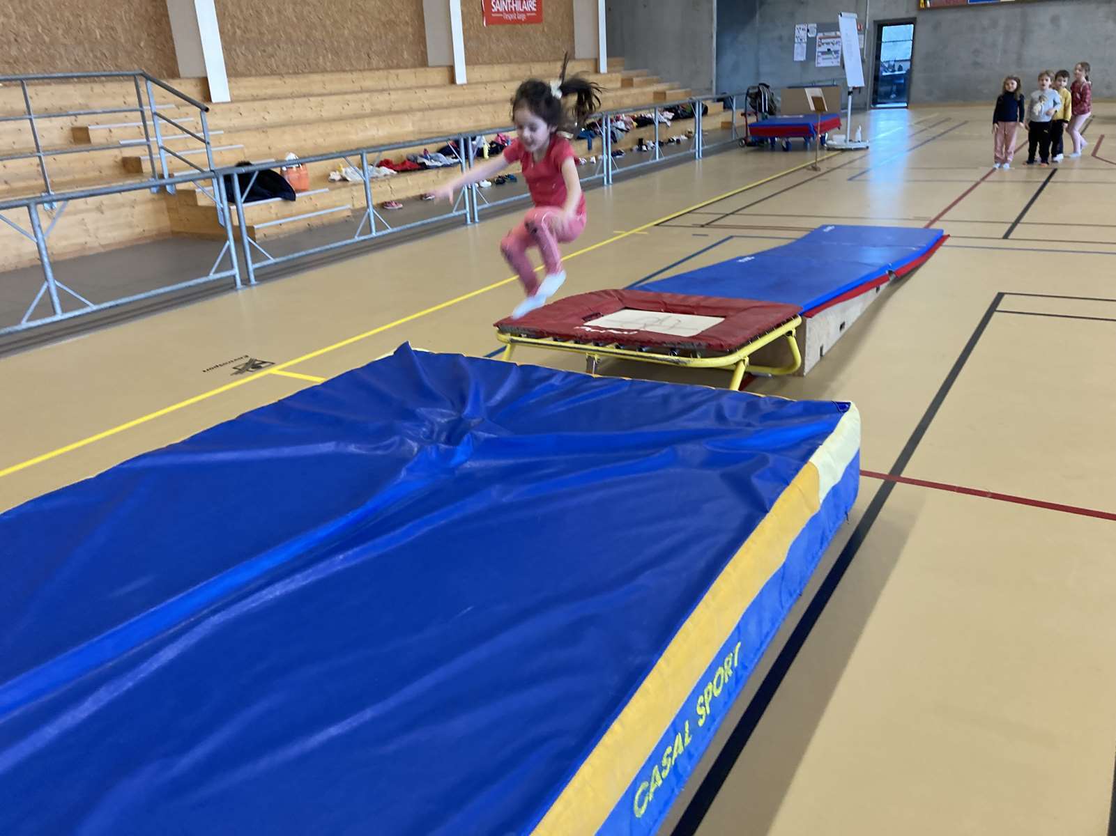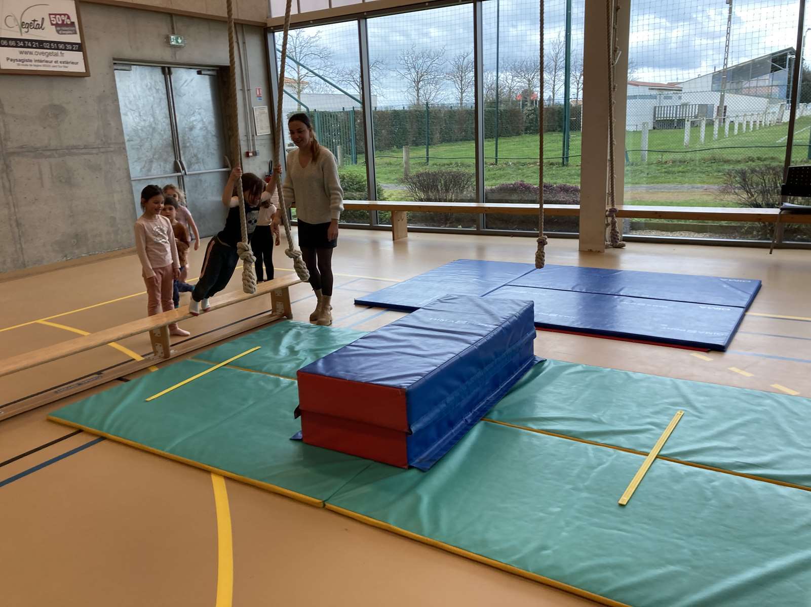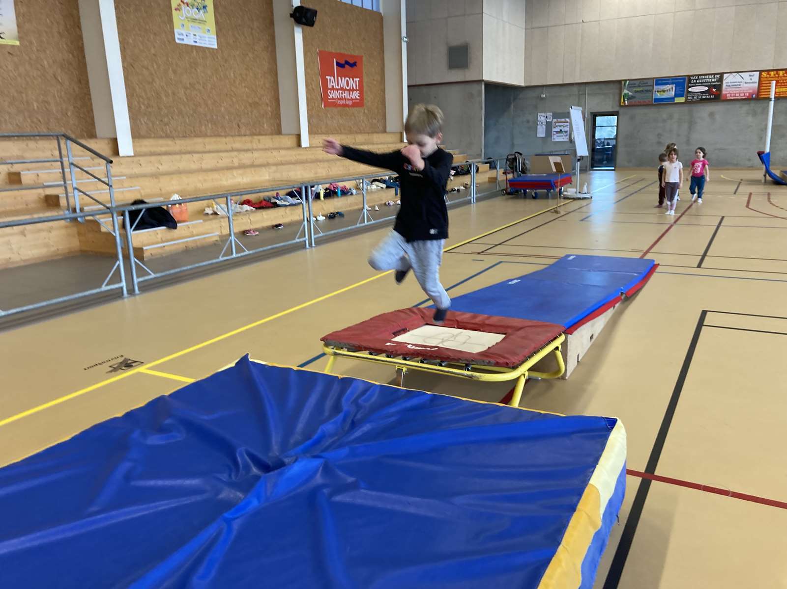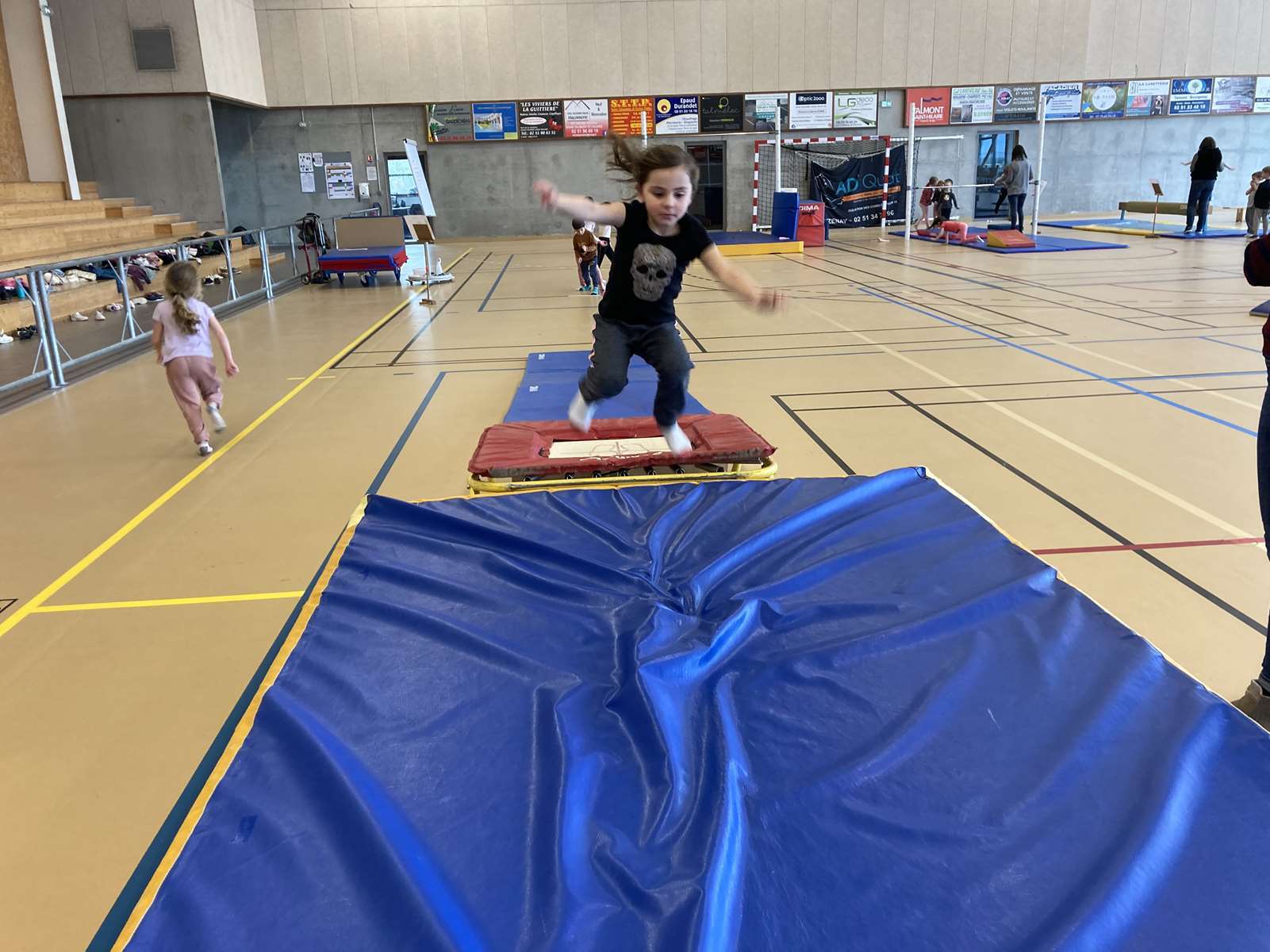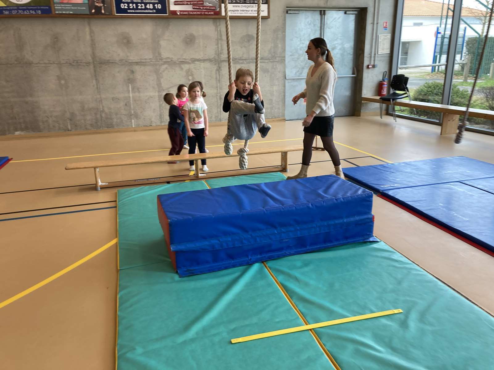 Les enfants se sont entraînés à la poutre, à la barre fixe basse , au trampoline et aux cordes. Ils ont bien progressé tout au long des séances. Chacun a pu réaliser son enchaînement lors de la dernière.