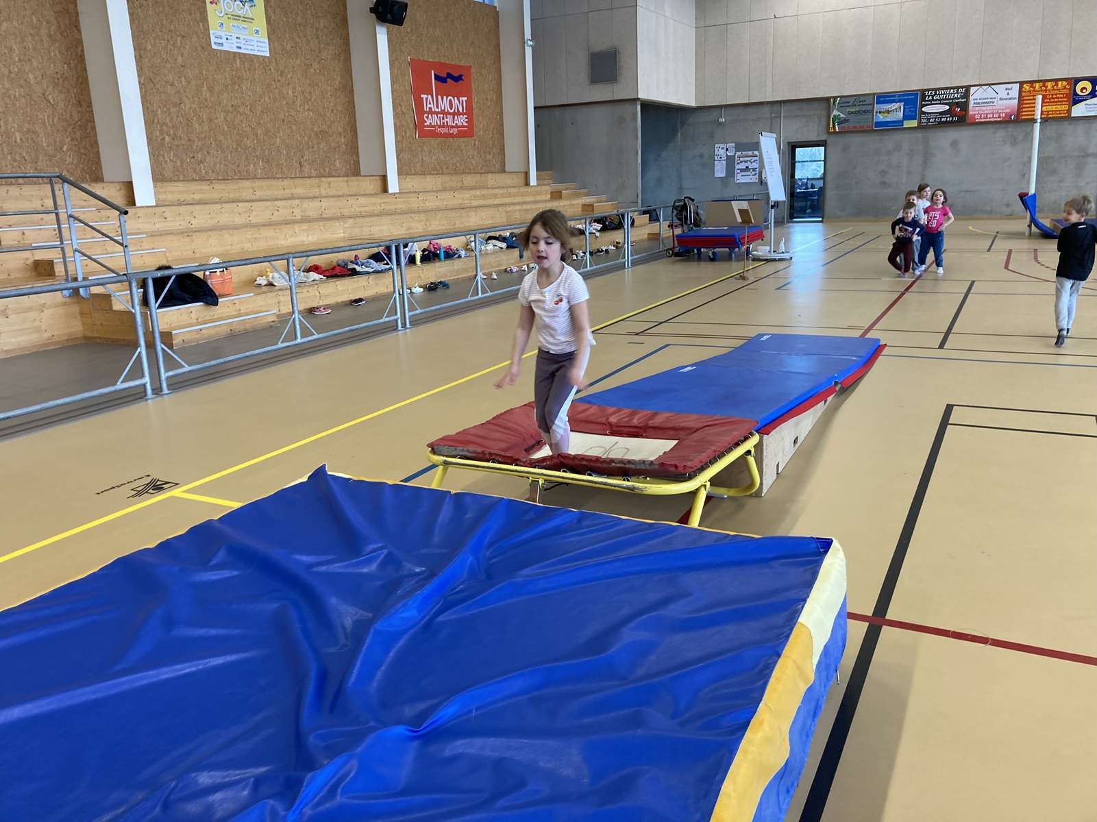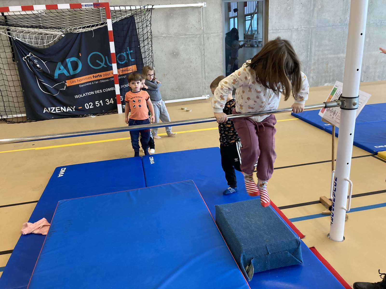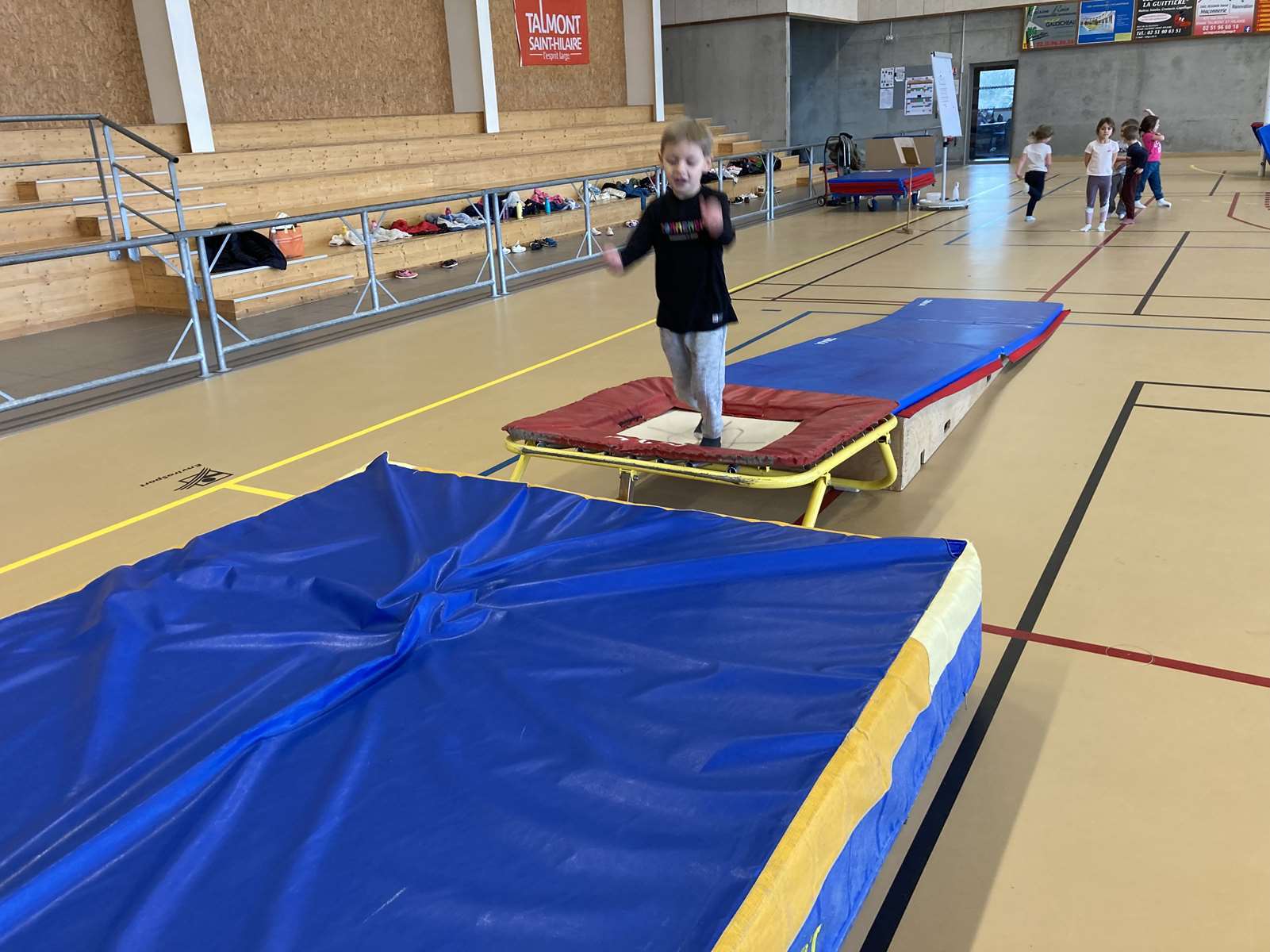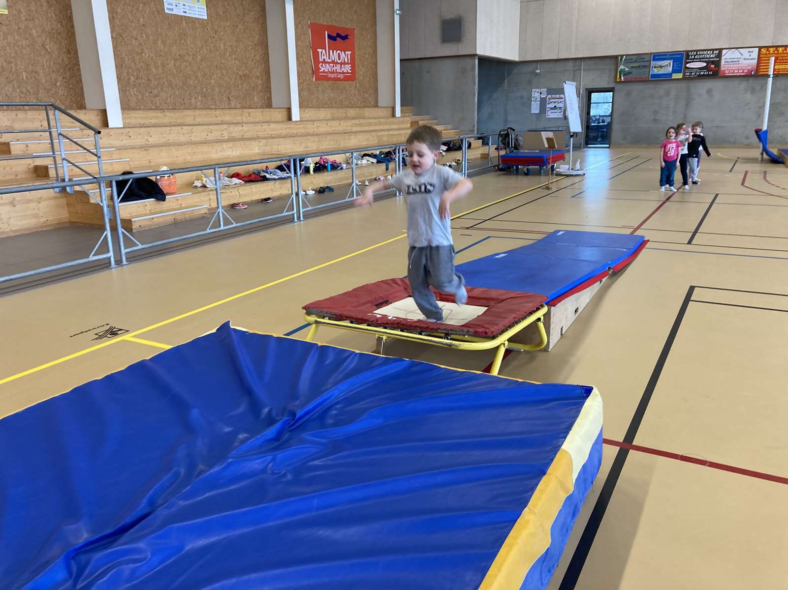 Les enfants se sont entraînés à la poutre, à la barre fixe basse , au trampoline et aux cordes. Ils ont bien progressé tout au long des séances. Chacun a pu réaliser son enchaînement lors de la dernière.