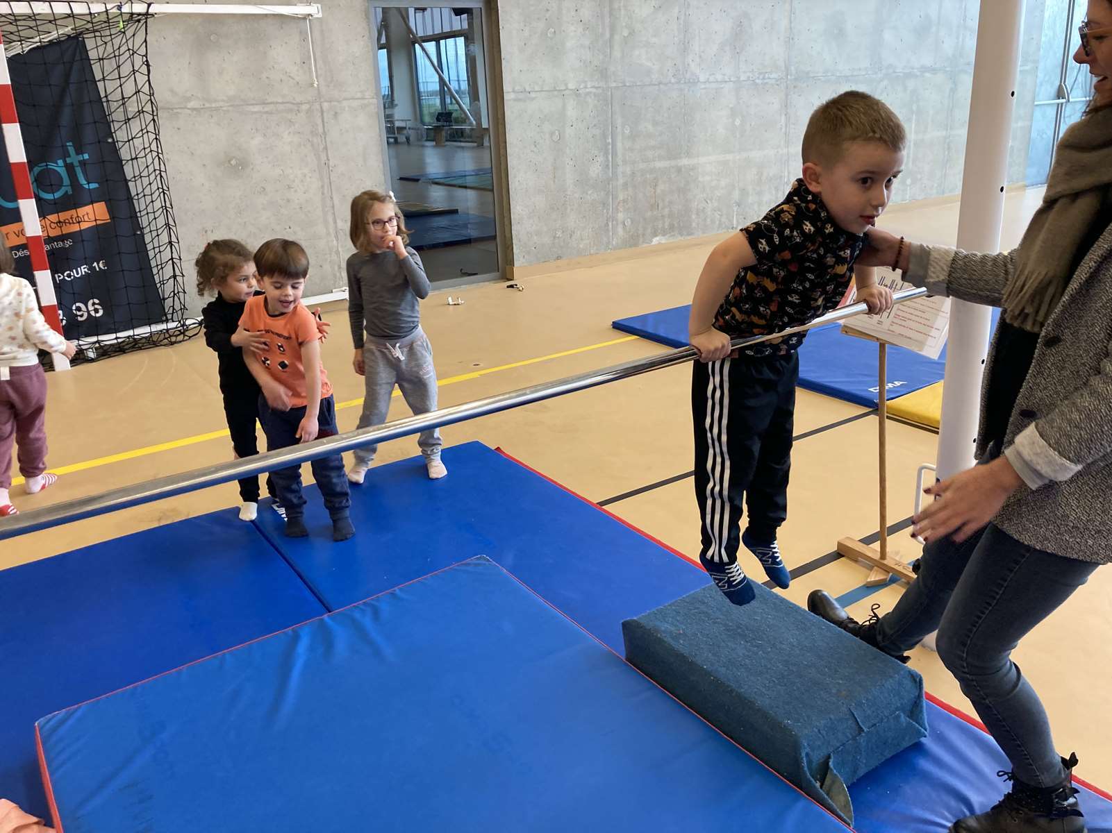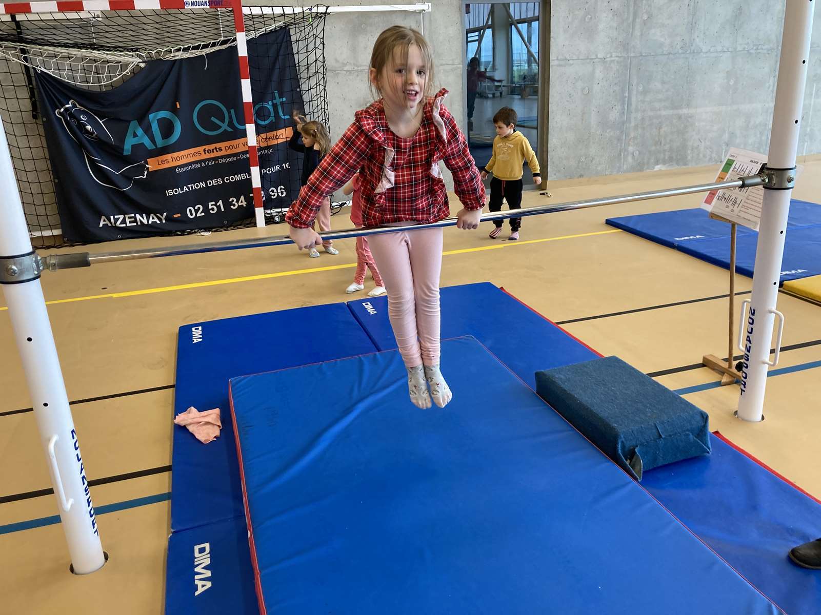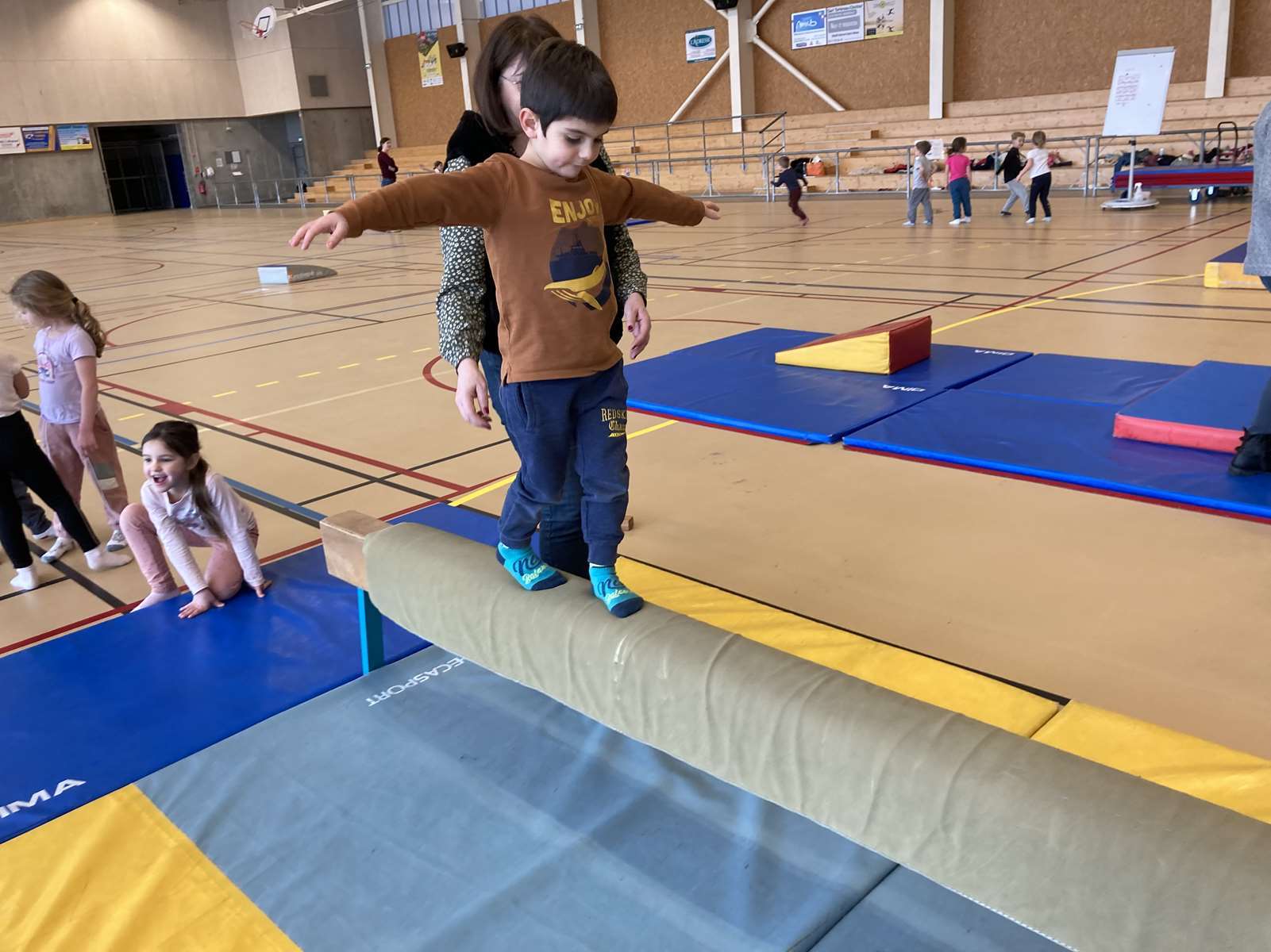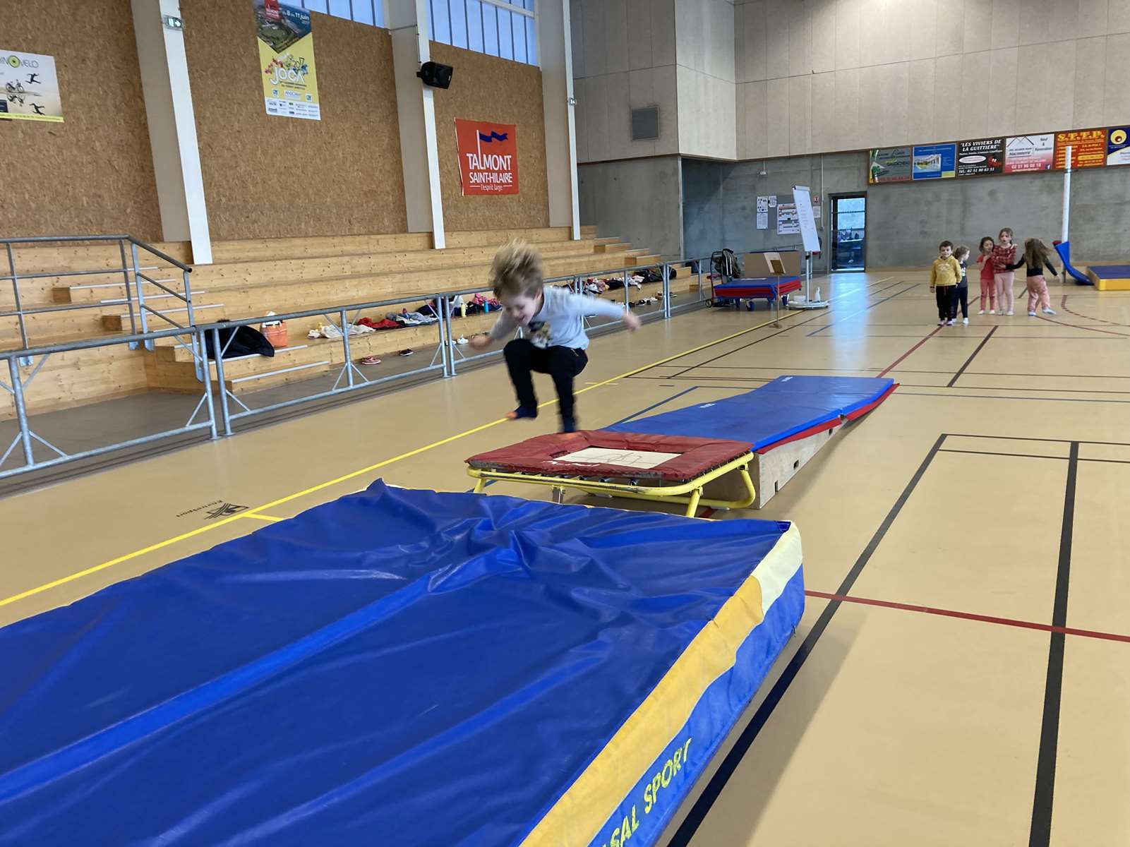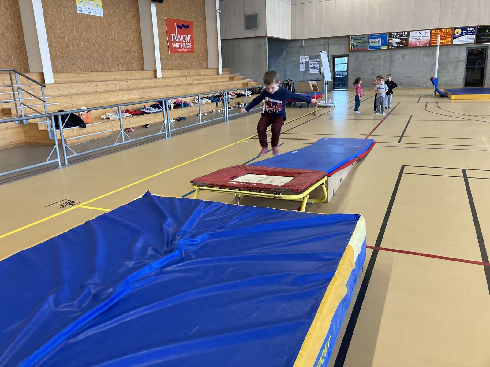 Les enfants se sont entraînés à la poutre, à la barre fixe basse , au trampoline et aux cordes. Ils ont bien progressé tout au long des séances. Chacun a pu réaliser son enchaînement lors de la dernière.