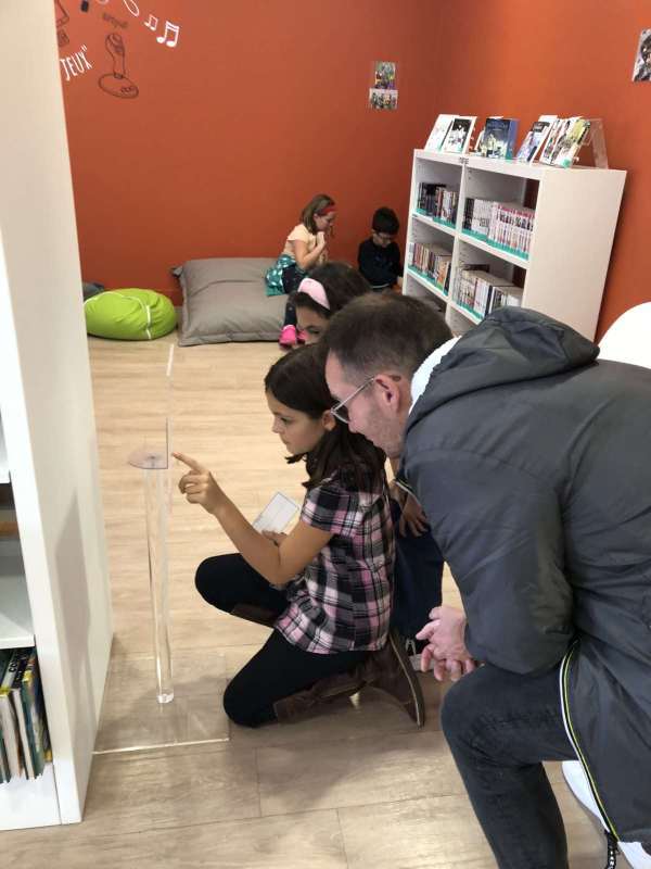 On est allé à la médiathèque. On a fait des jeux ; on avait un papier avec des indices notés : la cote, l’auteur, le genre, la catégorie d’âge, le titre et le tome. Chaque groupe devait trouver un mot différent.