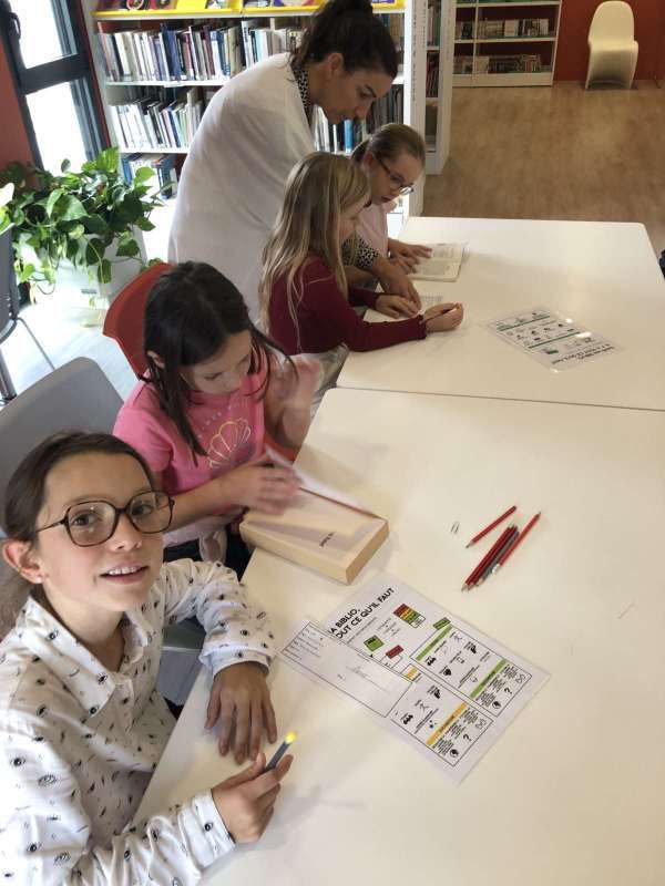 Notre classe est allée à la médiathèque à pied faire un jeu sur les types de livres. Nous avons eu une affiche avec des indices: la cote, l’auteur, le genre, la catégorie d’âge, le titre et le tome. Puis, avec les indices, nous avons trouvé un livre et il fallait trouver un mot dans les livres. Enfin, avec nos coéquipiers qui avaient eux aussi un mot, on les a assemblés pour trouver le titre d’un autre livre dont le thème était la différence. Nous avons conclu en disant que nous étions tous différents mais tous pareils!